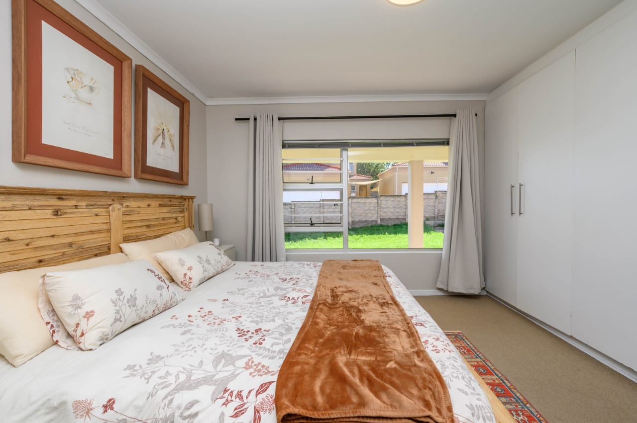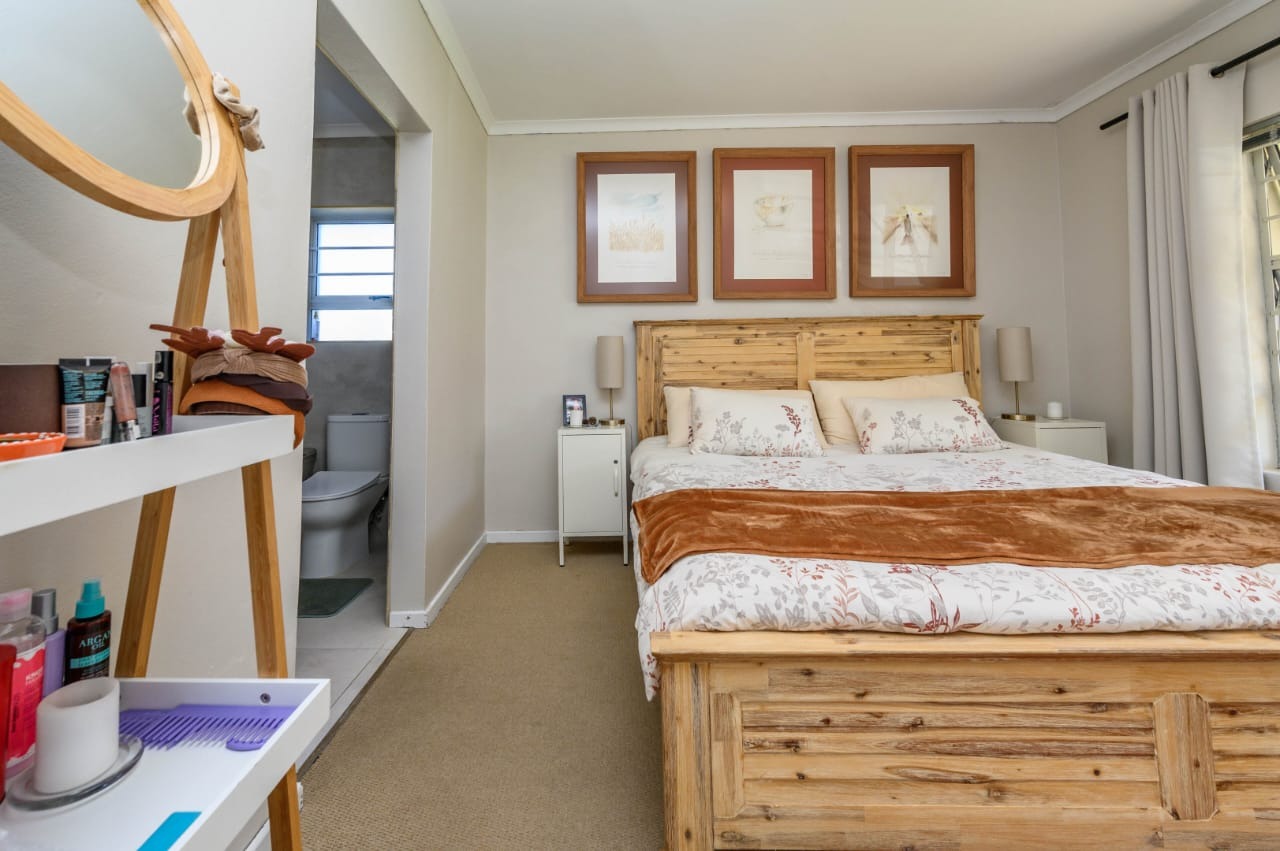 The home features three well-sized bedrooms with built-in cupboards, including a main bedroom with an en-suite bathroom. The second bathroom is neatly finished and conveniently positioned to serve the remaining bedrooms and guests.