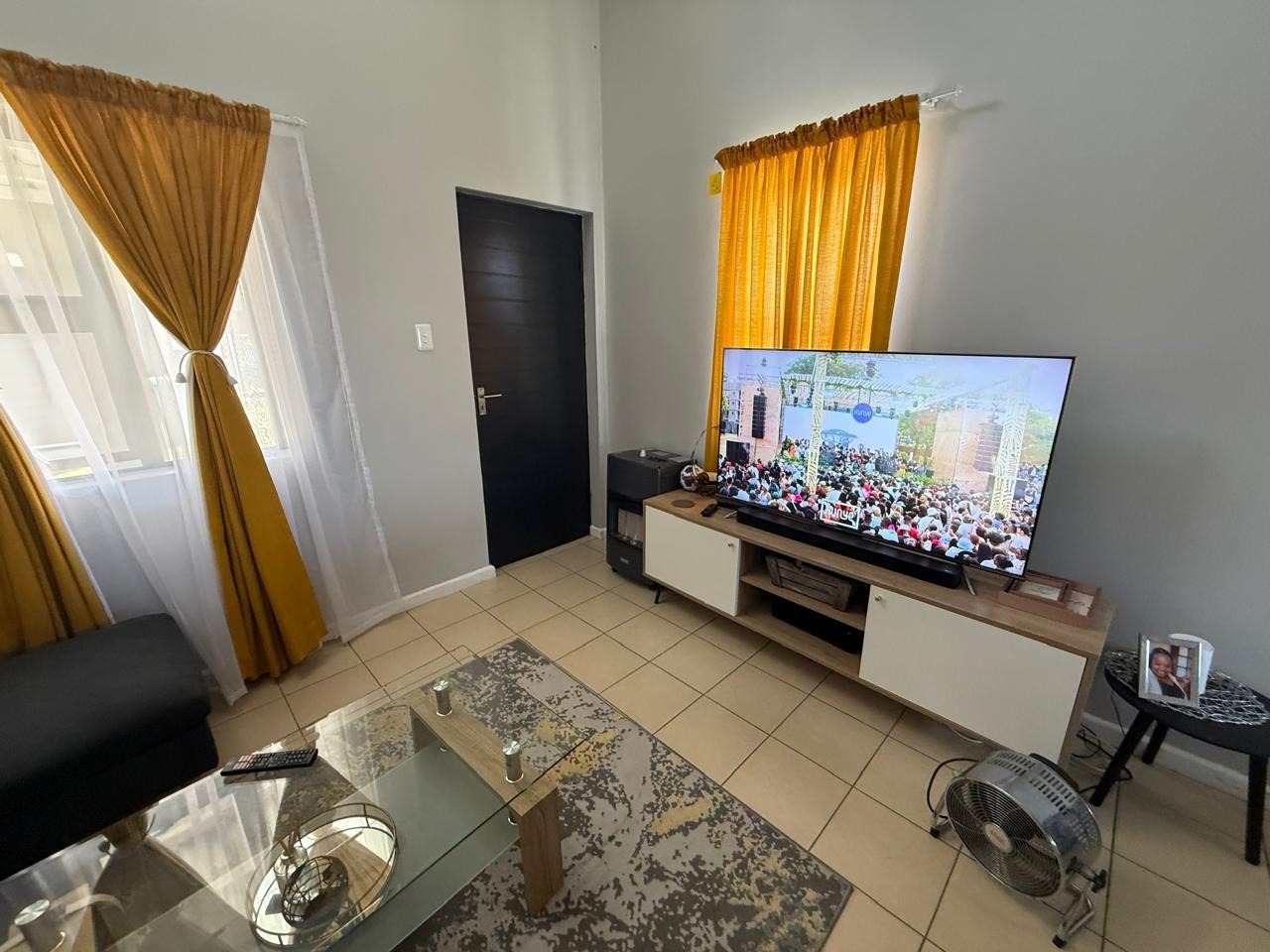 Discover modern living in this charming 2-bedroom, modern bathroom (with shower), modern fitted kitchen- free standing home. Situated within a secure, gated estate in Parsonsvlei, Port Elizabeth with a 24 hour guarded security post. Boasting a contemporary architectural design with an angular roofline and a stylish grey exterior, this property offers excellent kerb appeal. The bright blue front door adds a welcoming touch, complemented by a paved driveway leading to convenient paved parking for your vehicles.