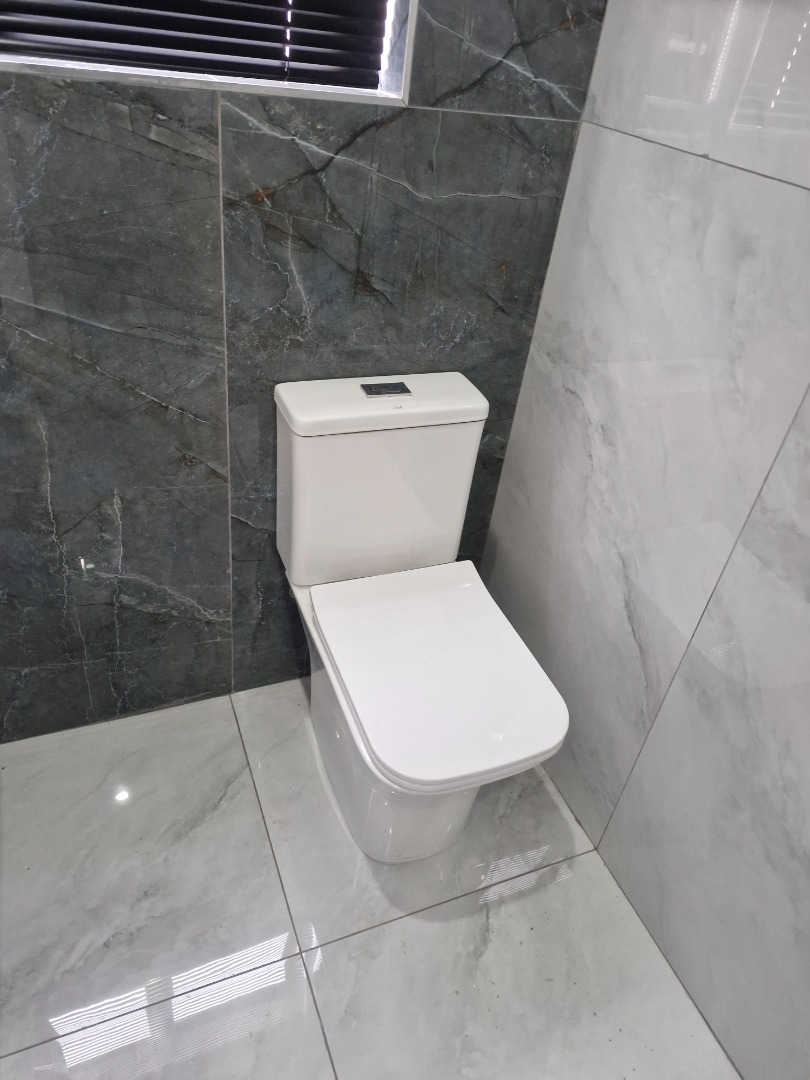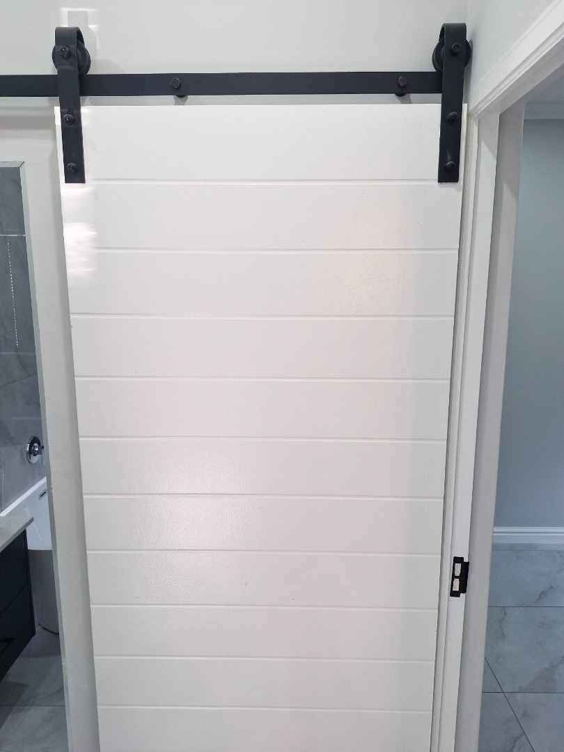 - 1 full Bathroom. Freestanding bath and walk-in shower. Basin on vanity cupboard and stunning lighted mirror. Porcelain tiles to the ceiling. Barndoor slider.
