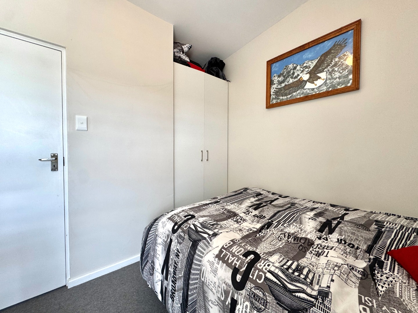 Upstairs, two additional bedrooms provide comfortable accommodation, with all three bedrooms fitted with built-in cupboards to ensure generous storage space.