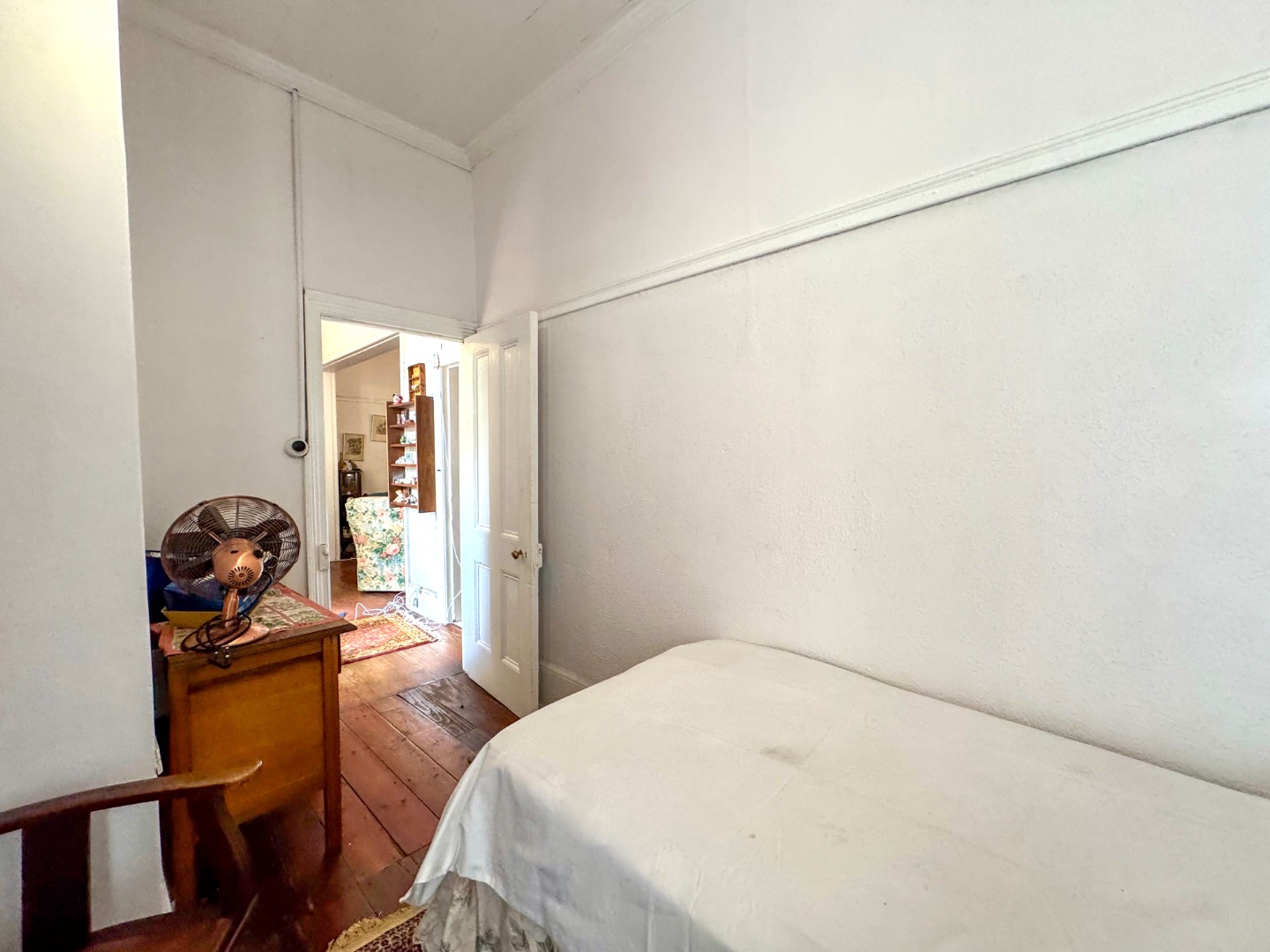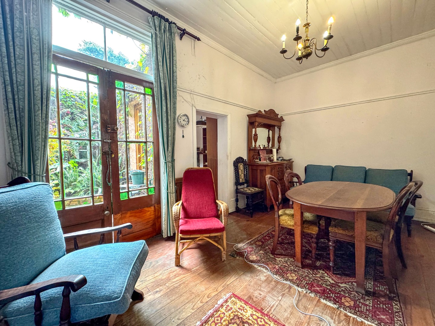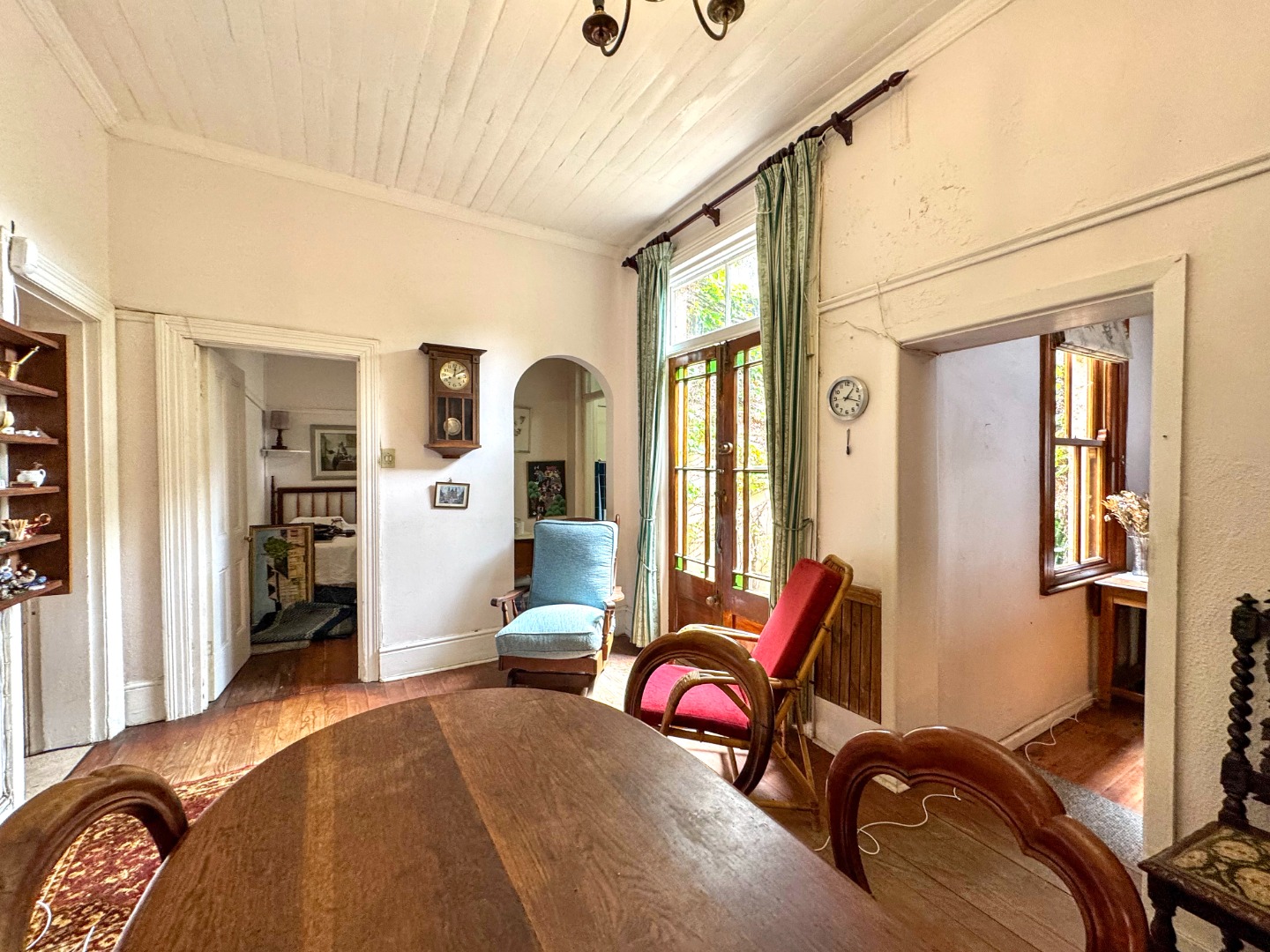 This charming 2-bedroom, 1-bathroom residence in Port Elizabeth Central offers a unique opportunity to own a home brimming with traditional character and significant potential. Spacious living areas, including a dedicated lounge and dining room, feature impressive high ceilings adorned with decorative molding and classic light fixtures. Abundant natural light streams through large windows, many fitted with plantation shutters, illuminating original hardwood floors that hint at the property's timeless appeal.