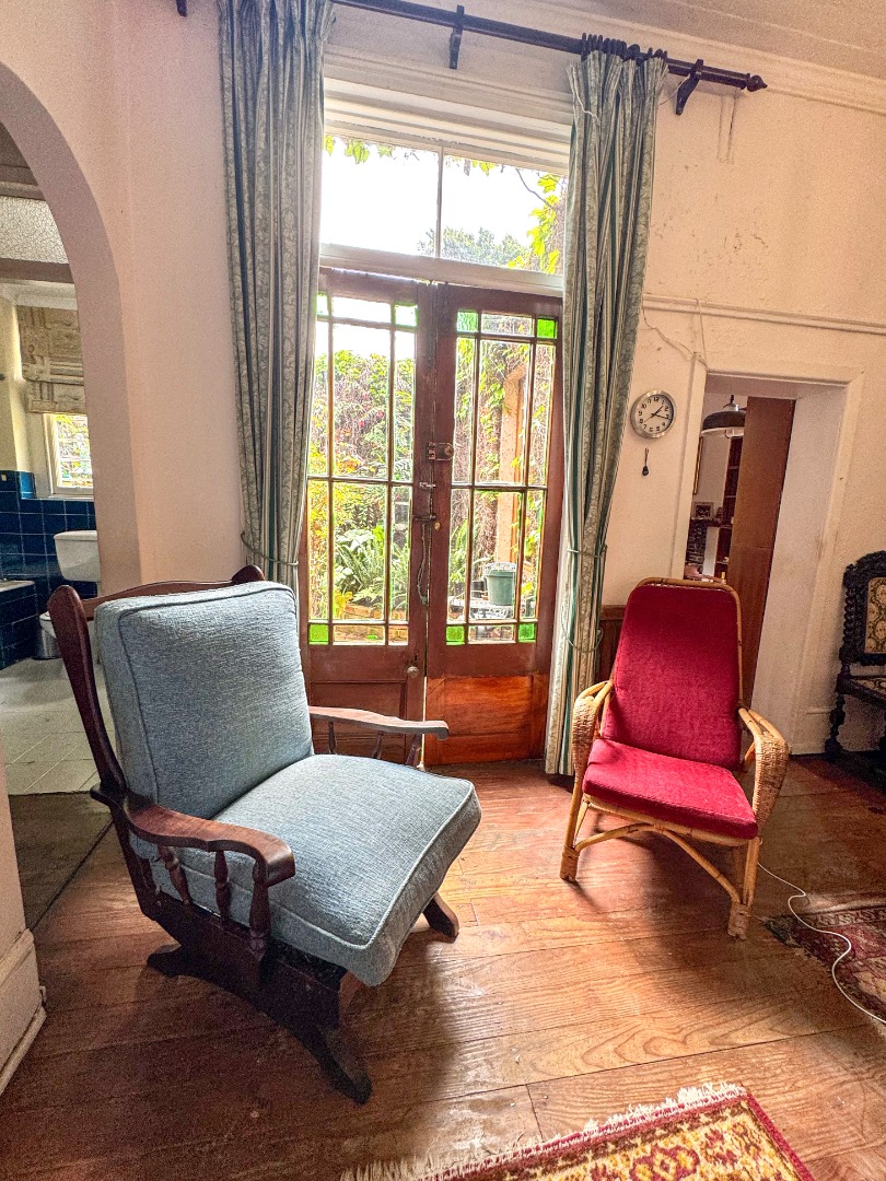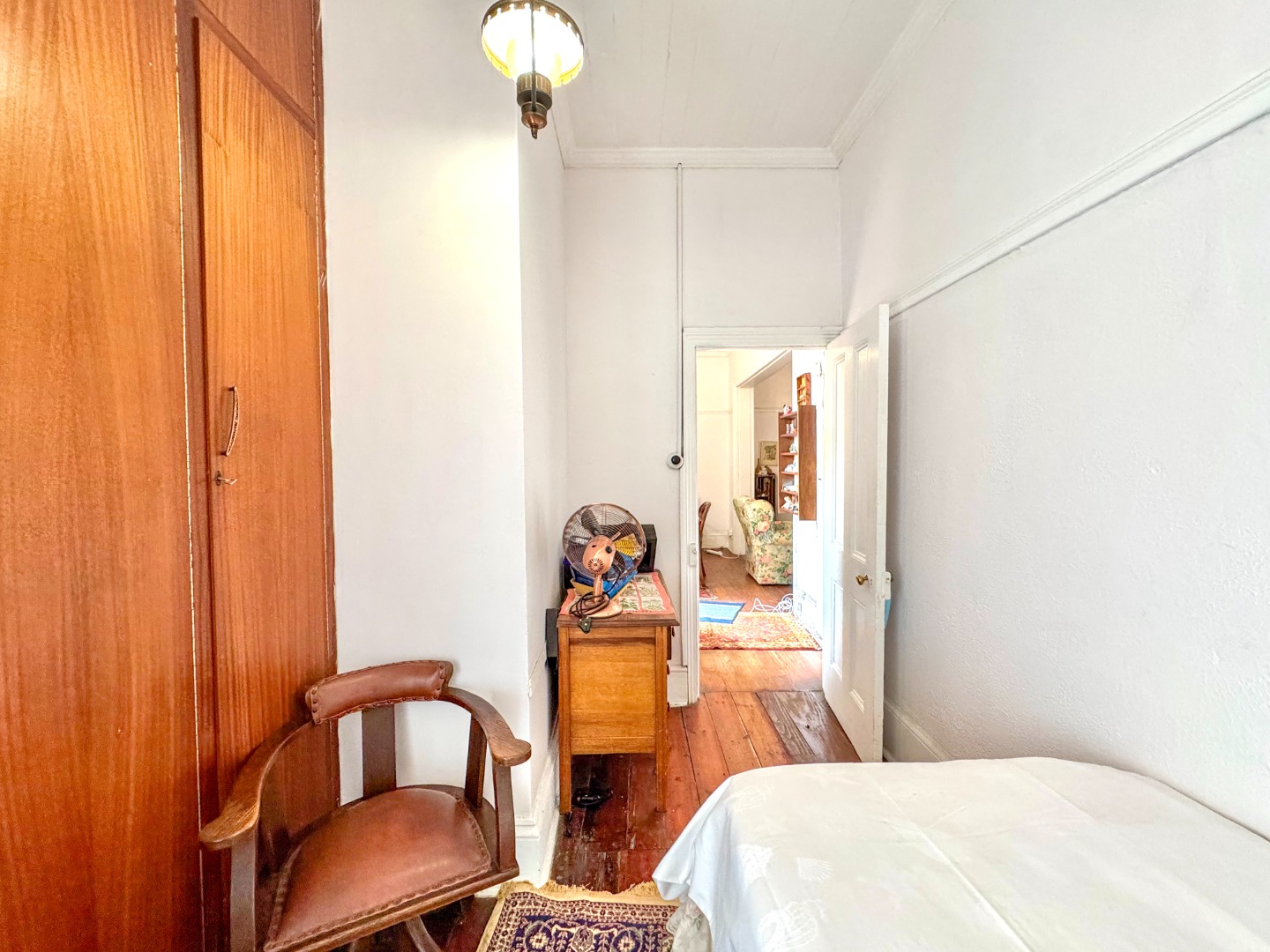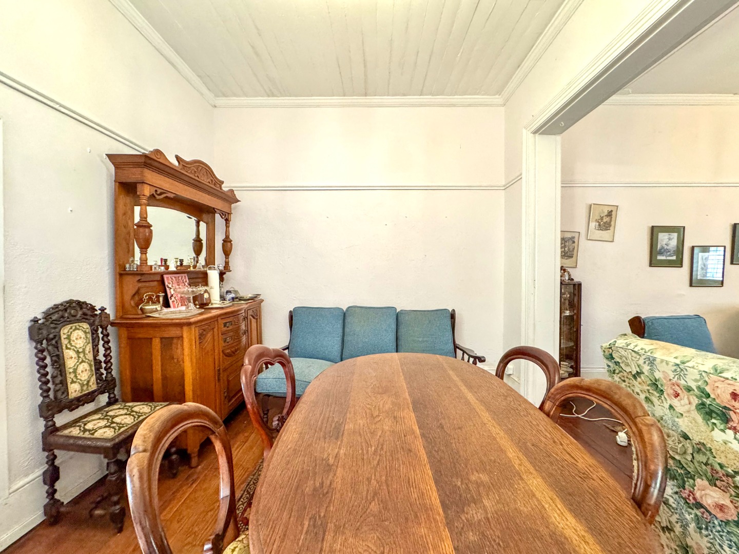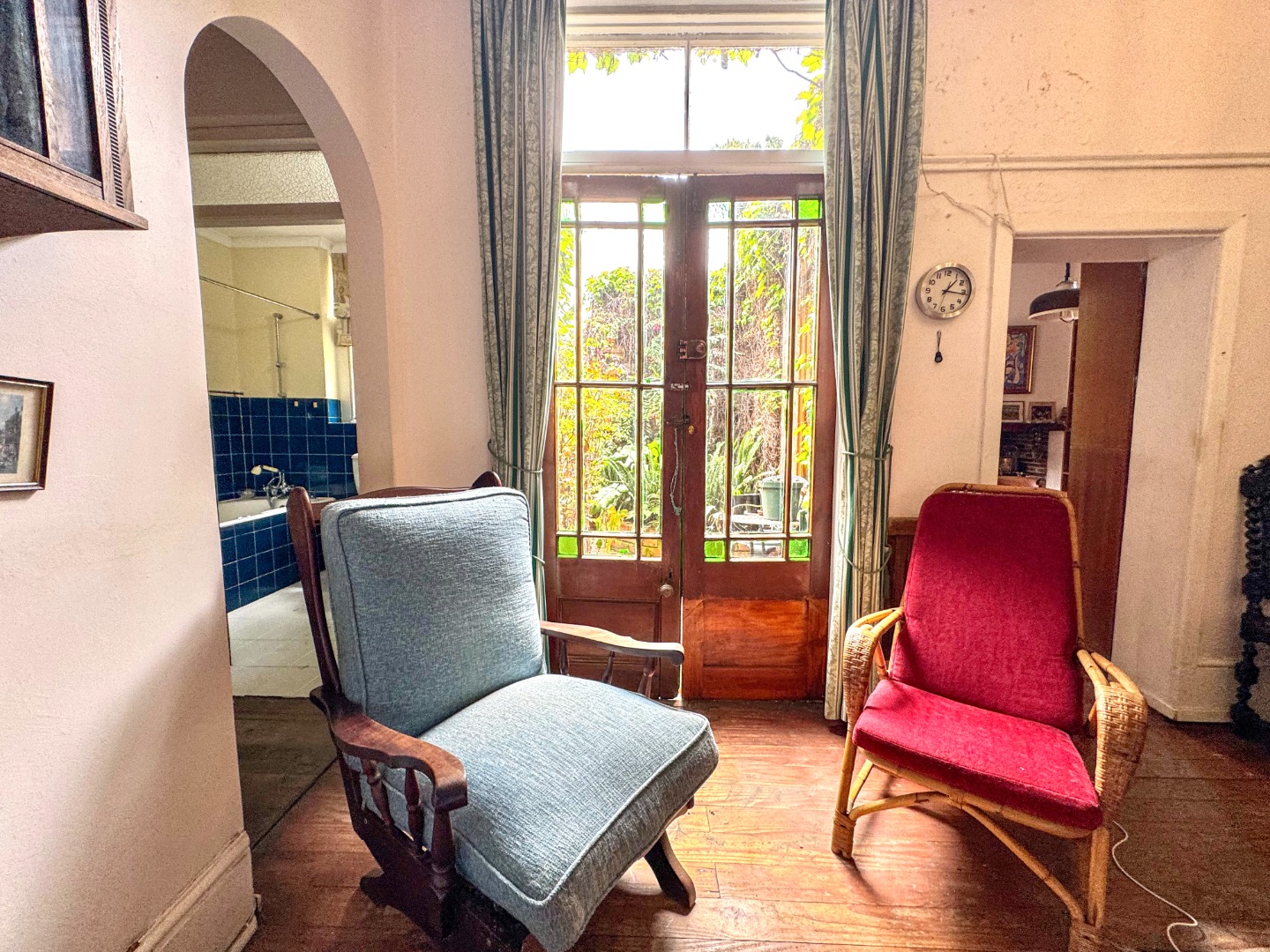 This charming 2-bedroom, 1-bathroom residence in Port Elizabeth Central offers a unique opportunity to own a home brimming with traditional character and significant potential. Spacious living areas, including a dedicated lounge and dining room, feature impressive high ceilings adorned with decorative molding and classic light fixtures. Abundant natural light streams through large windows, many fitted with plantation shutters, illuminating original hardwood floors that hint at the property's timeless appeal.