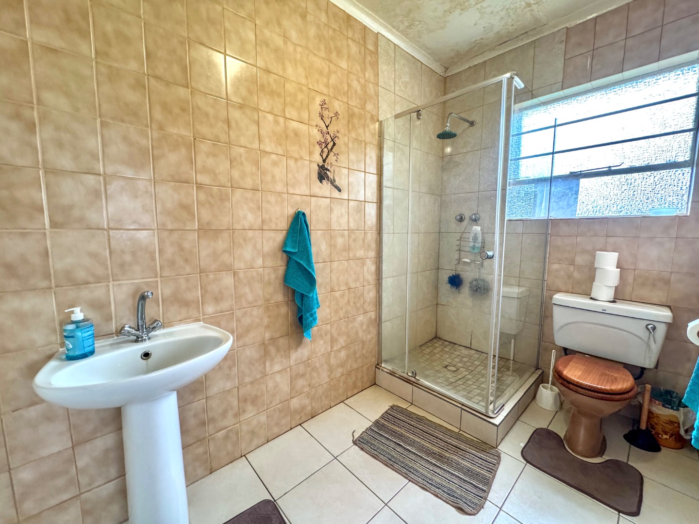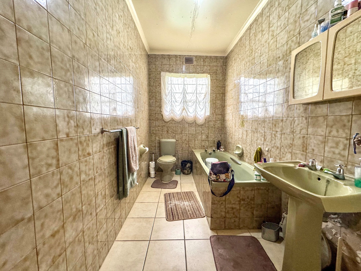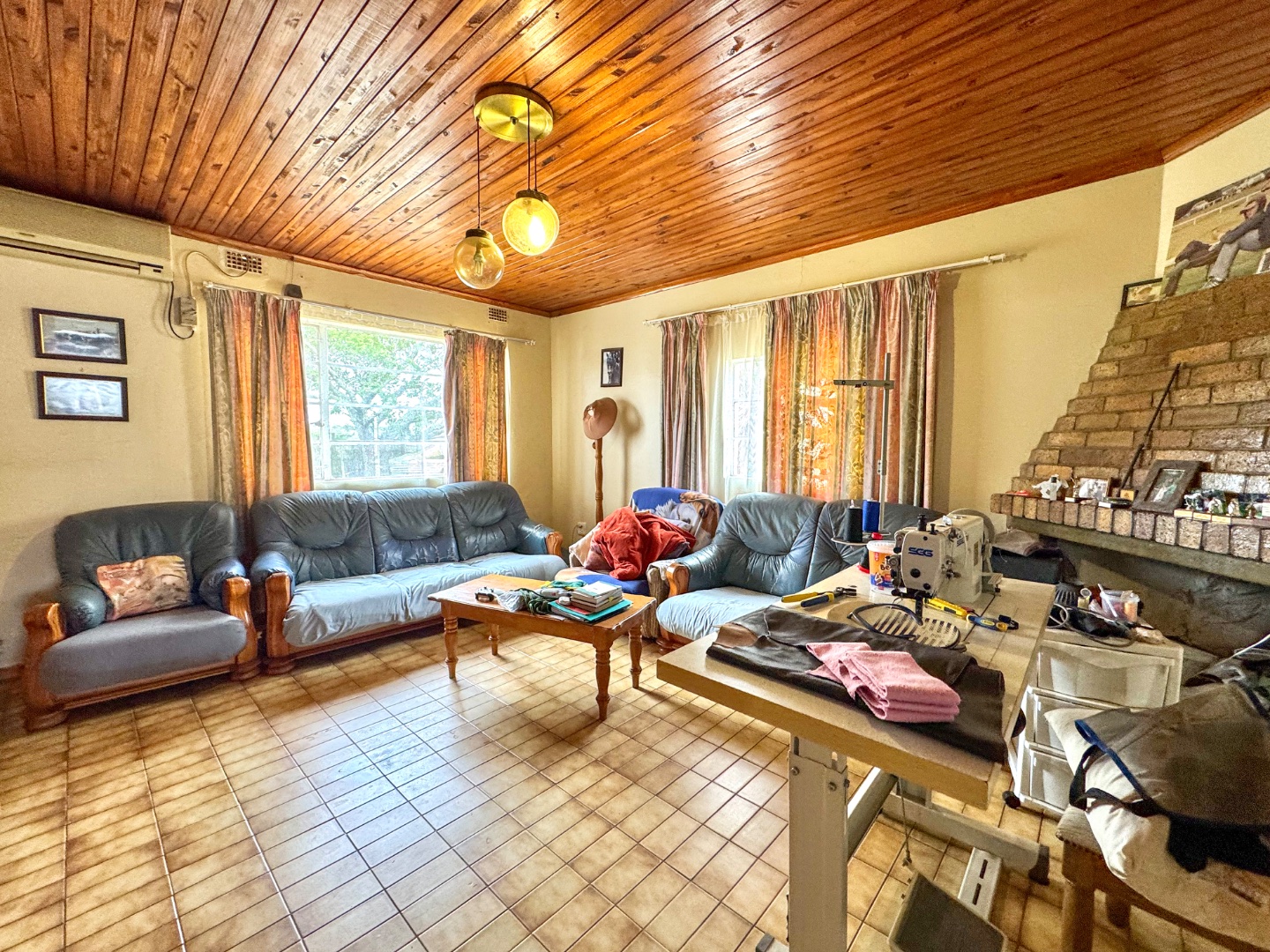 3 spacious living areas with tiled floors with an open plan layout consisting of a lounge/TV room with fireplace, dining area with a pub.