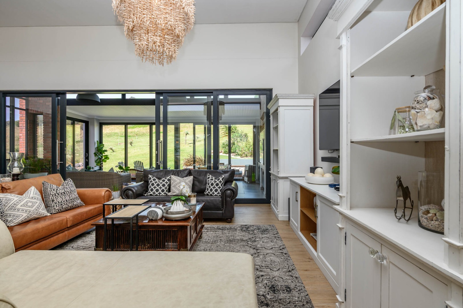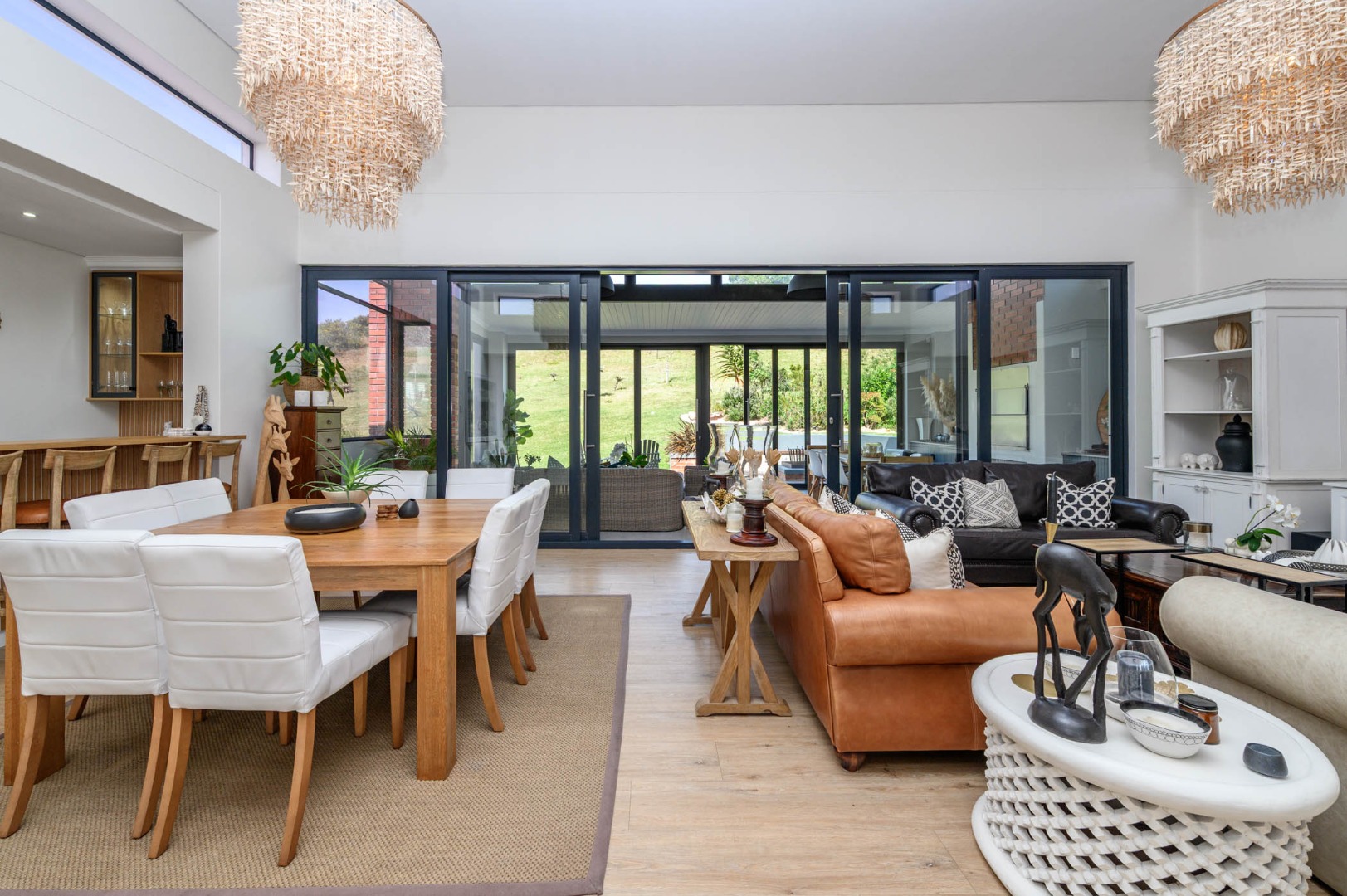 The generous living spaces include a built-in bar and a stylish entertainment area with a built-in braai, all flowing onto a lovely elevated deck. Here, you’ll find a fire pit framed by scenic estate views - the ideal spot to unwind and take in Royalston’s natural beauty.