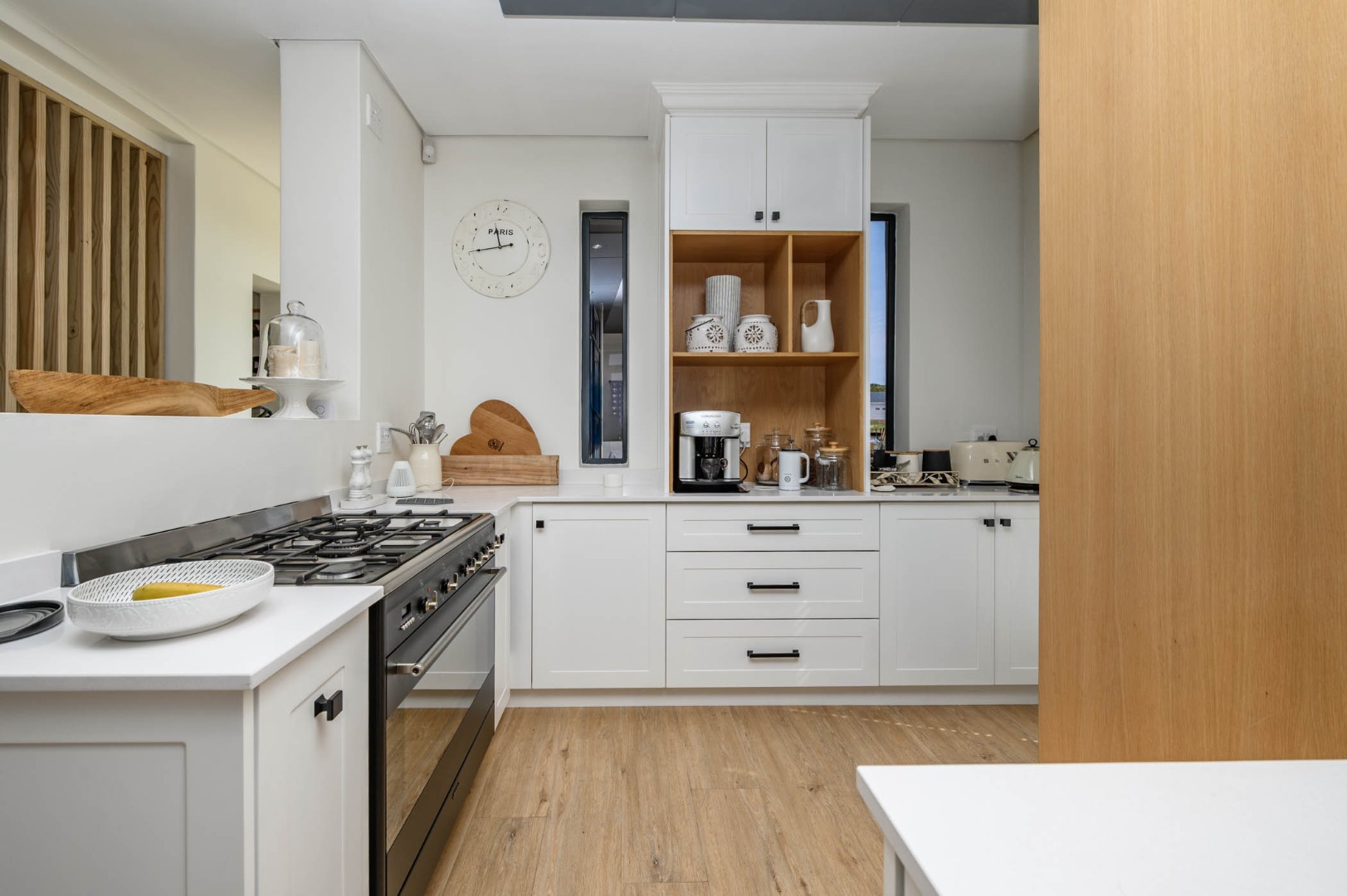Designed with modern architecture and striking detail, the home features open ceilings, clean lines, and exceptional craftsmanship throughout. The heart of the home is the designer kitchen, showcasing waterfall countertops, premium finishes, and seamless flow into the dining and lounge areas - perfect for effortless family living and upscale entertaining.