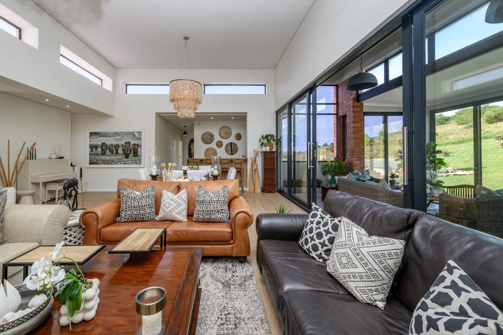 The generous living spaces include a built-in bar and a stylish entertainment area with a built-in braai, all flowing onto a lovely elevated deck. Here, you’ll find a fire pit framed by scenic estate views - the ideal spot to unwind and take in Royalston’s natural beauty.