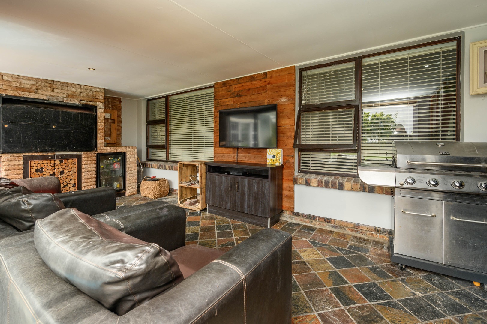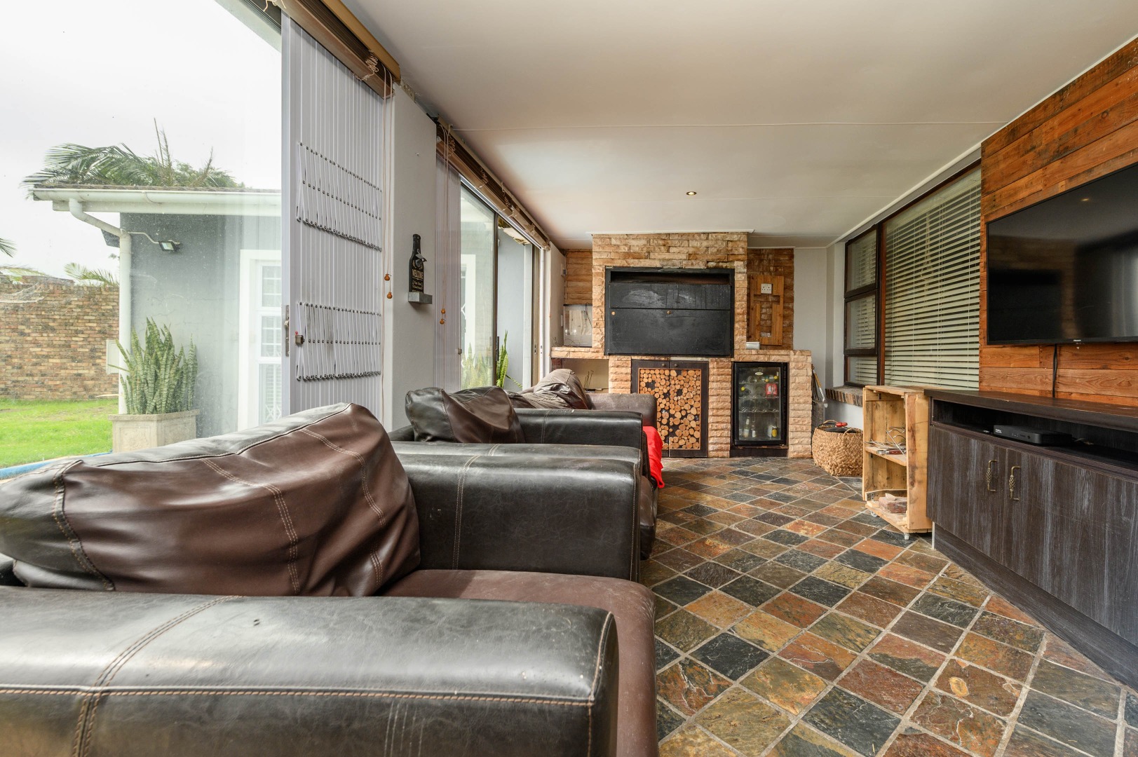 The TV room flows seamlessly into the indoor braai area, making entertaining family and friends easy and enjoyable.