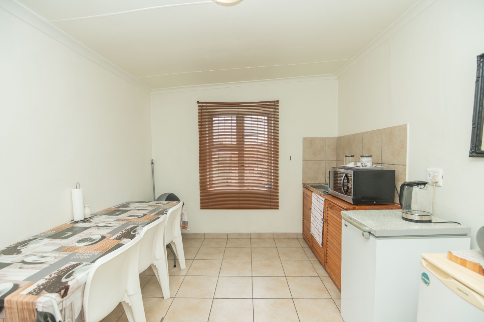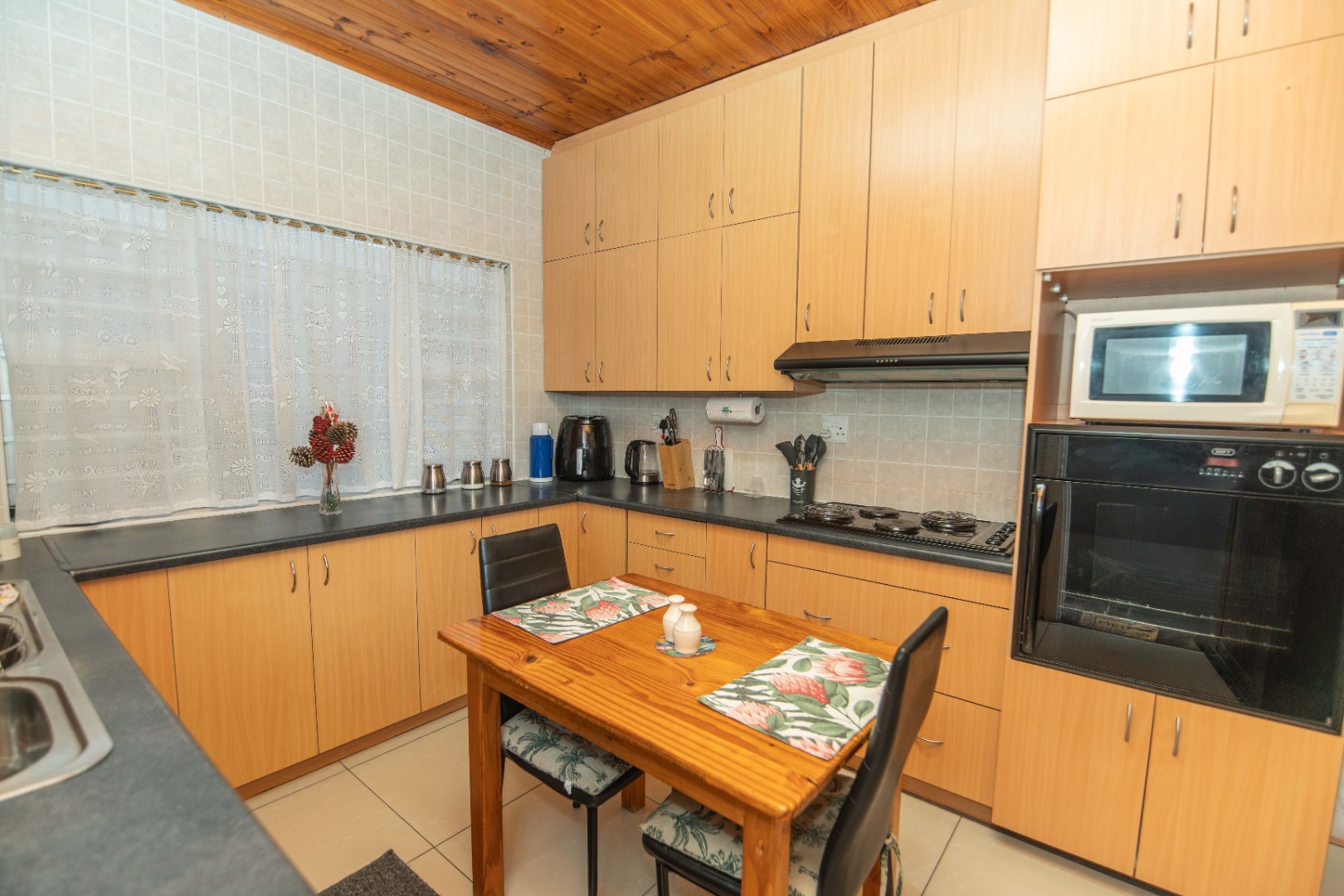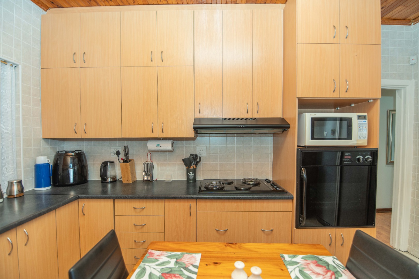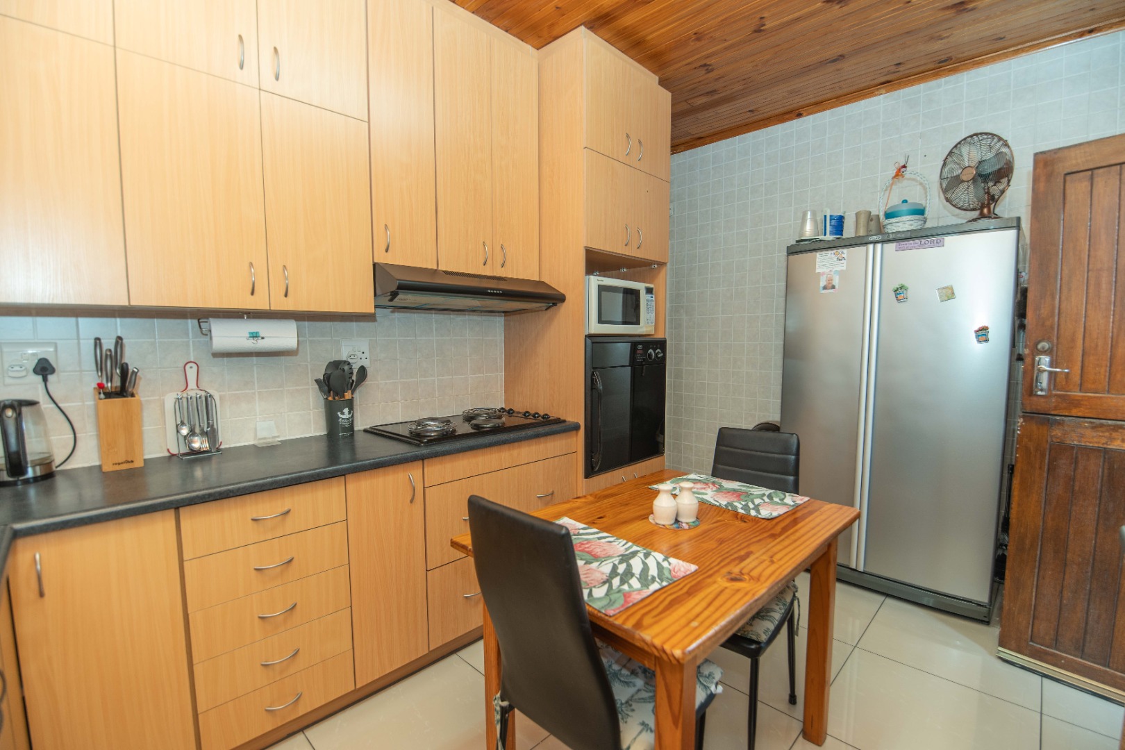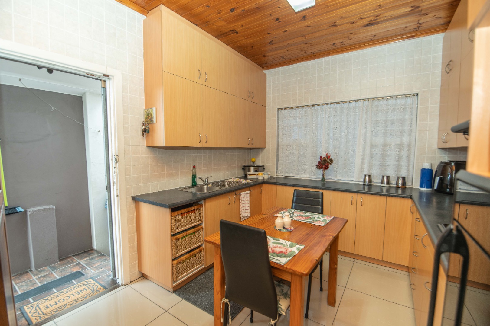 The neat, fitted kitchen is practical and well maintained, while a spacious exterior laundry area offers added convenience for household tasks.