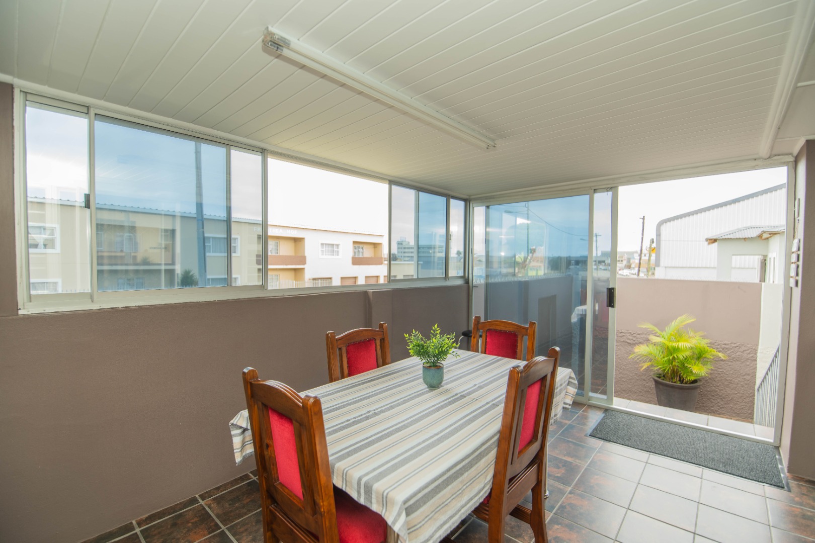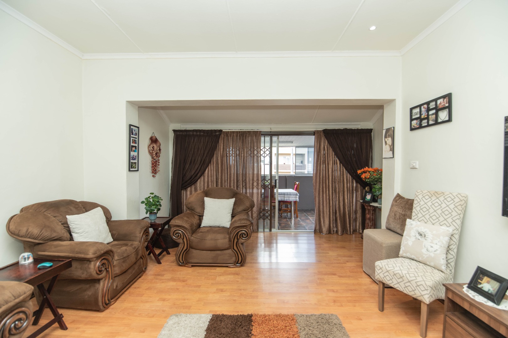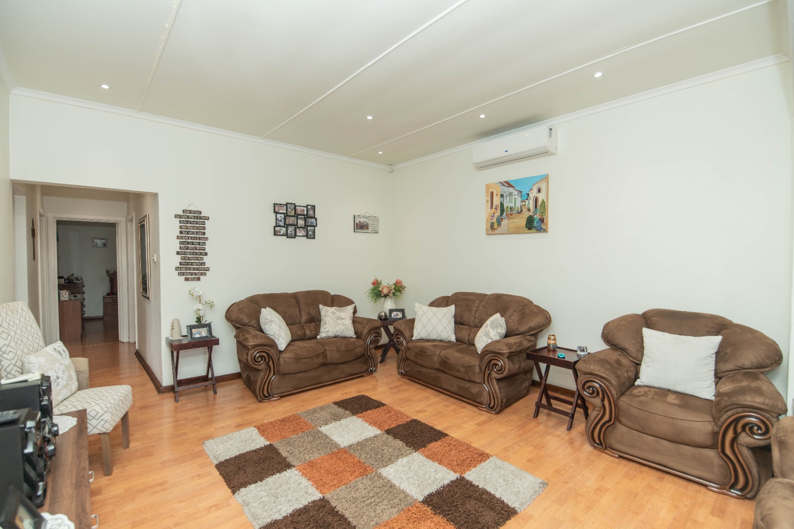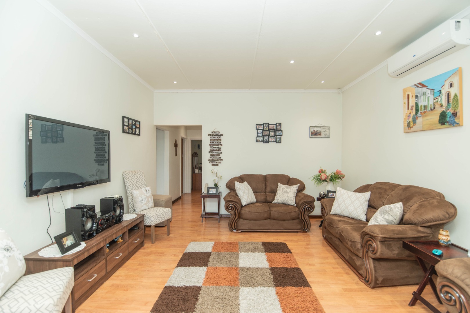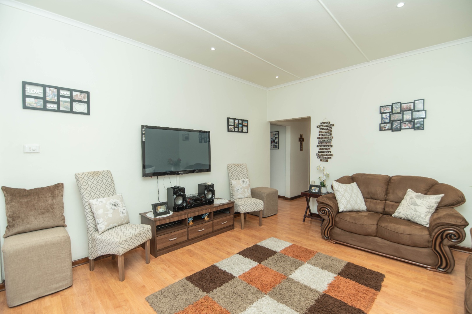 The home features three well-sized bedrooms and a bathroom, complemented by a spacious living room that creates a warm and welcoming atmosphere for everyday family living. An enclosed braai area adds to the home's appeal, providing a comfortable entertaining space.