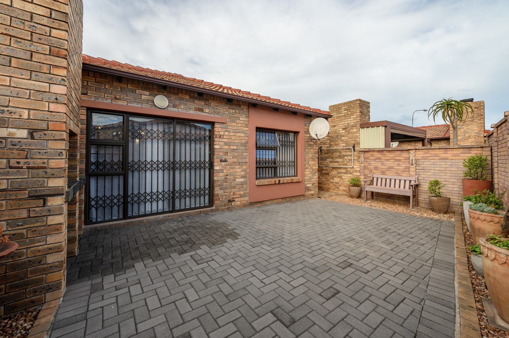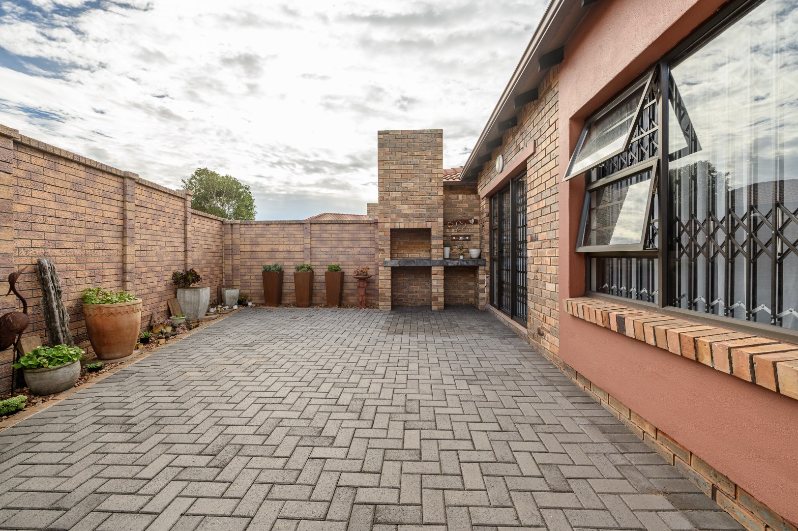 - Neatly paved back garden with built-in braai