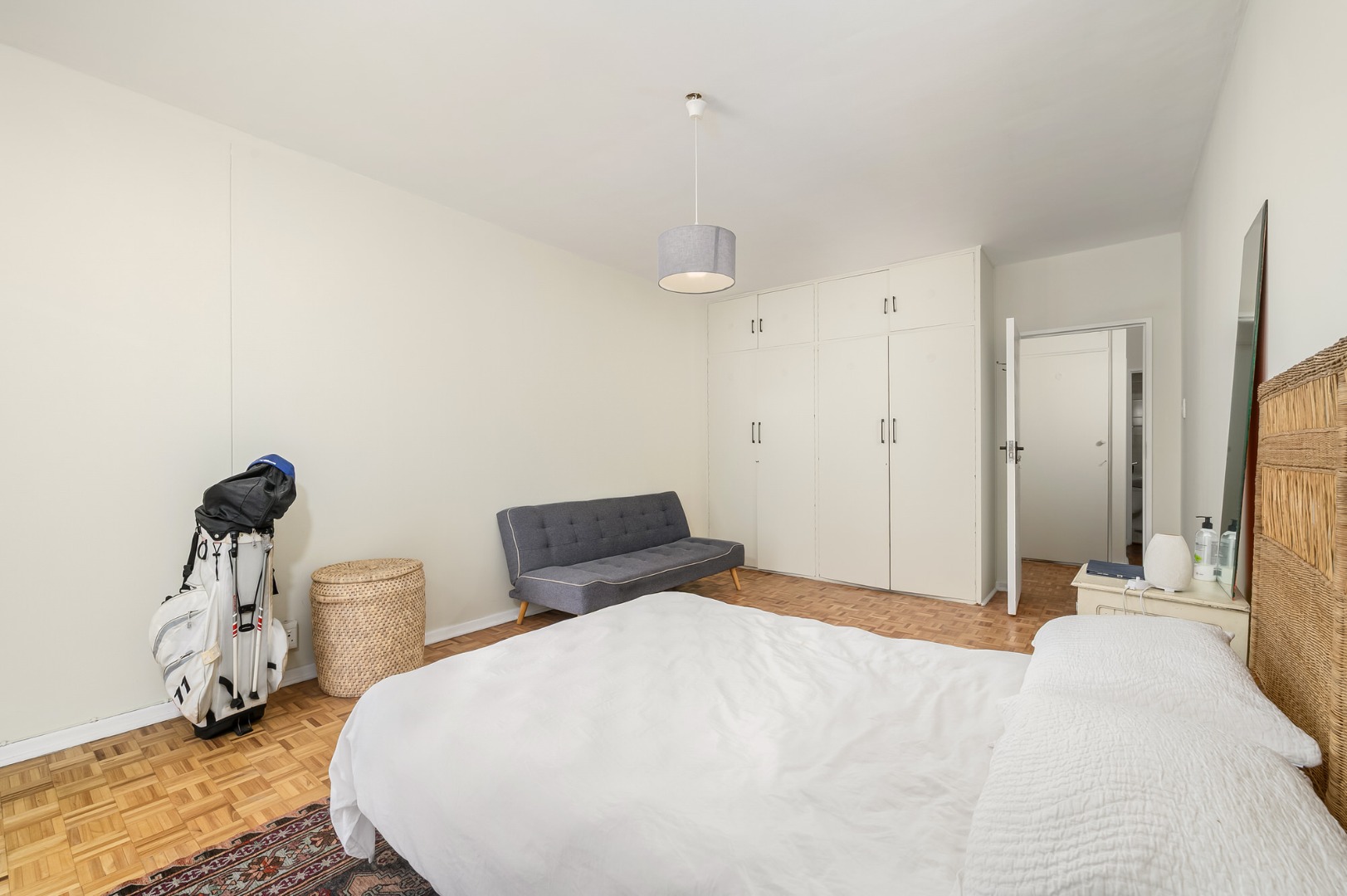 A combination of classic wooden parquet and sleek tiles brings character and sophistication to the home. Both bedrooms offer spacious built-in cupboards, ensuring plenty of storage, while the neatly tiled bathroom maintains a crisp and tidy appearance.