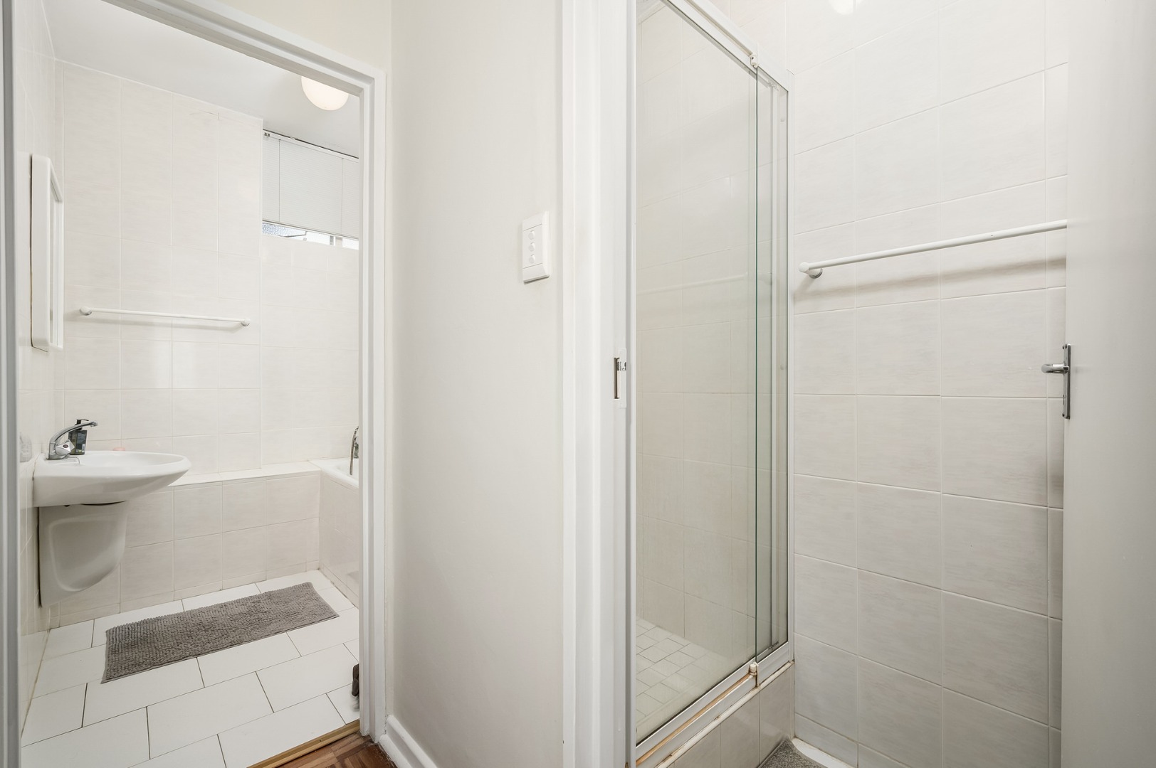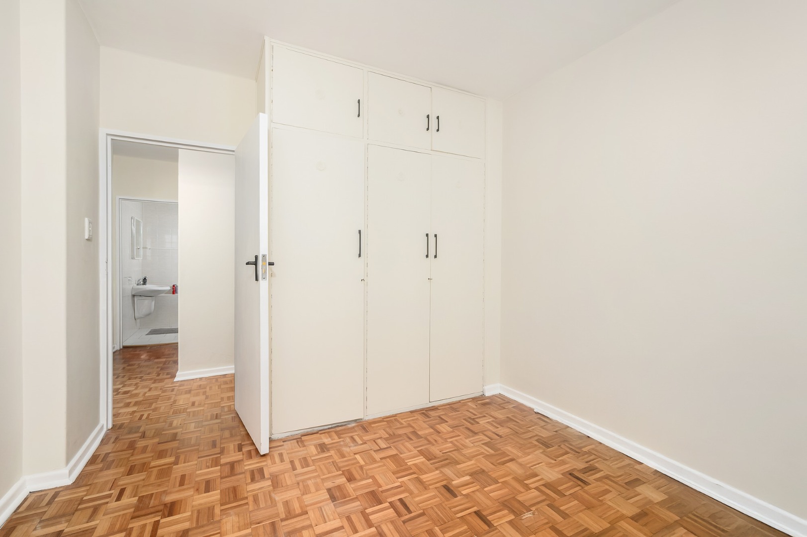 A combination of classic wooden parquet and sleek tiles brings character and sophistication to the home. Both bedrooms offer spacious built-in cupboards, ensuring plenty of storage, while the neatly tiled bathroom maintains a crisp and tidy appearance.
