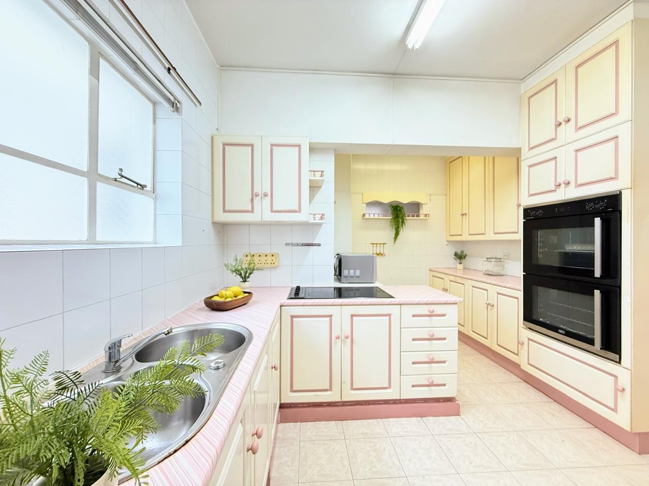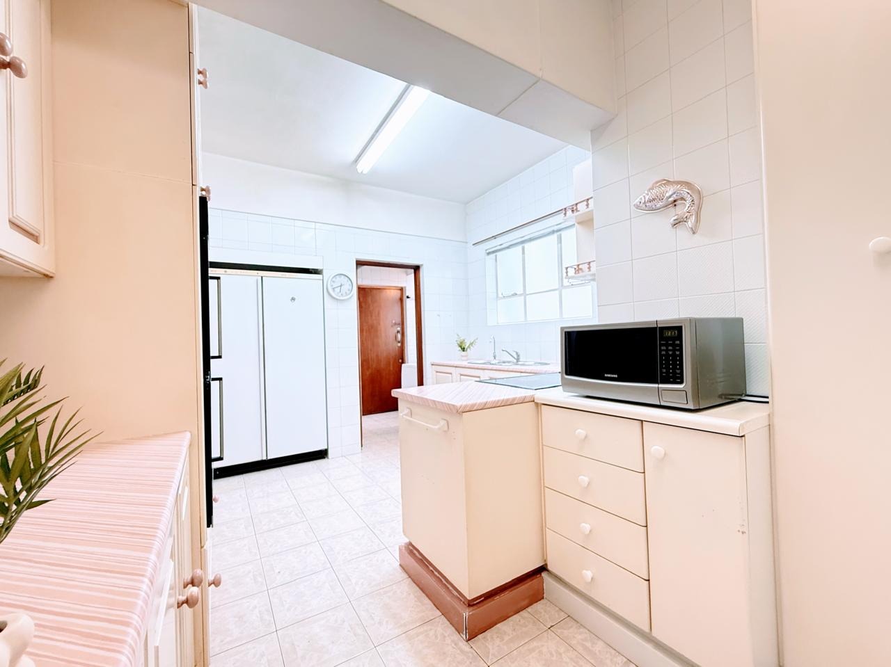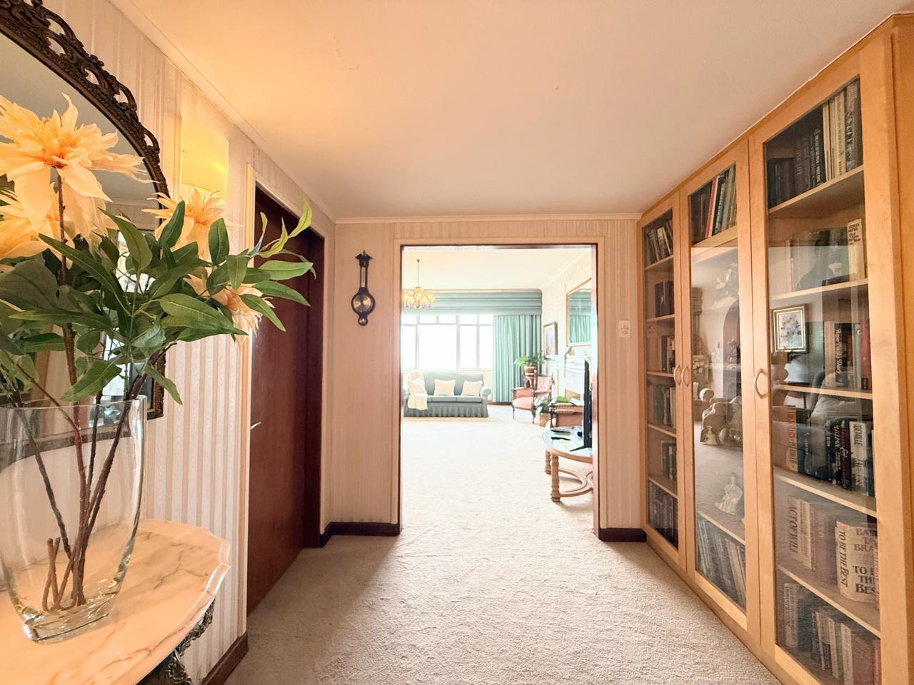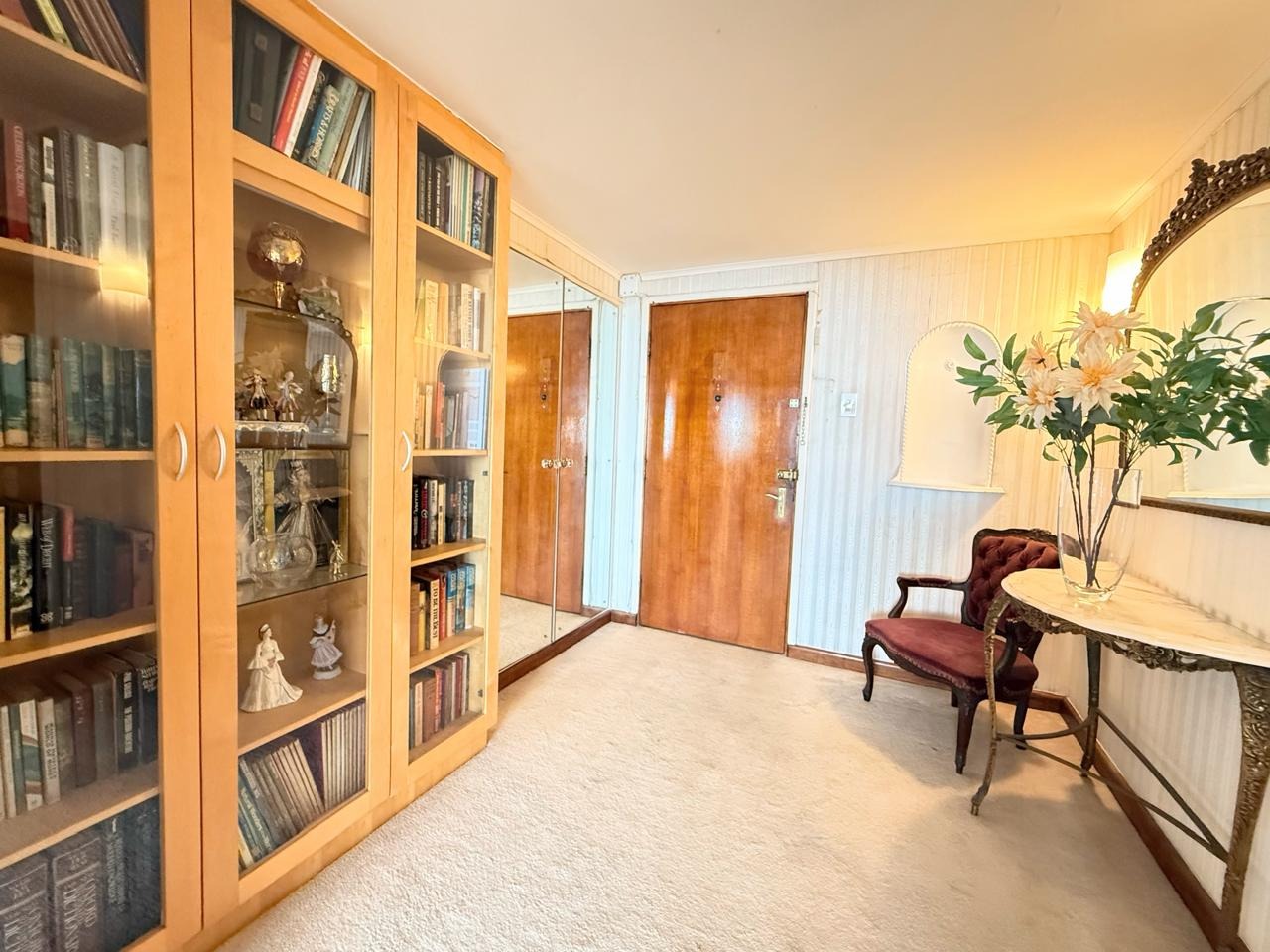 The unit is carpeted throughout (with beautiful parquet flooring beneath, except in the bathrooms), offering warmth and timeless appeal. It features three well-sized bedrooms and two bathrooms, including a full family bathroom.