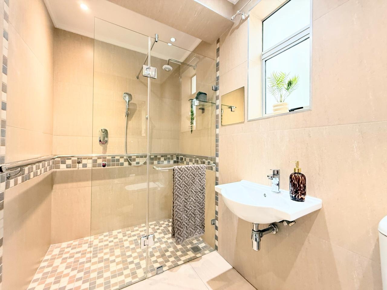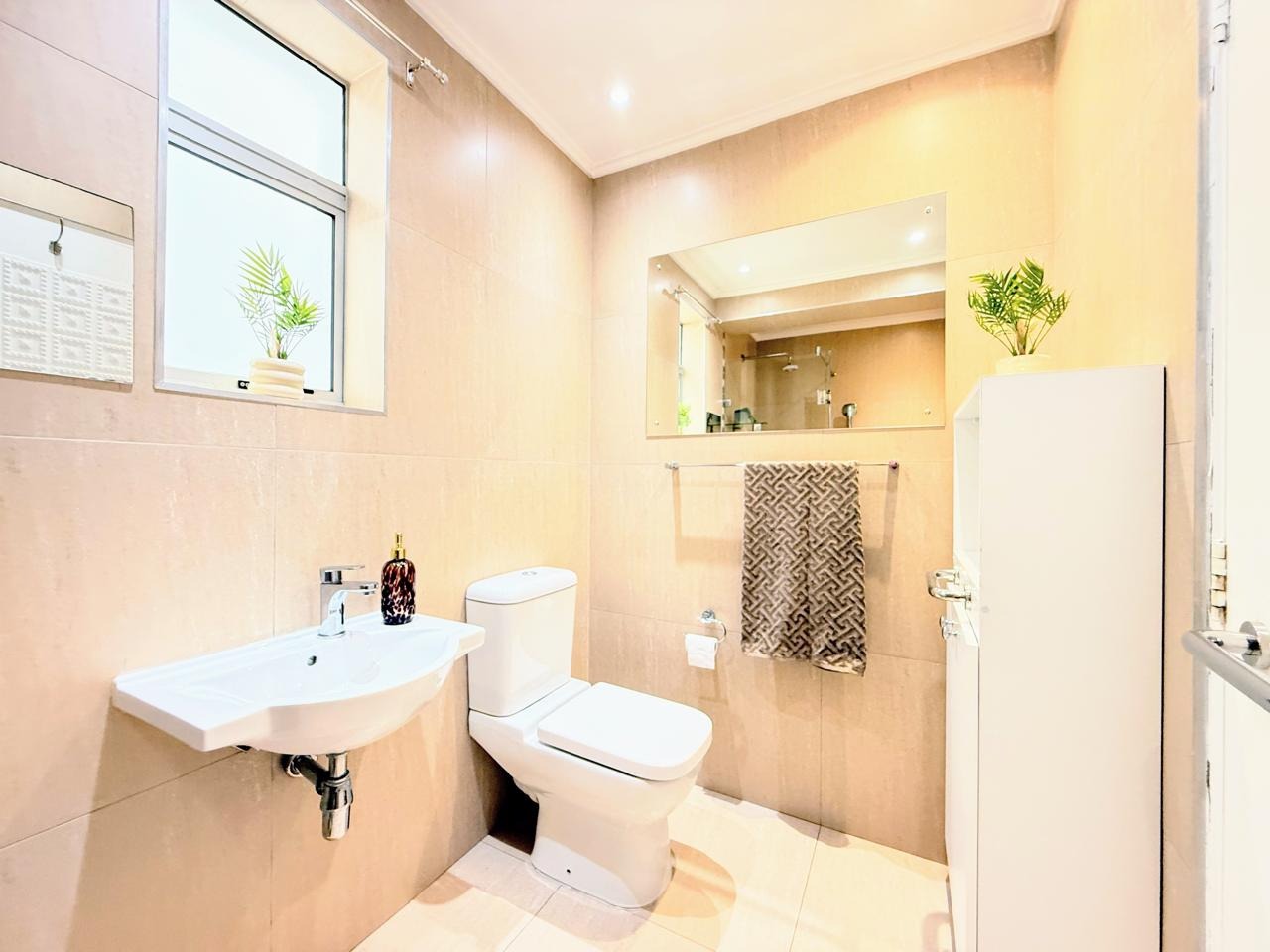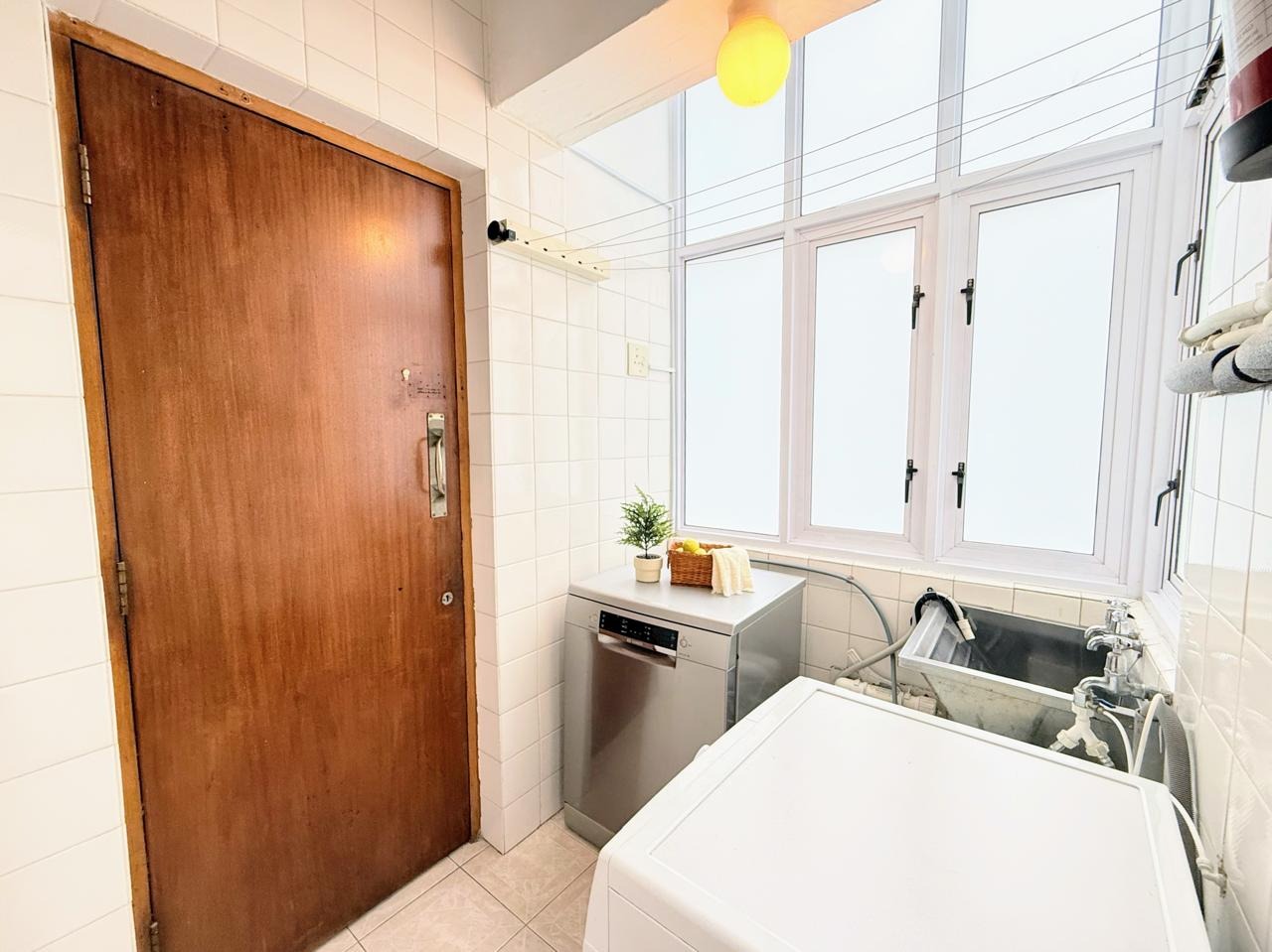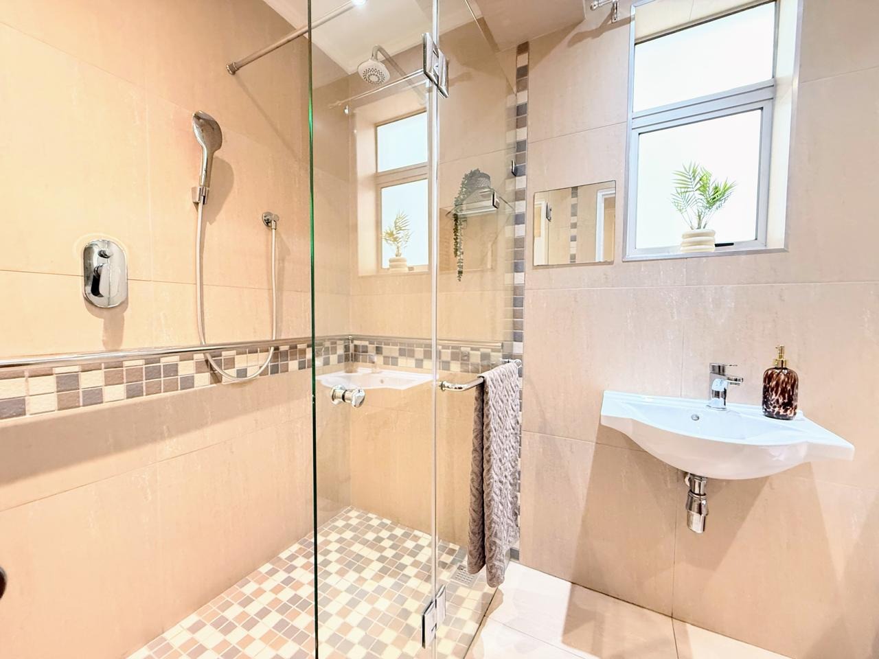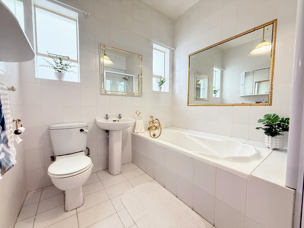 The unit is carpeted throughout (with beautiful parquet flooring beneath, except in the bathrooms), offering warmth and timeless appeal. It features three well-sized bedrooms and two bathrooms, including a full family bathroom.