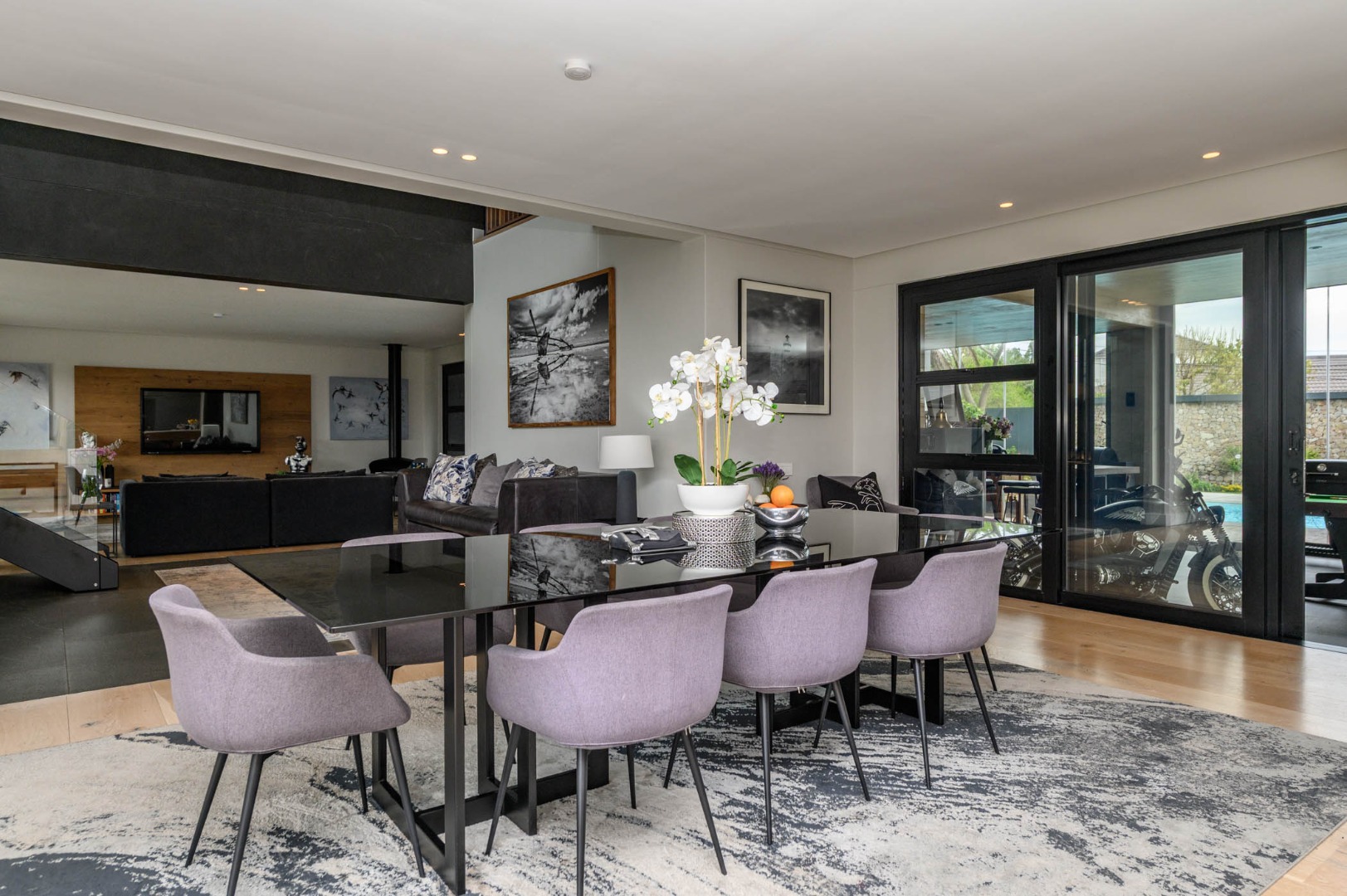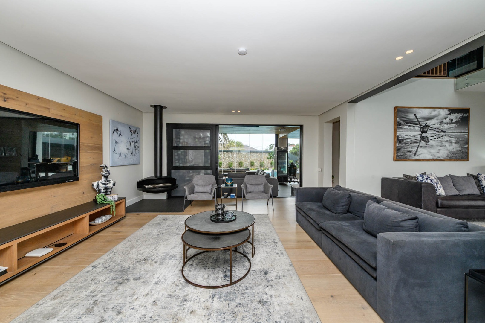 The home offers spacious open-plan living areas, including a formal lounge with a fireplace and an inviting dining room that flows effortlessly into a gourmet kitchen with a separate scullery. The entertainment area opens to a sparkling swimming pool and boasts captivating sea views — creating the ultimate setting for relaxed coastal living and sophisticated entertaining.