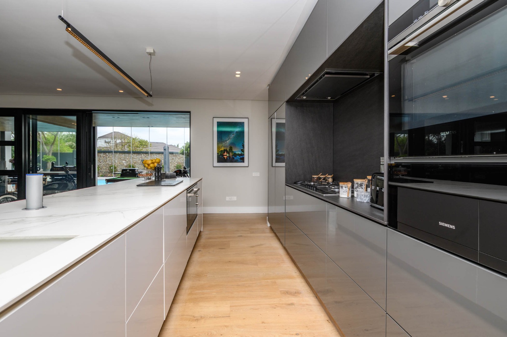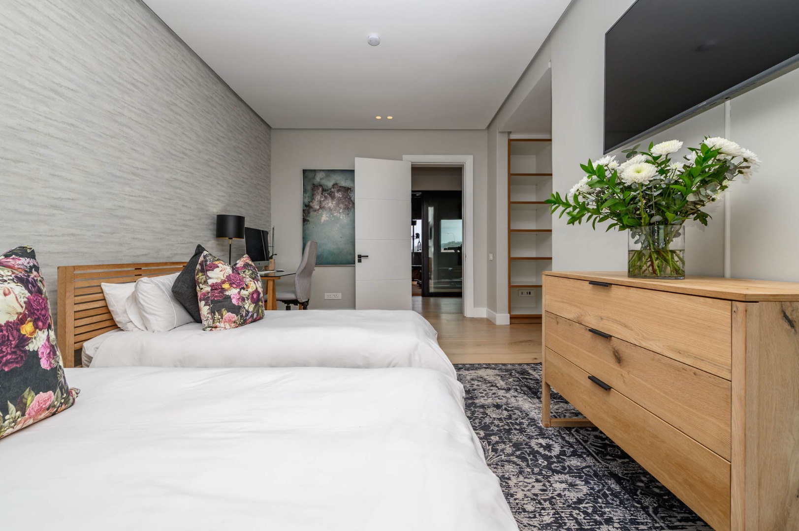 Comprising four luxurious bedrooms, each with its own en-suite bathroom, the home ensures comfort and privacy for the entire family. The main suite is a sanctuary featuring his and hers dressing rooms and a spa-inspired bathroom.