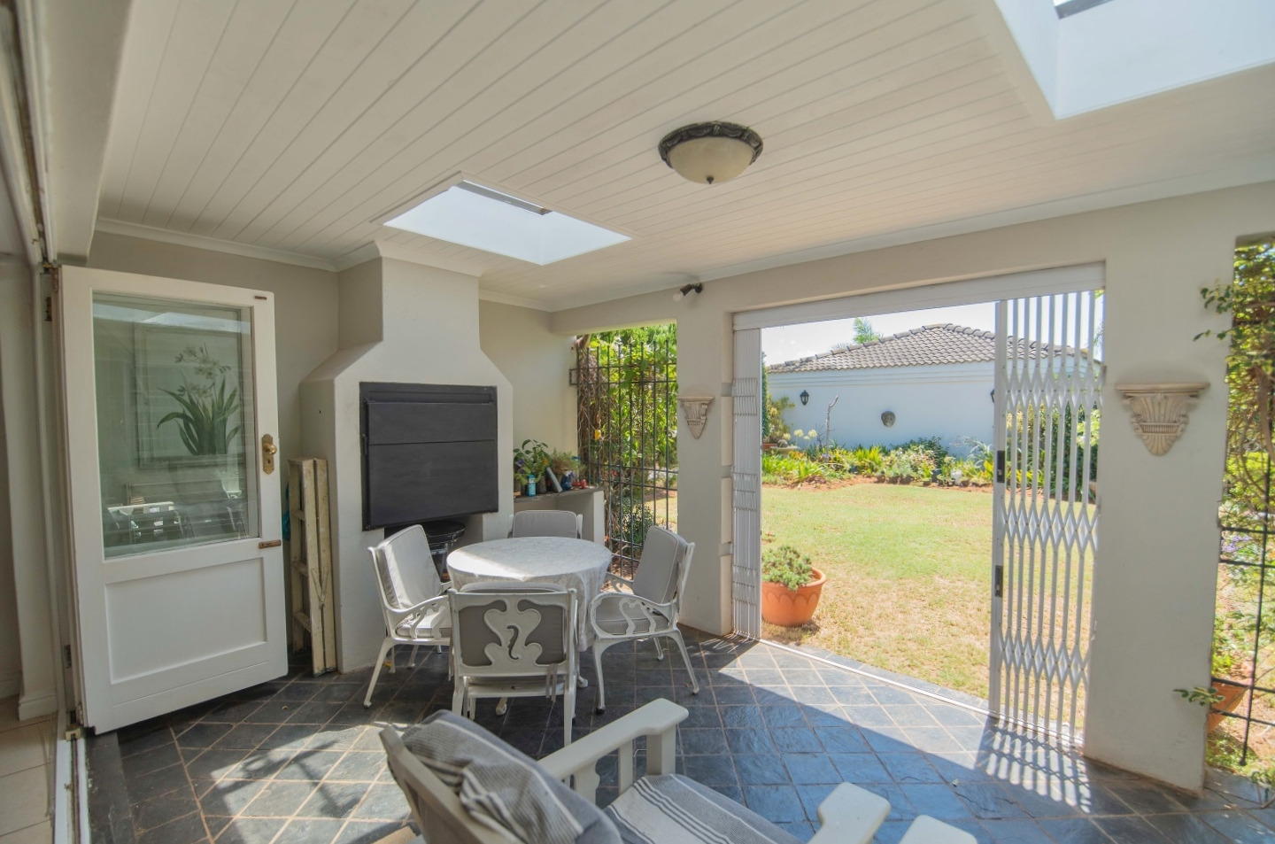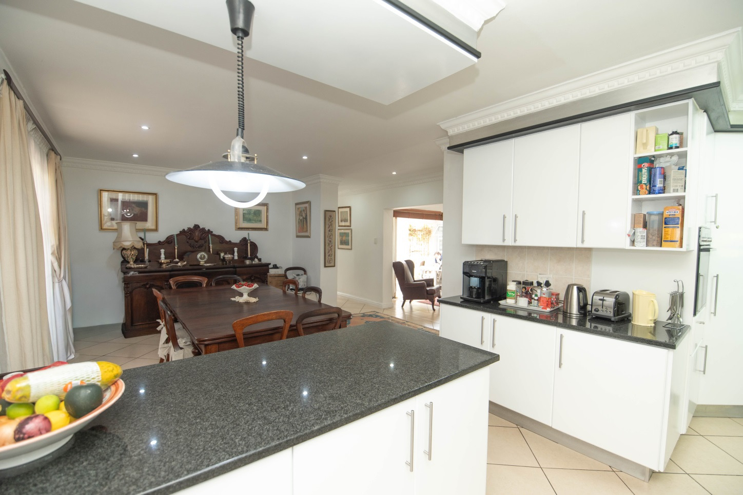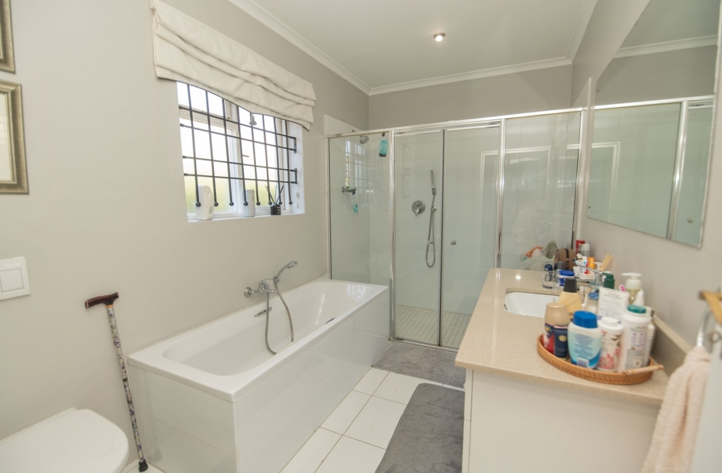 Set on a generous 897 m² erf with 365 m² under roof, the home features four bedrooms, including a main en suite with walk-in closet, and three full bathrooms. The main en suite is luxuriously fitted with a double shower, bath, toilet and basin, while the additional bathrooms are thoughtfully designed for family convenience.