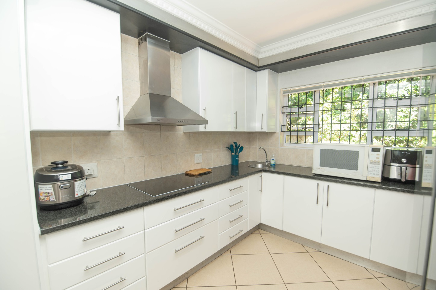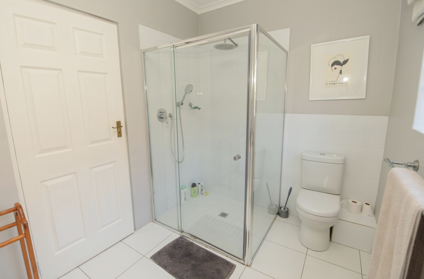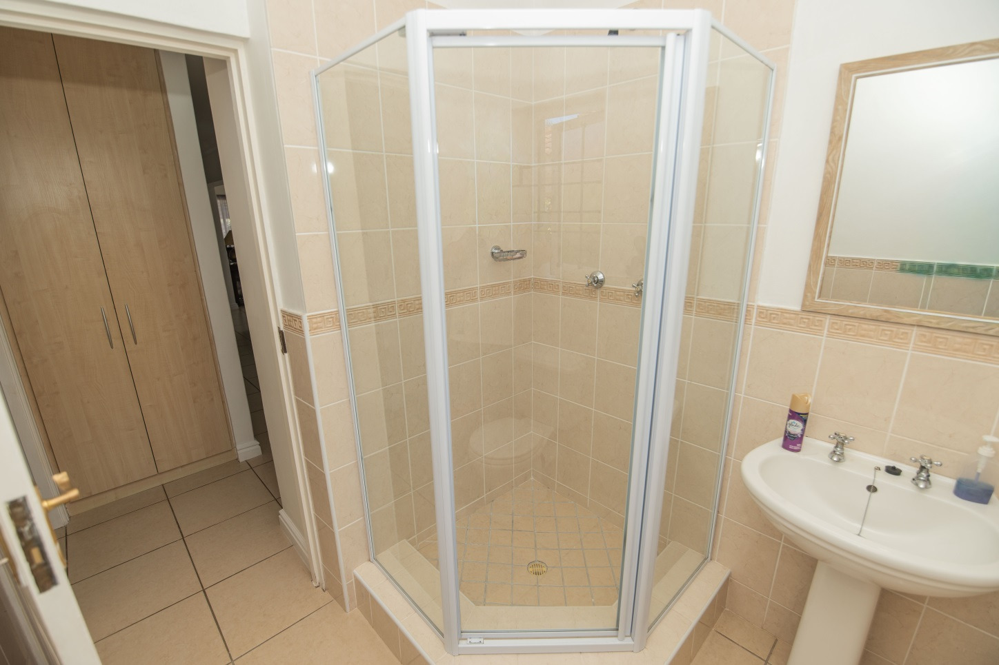 Set on a generous 897 m² erf with 365 m² under roof, the home features four bedrooms, including a main en suite with walk-in closet, and three full bathrooms. The main en suite is luxuriously fitted with a double shower, bath, toilet and basin, while the additional bathrooms are thoughtfully designed for family convenience.