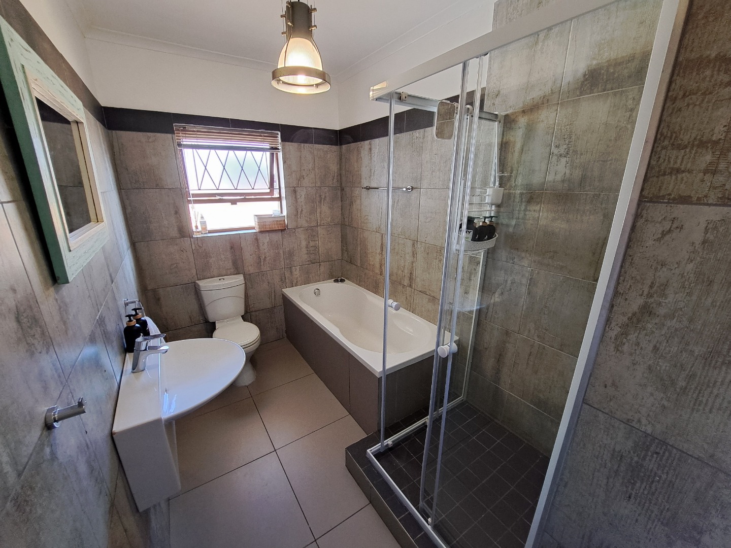 This immaculate home features three spacious bedrooms, two stylish bathrooms, and a private dressing room, thoughtfully designed for comfortable everyday living. The heart of the home is a stunning open-plan flow from the large contemporary kitchen through to the dining area and lounge, creating a warm, connected space for family time and effortless entertaining. An additional entertainment room with a built-in braai makes hosting friends and family a pleasure all year round.