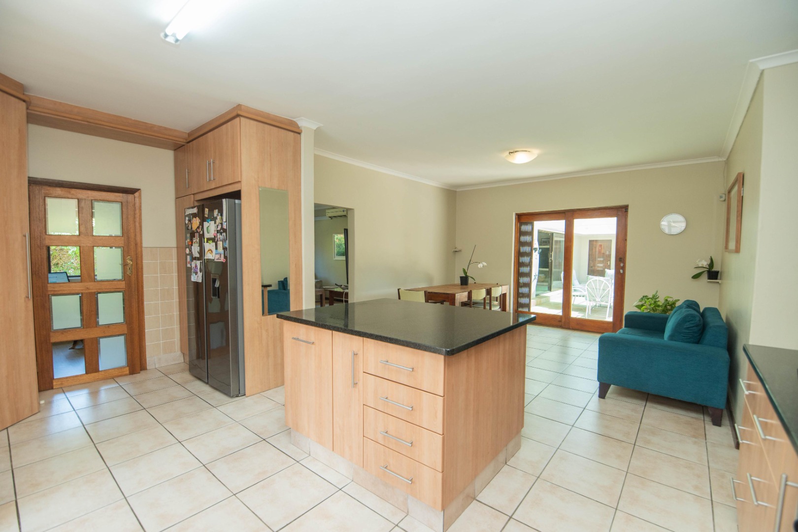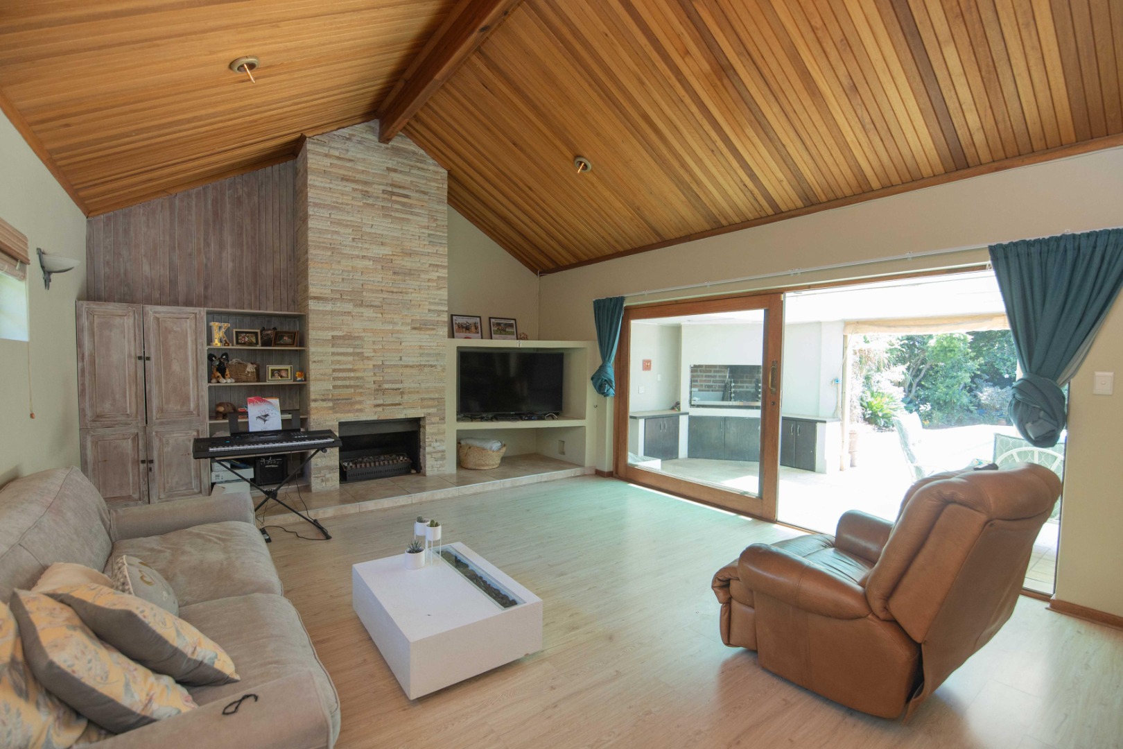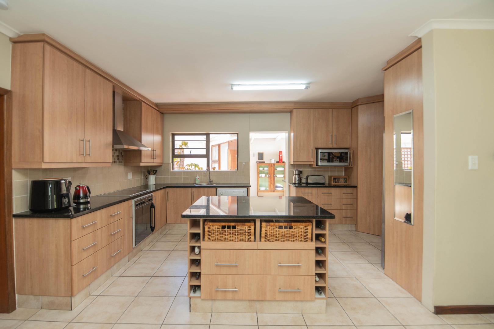 The heart of this home is the open-plan kitchen, dining, and lounge areas, flowing onto an undercover patio. With a built-in braai and weather-protection blinds, this is an all-season entertainment hub.
