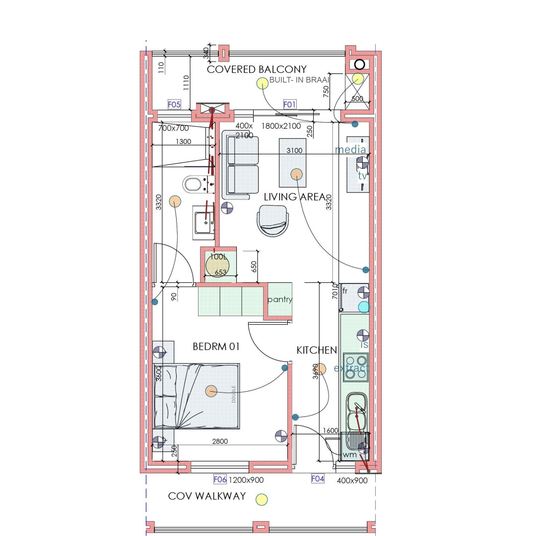 The open-plan layout creates a comfortable flow between the kitchen and living area, leading out to a covered balcony with built-in braai, ideal for relaxed everyday living. The bedroom is well-proportioned, complemented by a modern bathroom.