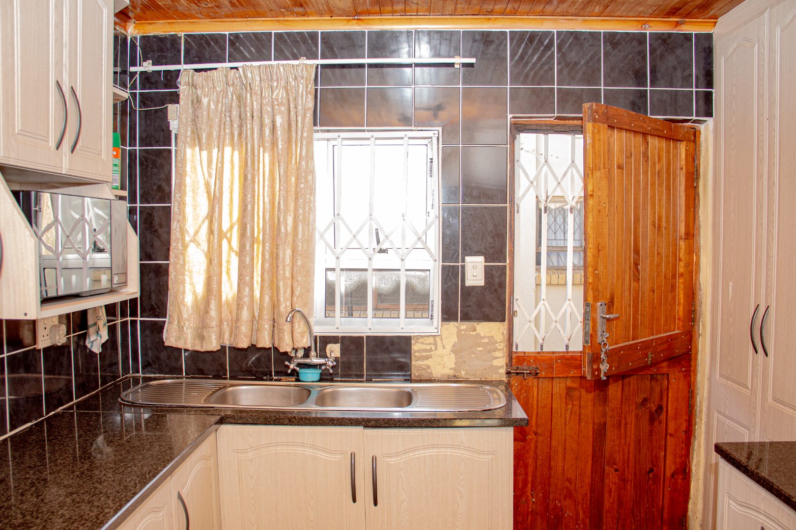 Security is a priority , with the property fully walled and fitted with secure aluminum windows throughout the main house.