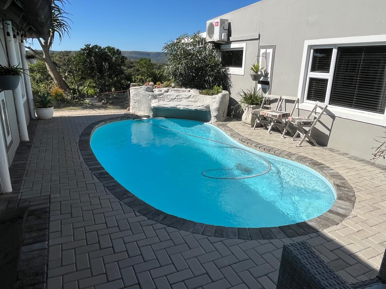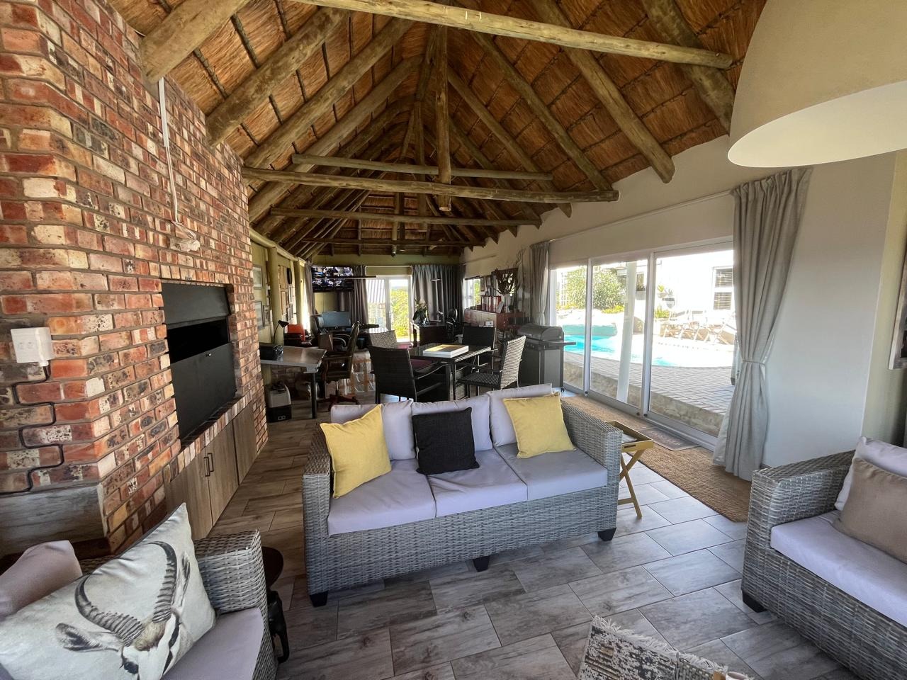 - Third House (380 m²): 4 bedrooms, 2 bathrooms, large kitchen, multiple living areas, thatched lapa with plunge pool, 15kVA inverter with 25 solar panels and 10 batteries.