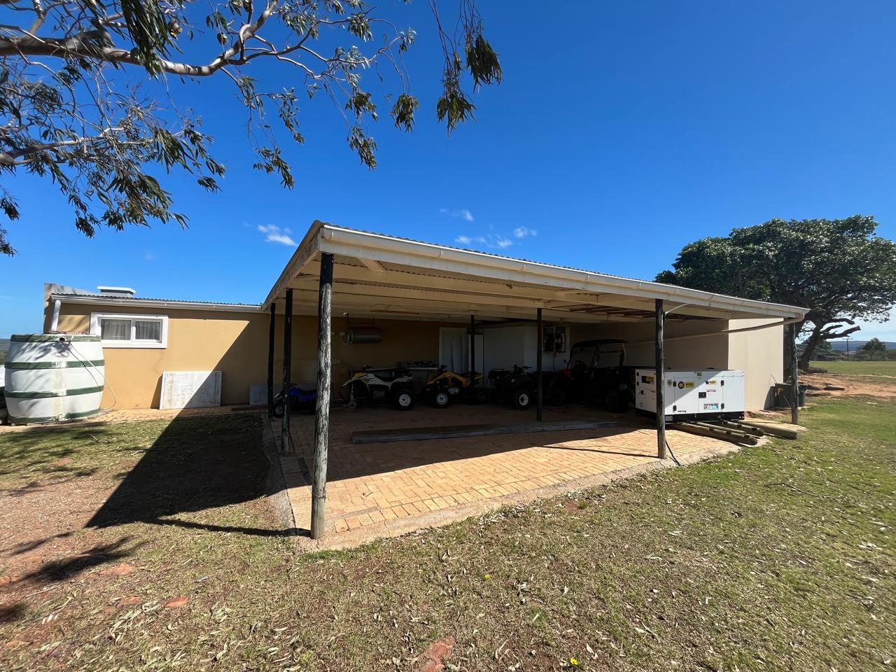 An exceptional 607.28-hectare game farm located 51 km north of Grahamstown, with 8 km of dirt road access (three motorized gates). The property features approximately 27 ha under irrigation (scheduled for 30 ha), a 200 m² lucerne shed, full electrified game fencing, and 25 ha of water rights from the Great Fish River (currently utilizing 18 ha). Water is solar-powered throughout via a 5.5kVA inverter and 24 panels.