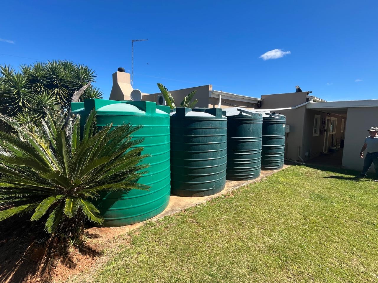 - Main House: 3 bedrooms (two en-suite), study, lounge, open-plan kitchen, cold room, 45,000L water storage, 18.5kVA inverter with 40 solar panels and 10 batteries, plus a 2-bedroom flat.