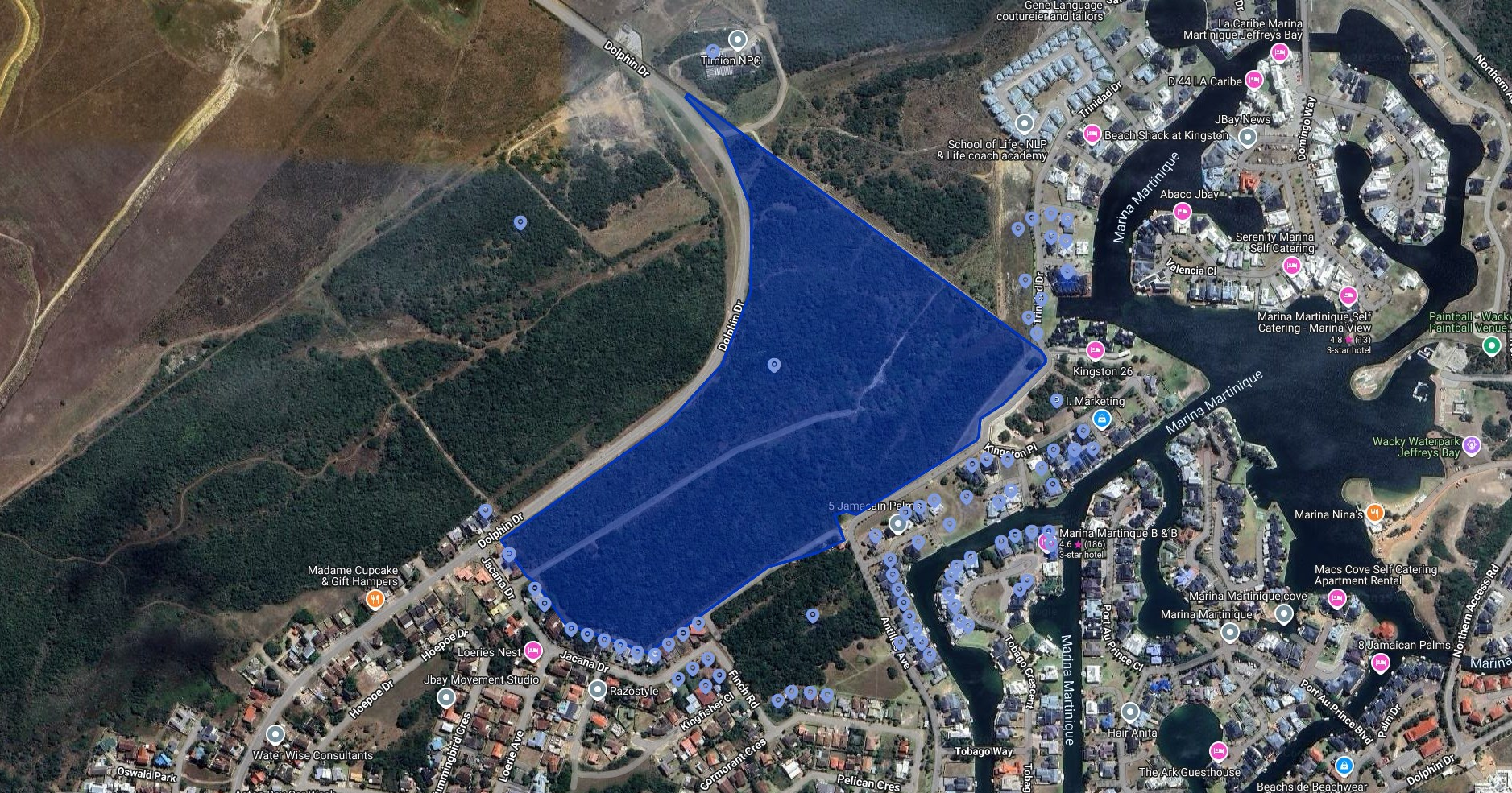 Positioned between the renowned Marina Martinique and the tranquil Seekoei River, this expansive 17-hectare parcel of prime coastal land offers an exceptional opportunity for visionary development. Just a short walk from the beach and minutes from the heart of Jeffreys Bay, the location combines scenic beauty with unbeatable convenience.