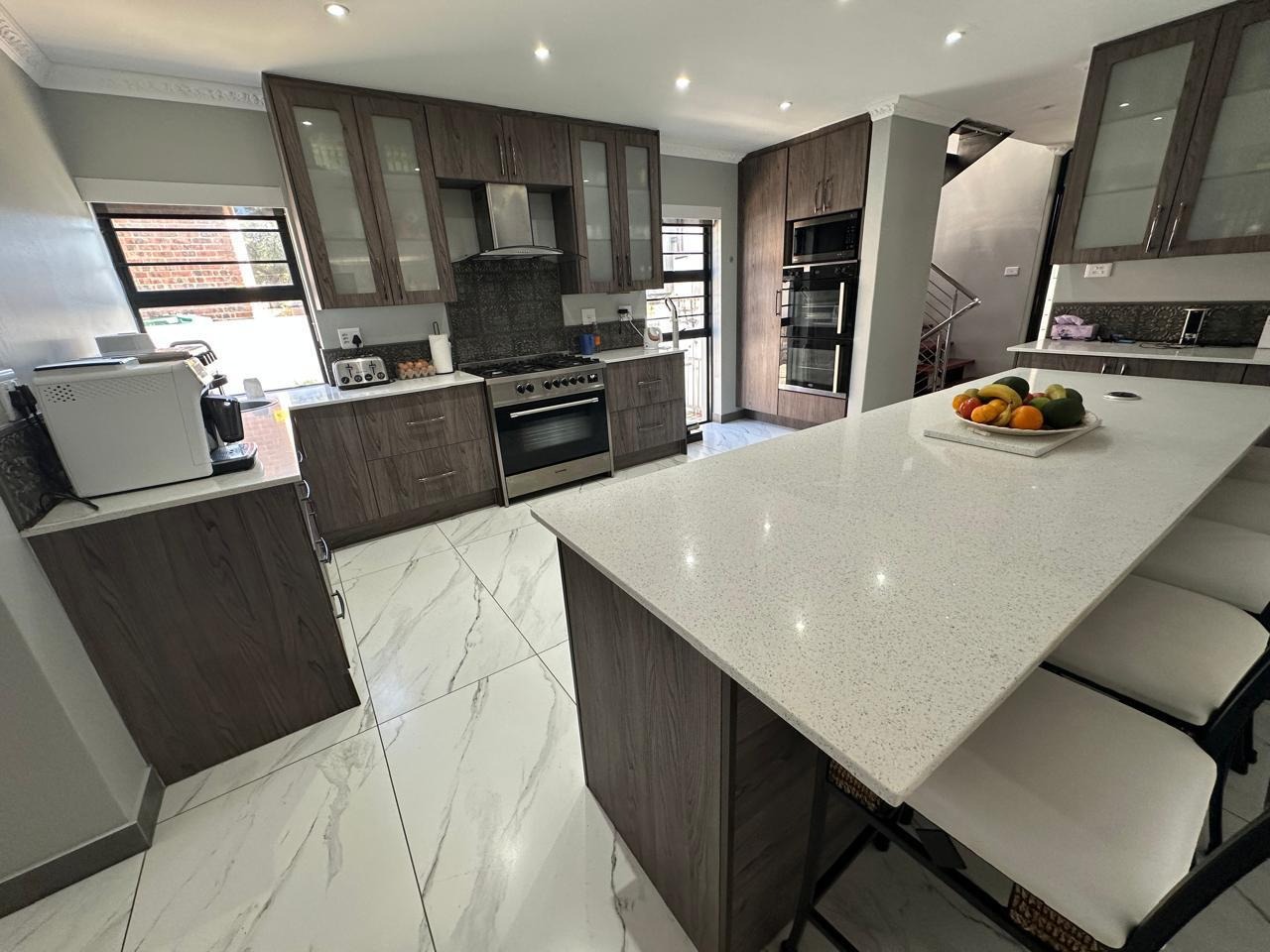 Positioned in sought-after Noorsekloof, this modern double-storey home offers space, quality, and comfort in every detail. The property features four spacious bedrooms, three and a half bathrooms, and a separate guest toilet. The main bedroom opens directly onto the pool and entertainment area, creating a seamless flow between indoor and outdoor living.