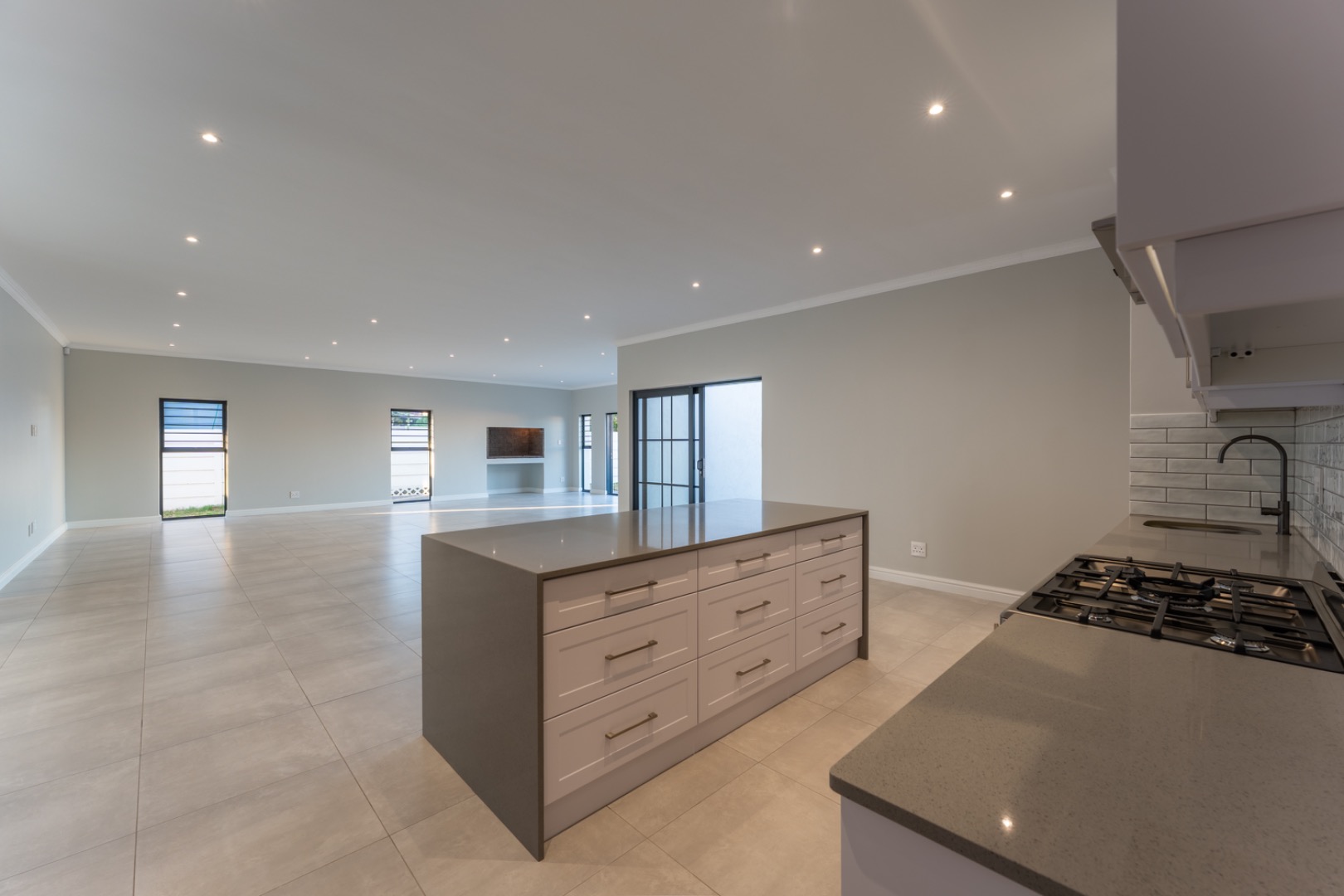 This brand-new 261m² home on a spacious 687m² stand offers sleek design, high-end finishes, and a seamless open-plan layout that brings together the kitchen, lounge, dining, and braai area into one light-filled, inviting space - perfect for entertaining or unwinding in style. The designer kitchen, complete with a separate scullery and premium Smeg gas stove, is a true standout.
