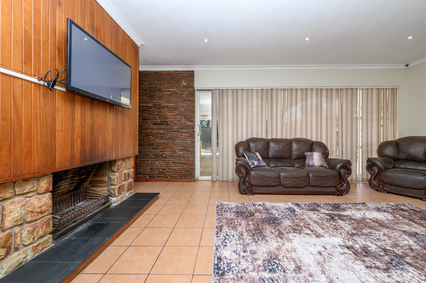 A separate TV room offers an ideal retreat for children or teens, giving adults a private space to unwind. The heart of the home, the spacious kitchen with separate scullery, opens out to a neatly paved rear area—both functional and family-friendly.