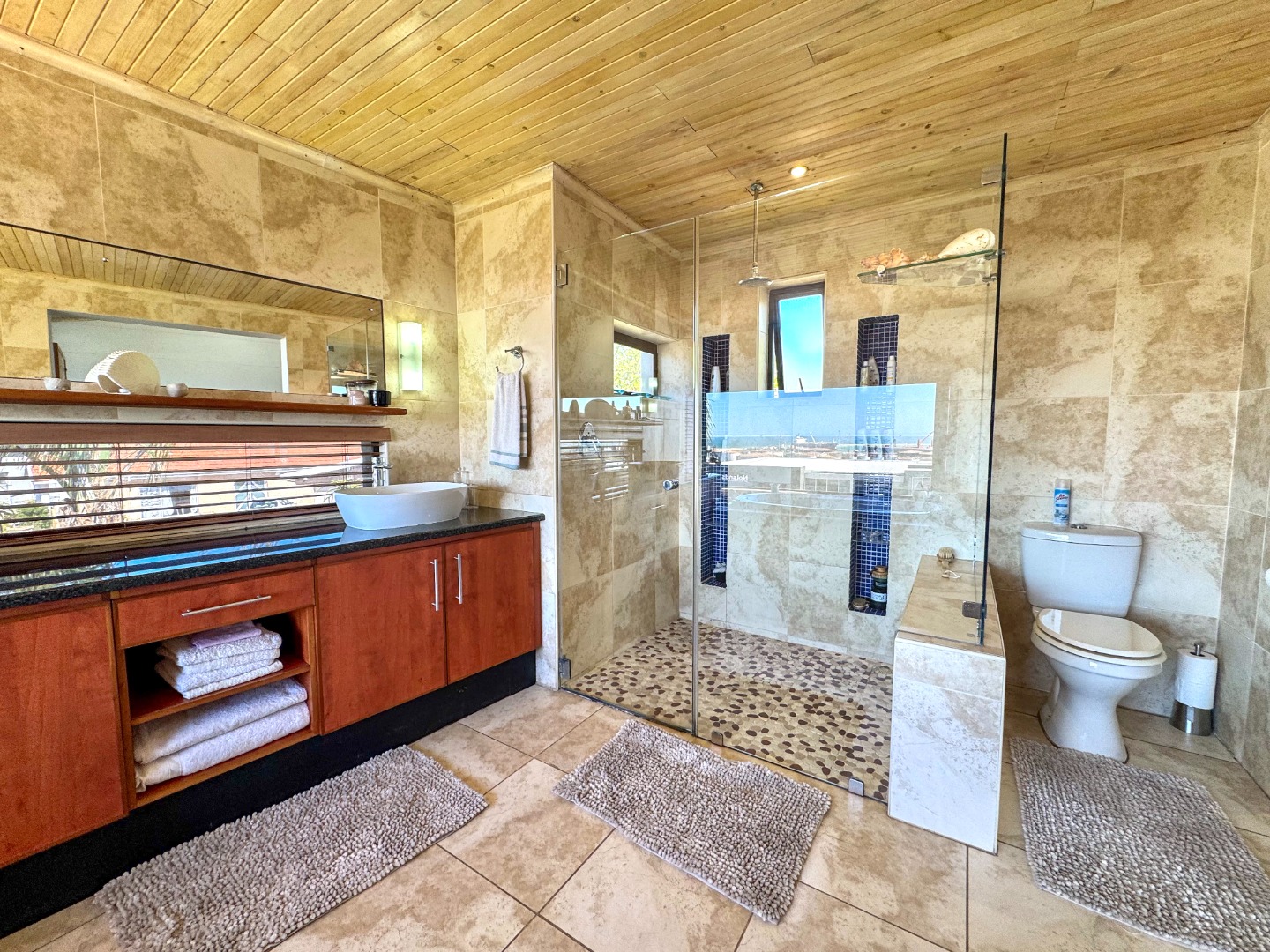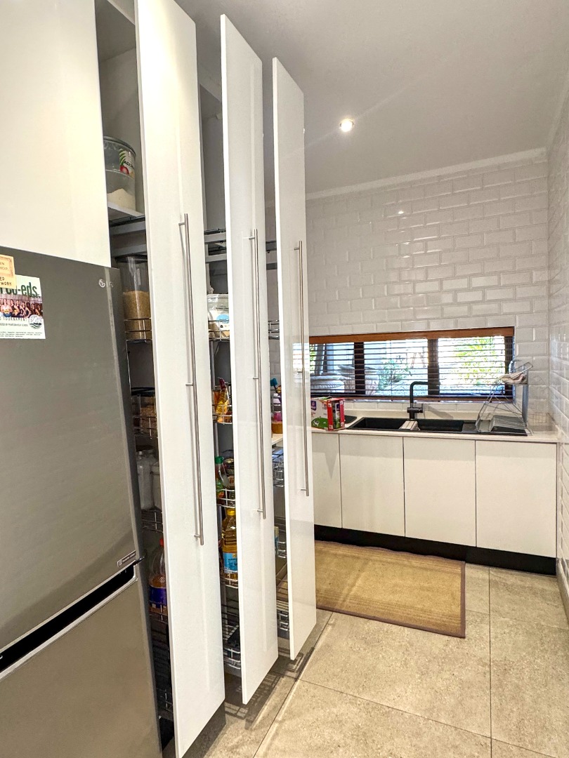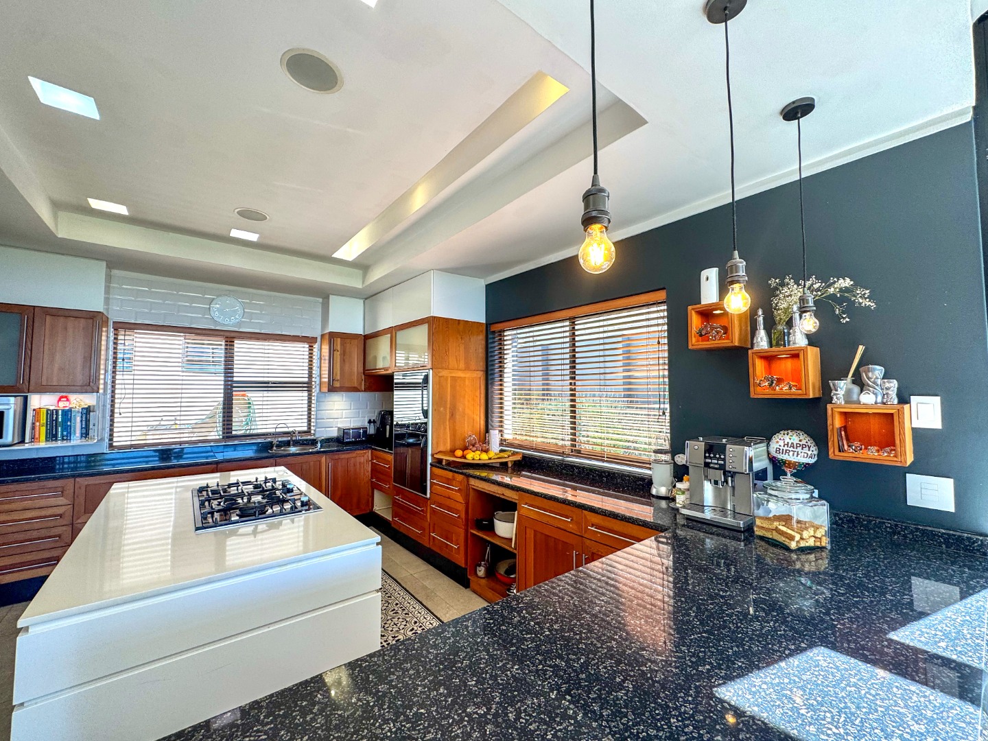 This home is built for modern living, featuring a 10kVA inverter with 10 solar panels, fibre internet, built-in speakers, and a double garage with remote access. The chef’s kitchen is a showstopper solid wood cabinetry, granite countertops, gas hob, double eye-level oven, and a reverse osmosis water filtration system.