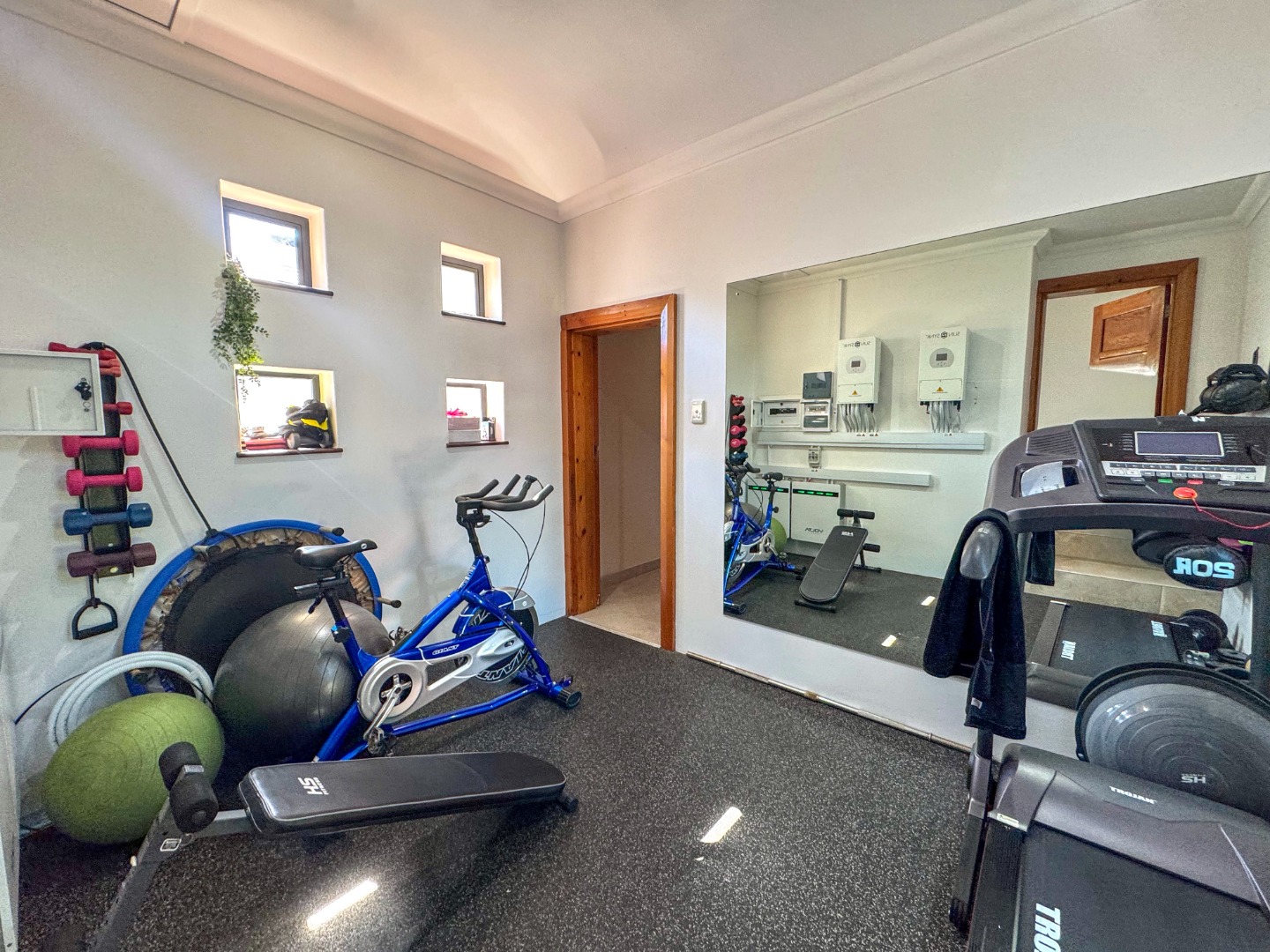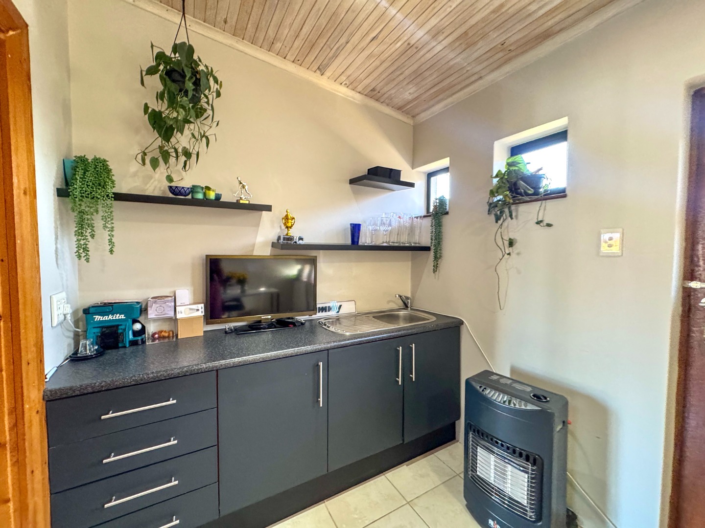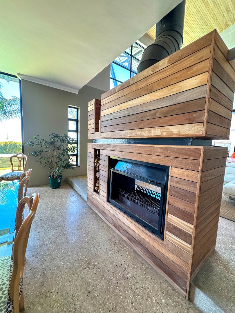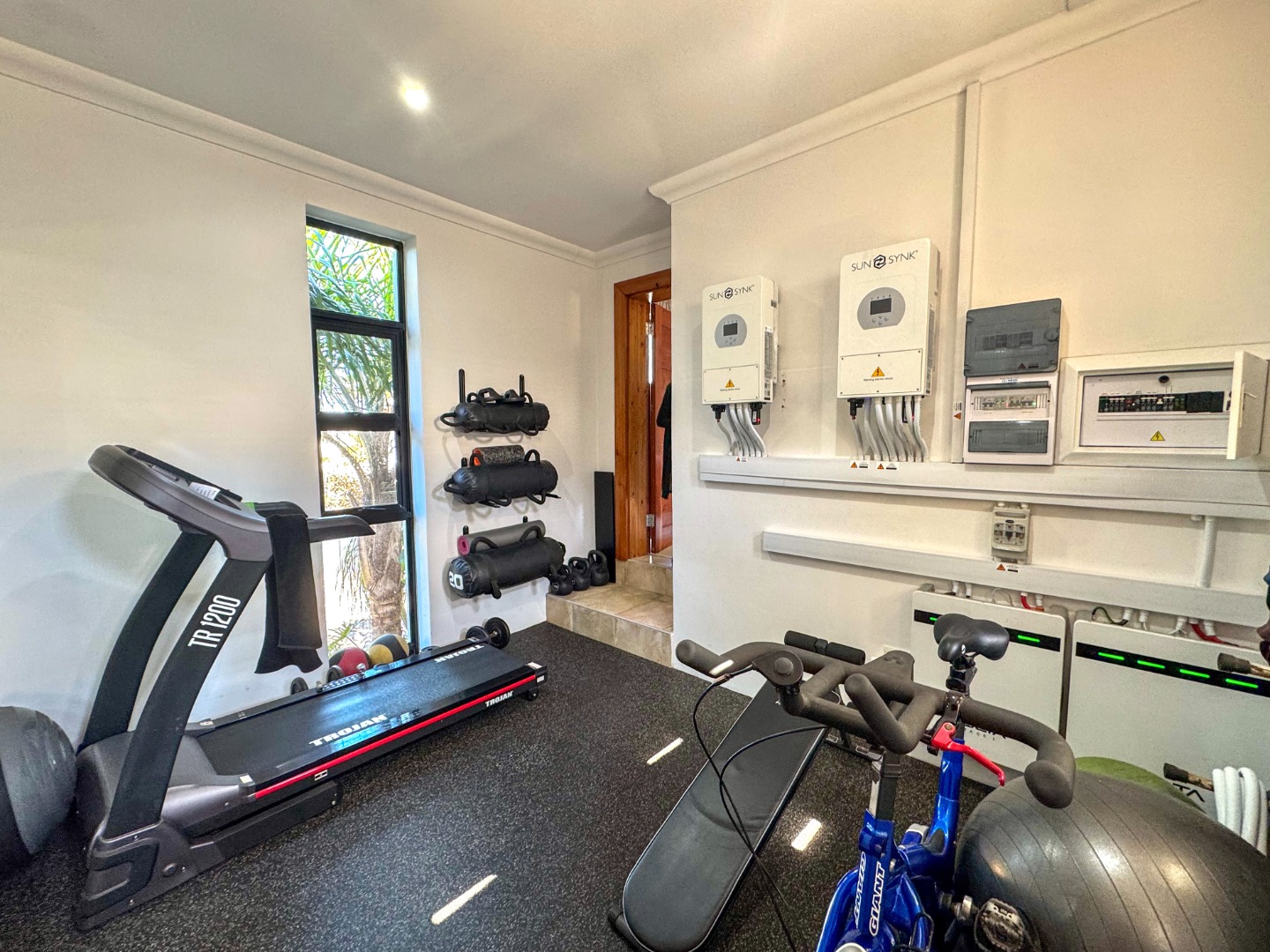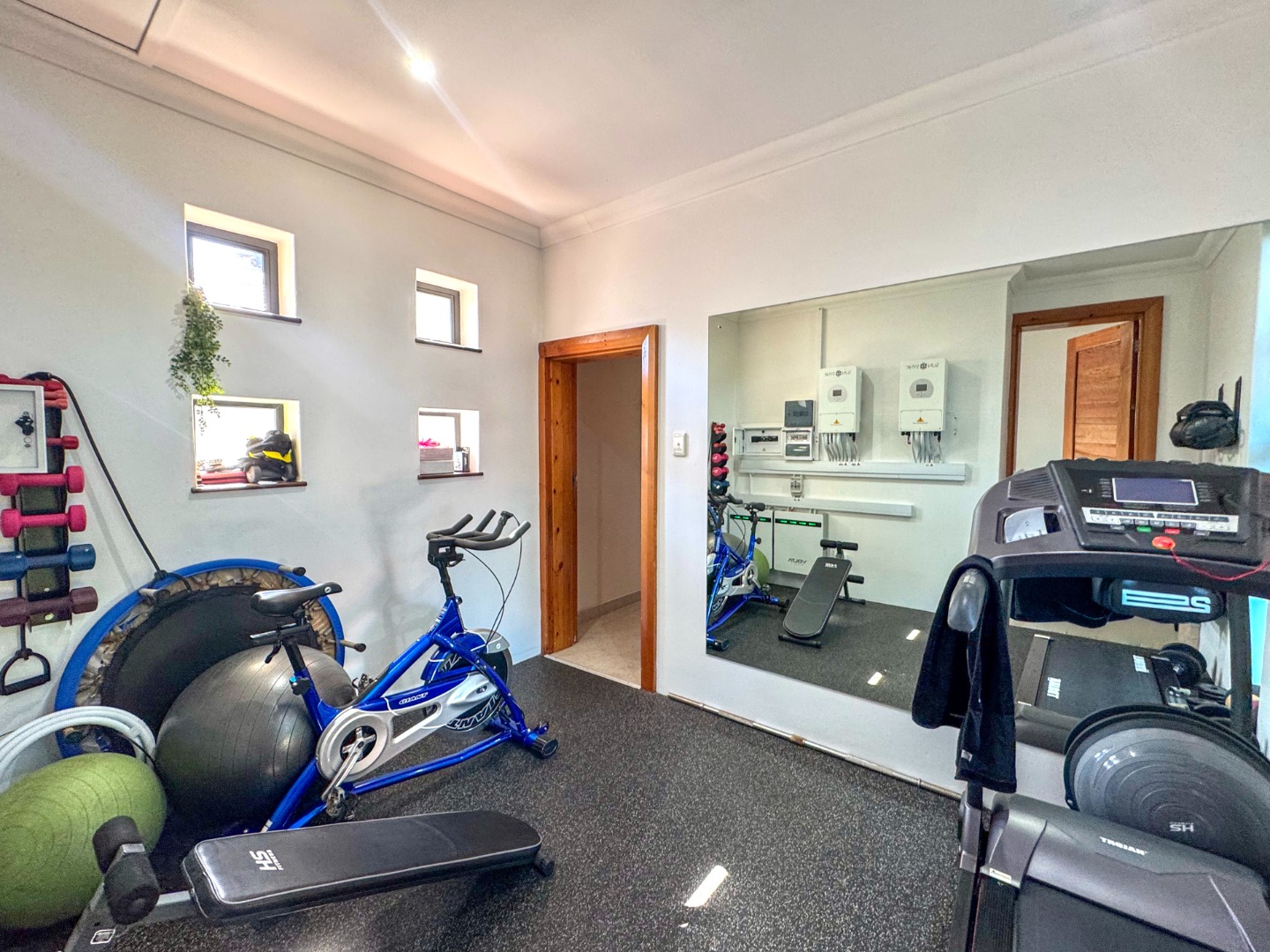 Security is top-tier with electric fencing, CCTV, exterior beams, and a full alarm system. Extras include a wood burning fireplace, synthetic grass, a putting green, two 5,000L rainwater tanks plumbed into the home, and a charming vegetable garden.