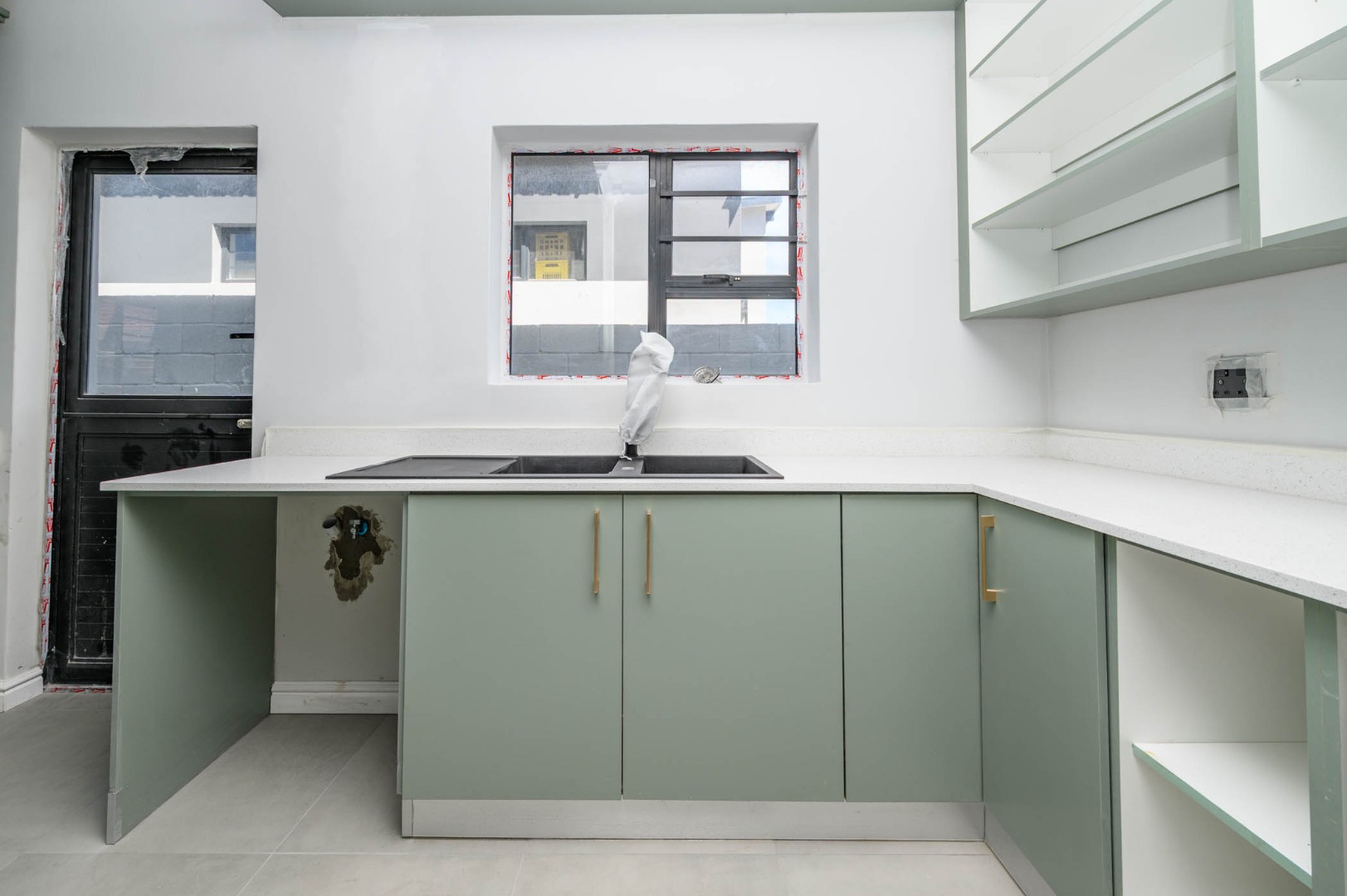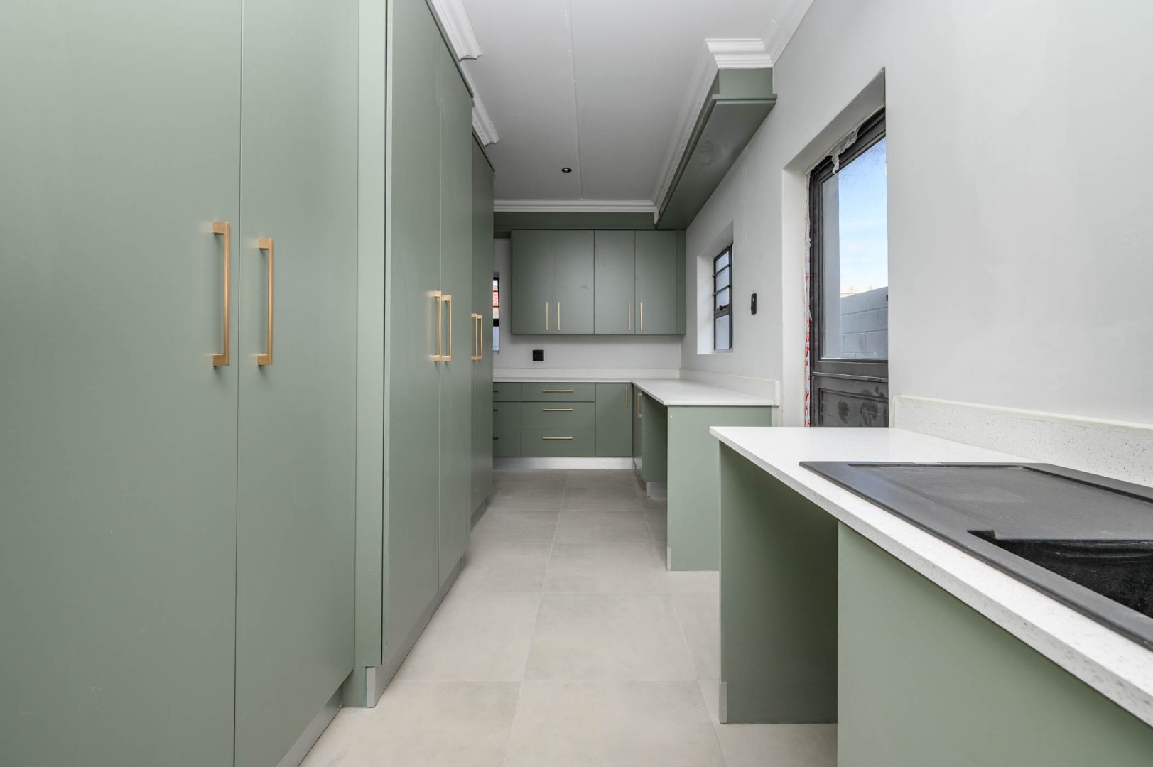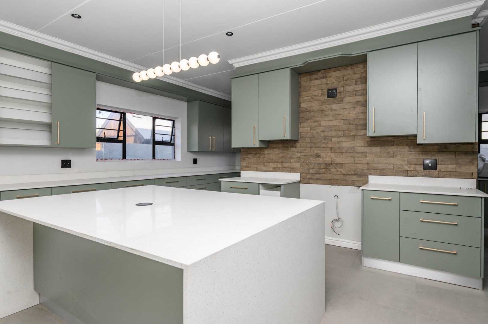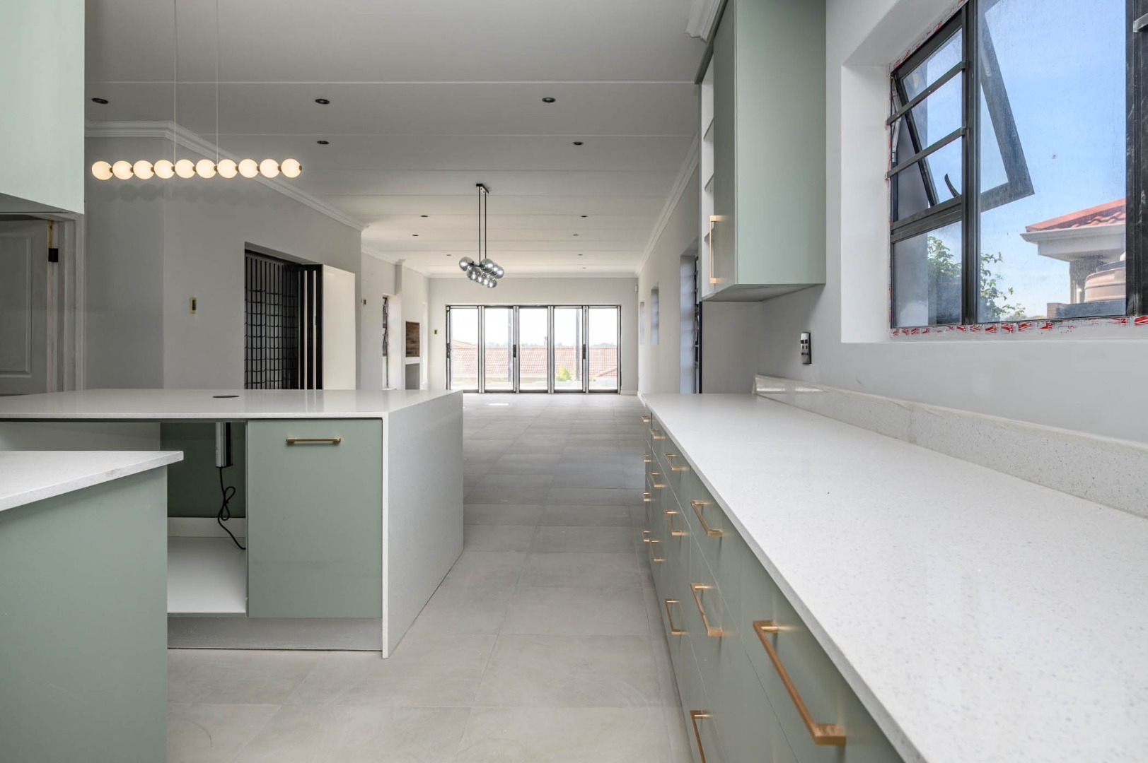 Generous open plan living area, with built-in braai, covered patio, lounge, dining room and stylish kitchen with separate scullery. Stacking doors lead out on to the covered patio.
