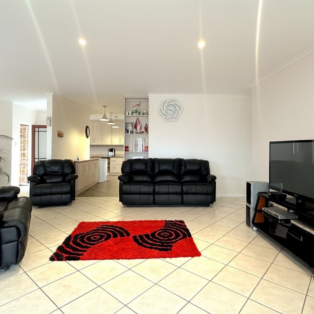 This spacious and well-kept home offers three bedrooms and two bathrooms, designed for comfort and easy living. The open-plan layout flows seamlessly between the modern kitchen with scullery, dining area, and two inviting lounges — perfect for family gatherings and entertaining.