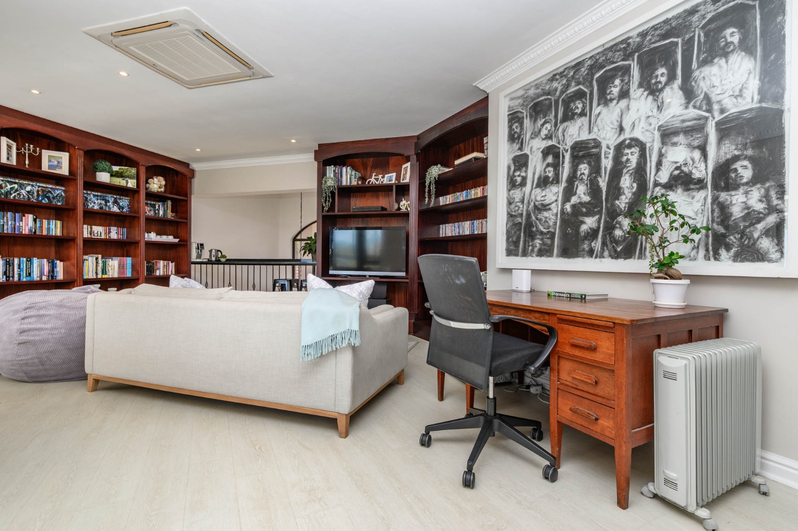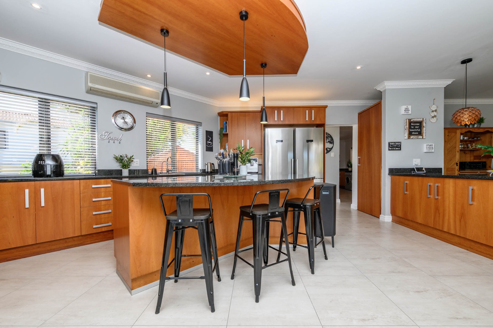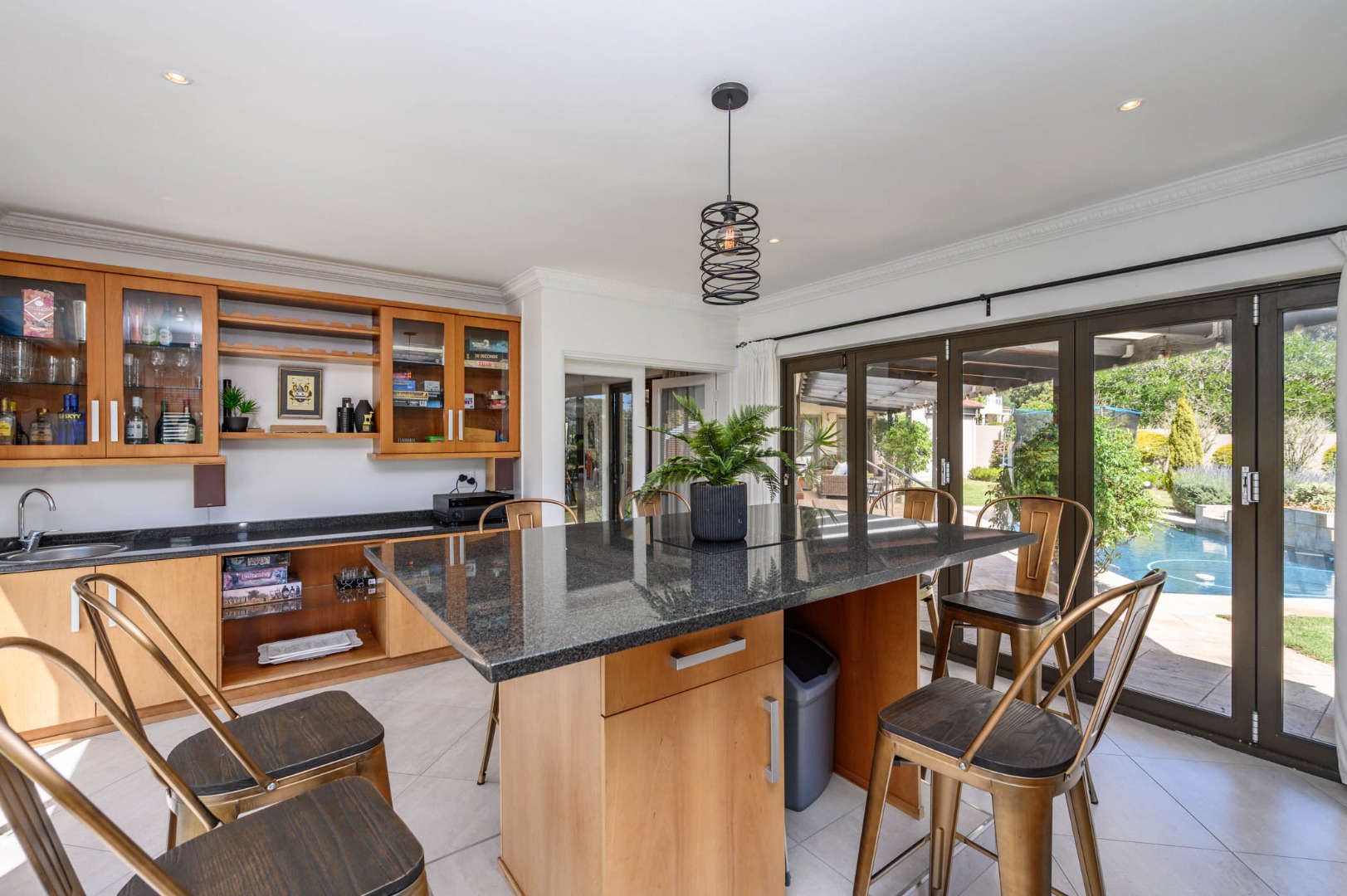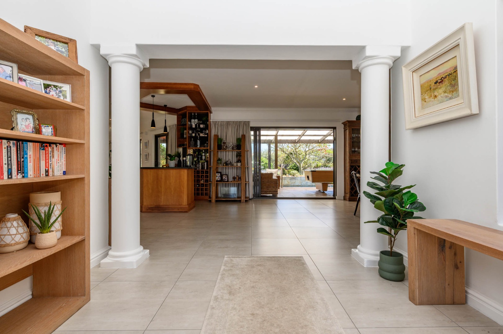 A welcoming entrance hall leads to multiple living areas, including a lounge with a built-in bar, dining room, and family room – designed for both relaxation and entertaining. The kitchen with scullery ensures functionality and ease for everyday living.