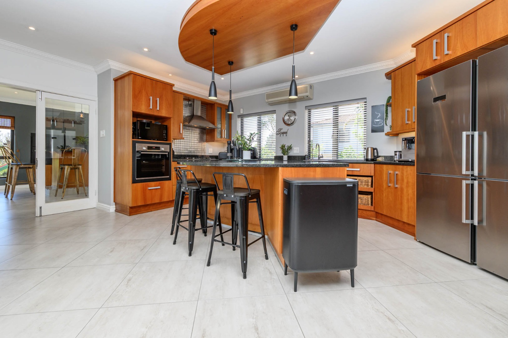 With five bedrooms and five bathrooms, this home offers generous space for family and guests alike. Additional features include a double garage and the peace of mind that comes with living in a secure estate surrounded by natural wildlife.