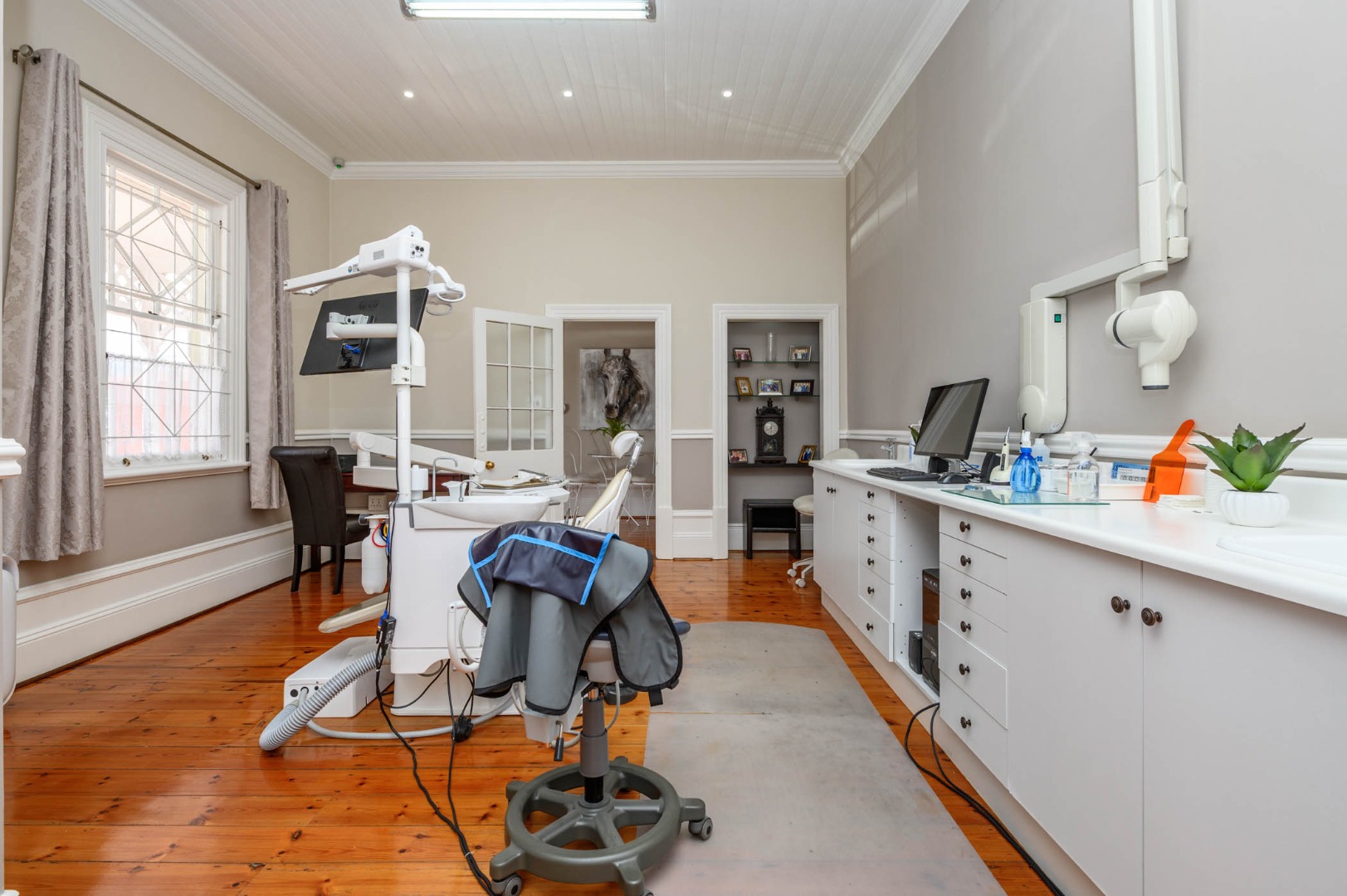 The interior features a welcoming reception and waiting area, two spacious offices (perfect for consultation or treatment rooms), and two smaller offices ideal for administrative or auxiliary use. A fully equipped kitchen and lunch area ensures staff comfort, while two bathrooms provide added convenience for both clients and staff.