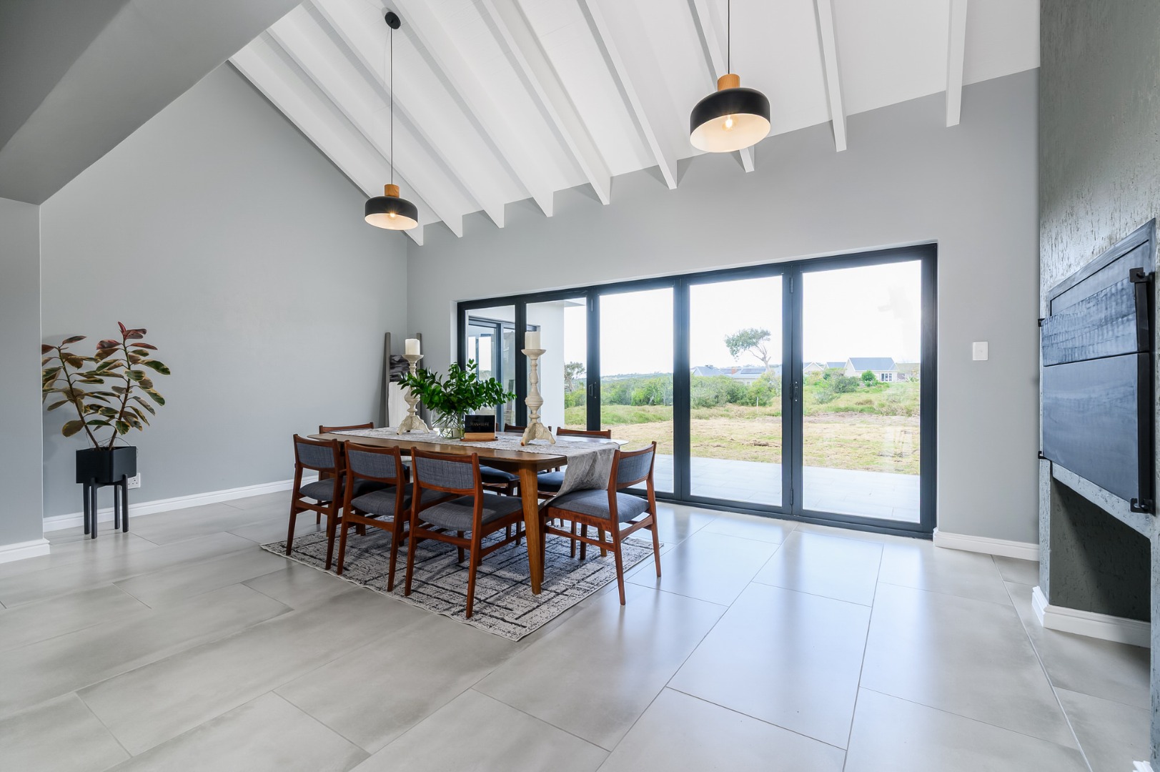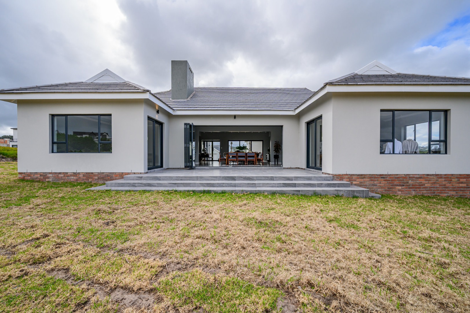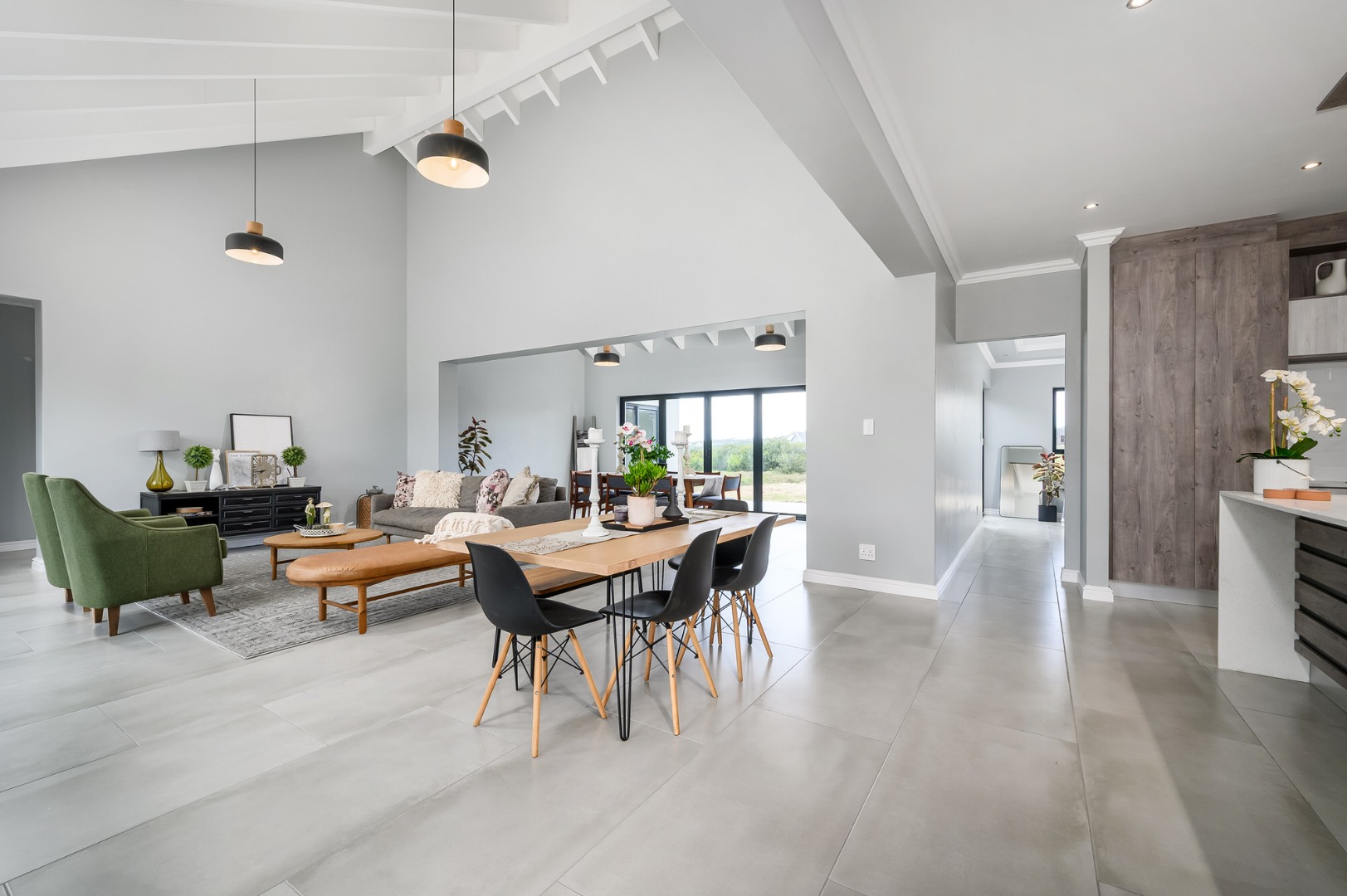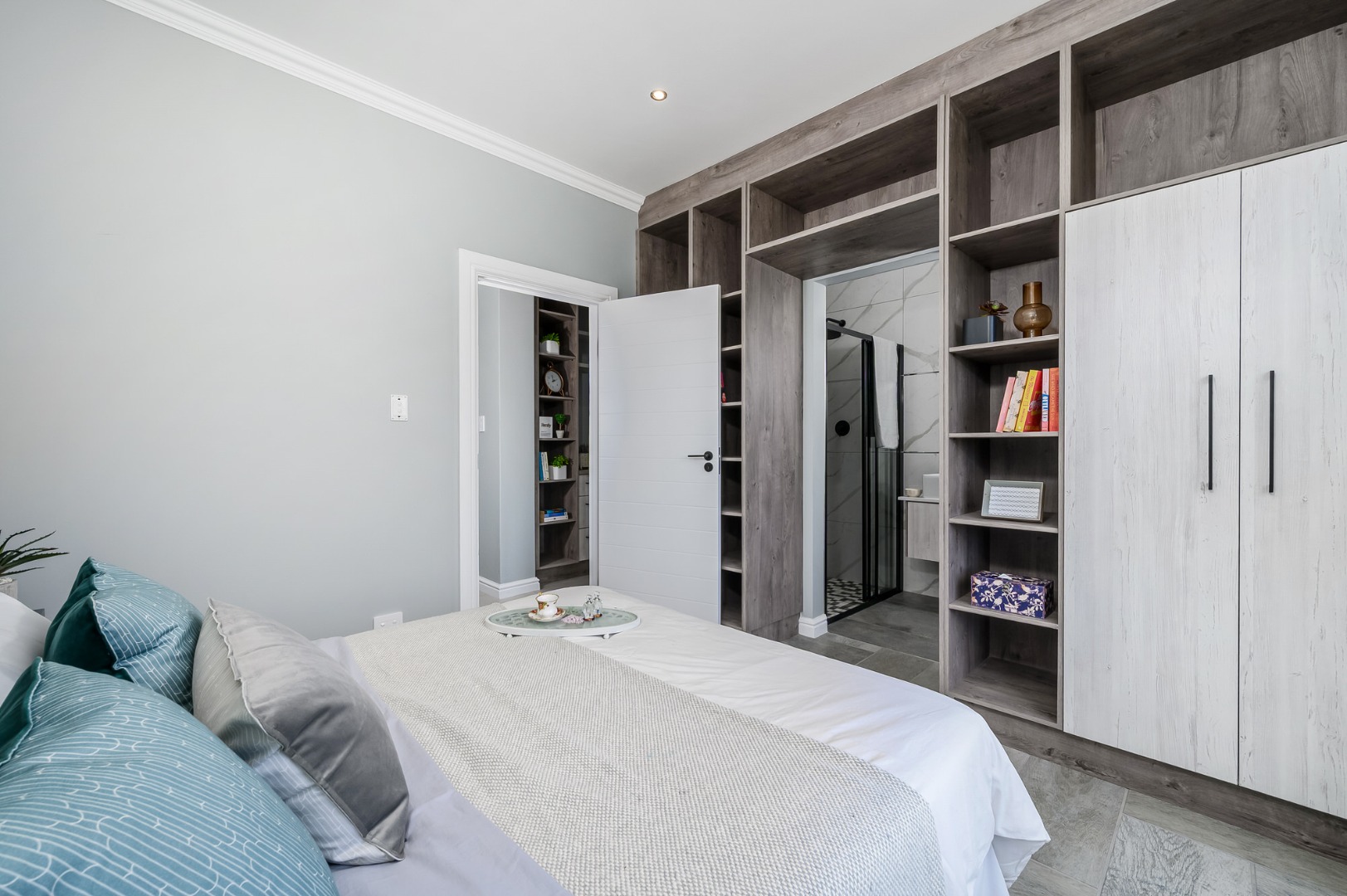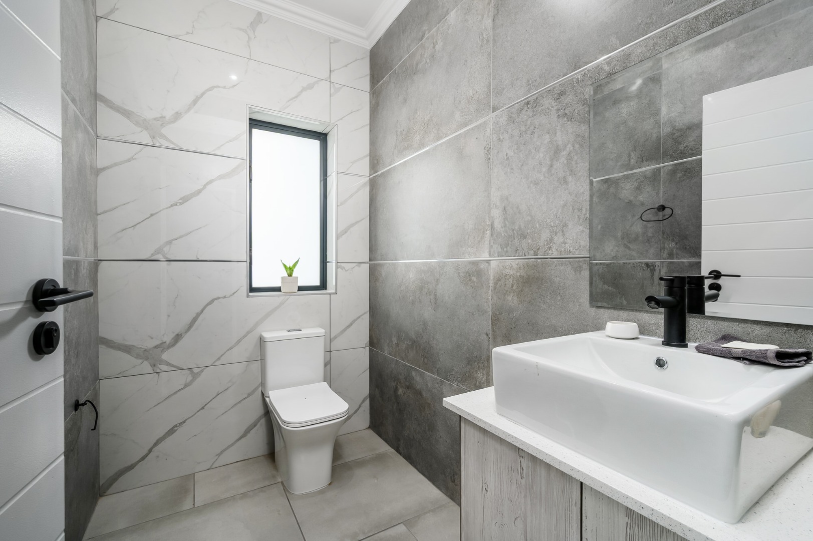 This immaculate residence boasts four spacious bedrooms, three stylish bathrooms (including two en-suites), and a convenient guest toilet. The heart of the home offers double-volume living areas filled with natural light, creating a warm and inviting atmosphere. An entertainment room with built-in braai and stacking doors seamlessly flows out to the rear garden and patio, perfect for hosting friends and family.