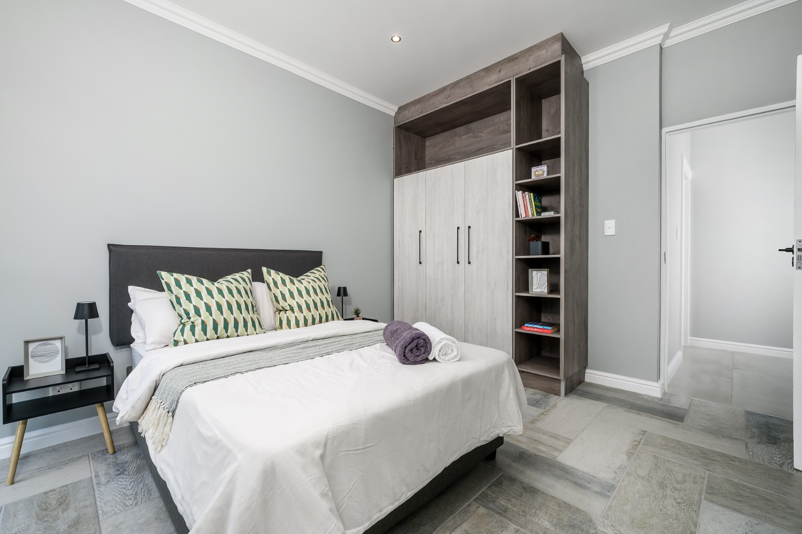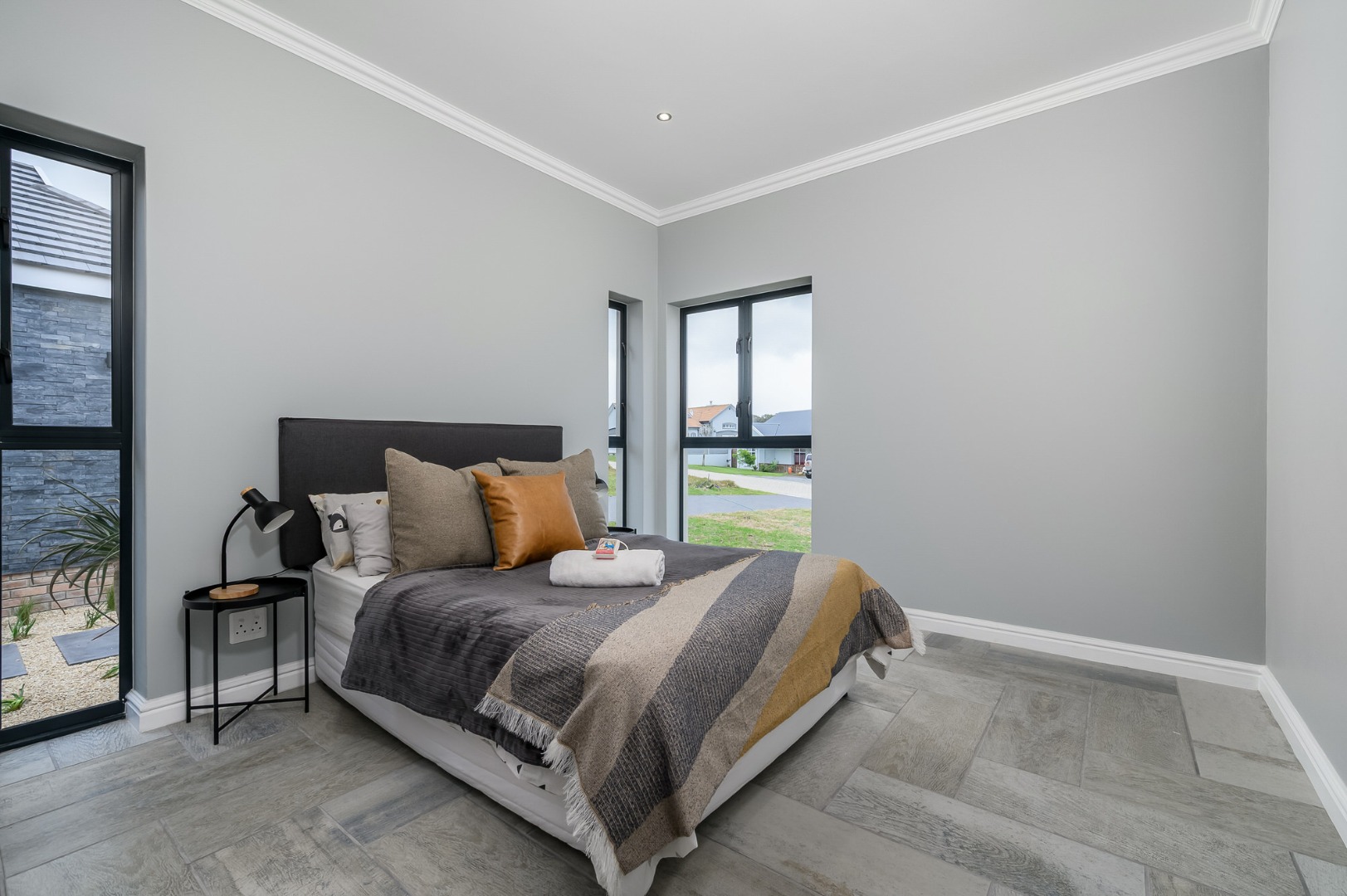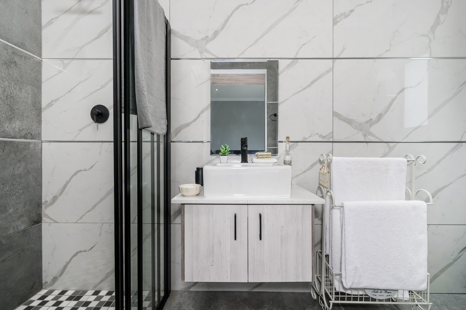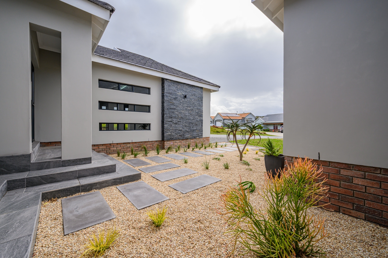 This immaculate residence boasts four spacious bedrooms, three stylish bathrooms (including two en-suites), and a convenient guest toilet. The heart of the home offers double-volume living areas filled with natural light, creating a warm and inviting atmosphere. An entertainment room with built-in braai and stacking doors seamlessly flows out to the rear garden and patio, perfect for hosting friends and family.