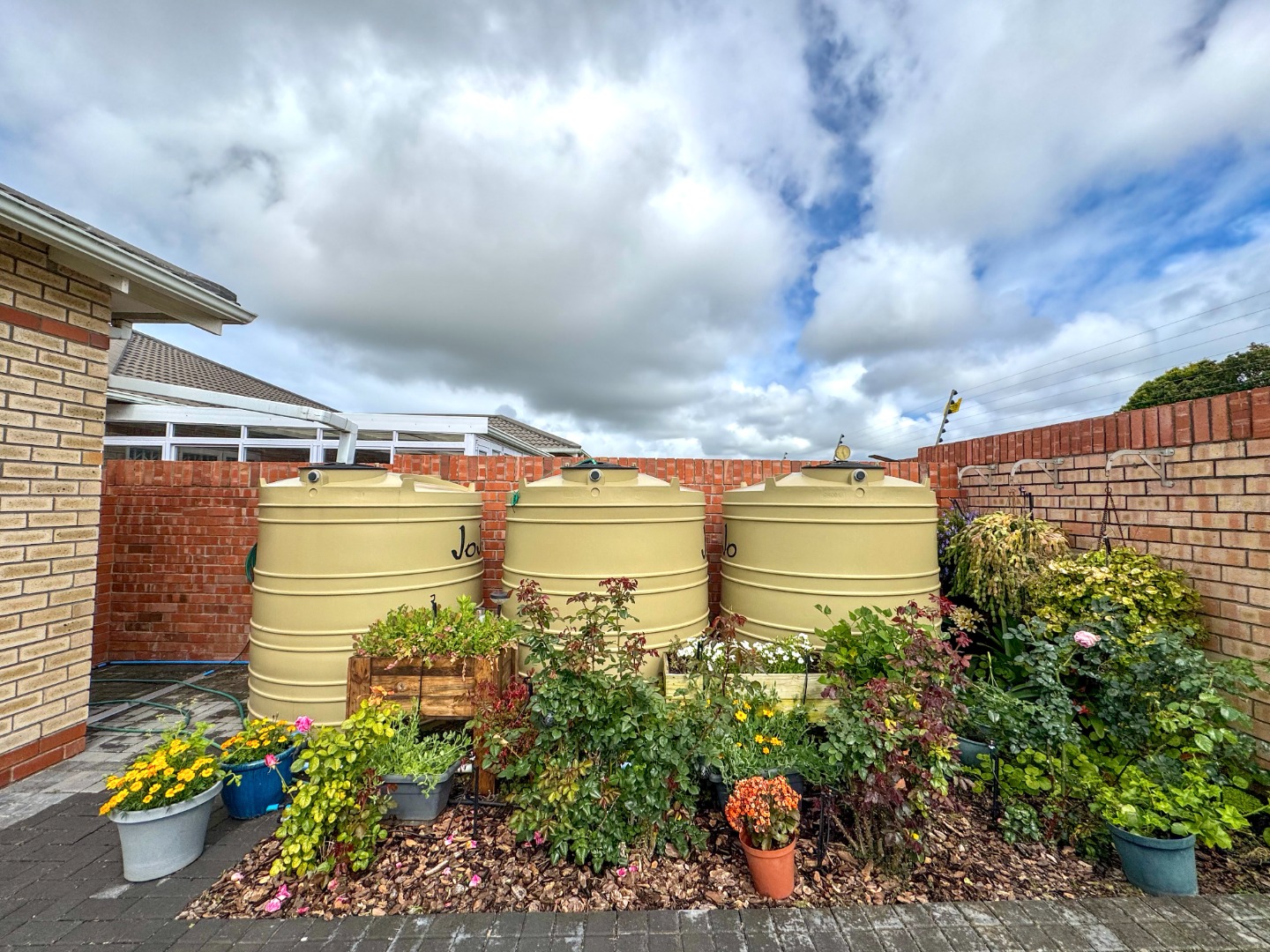 Outdoor Living – A beautifully maintained garden enhanced with a water tank and solar system, perfect for eco-friendly, sustainable living.