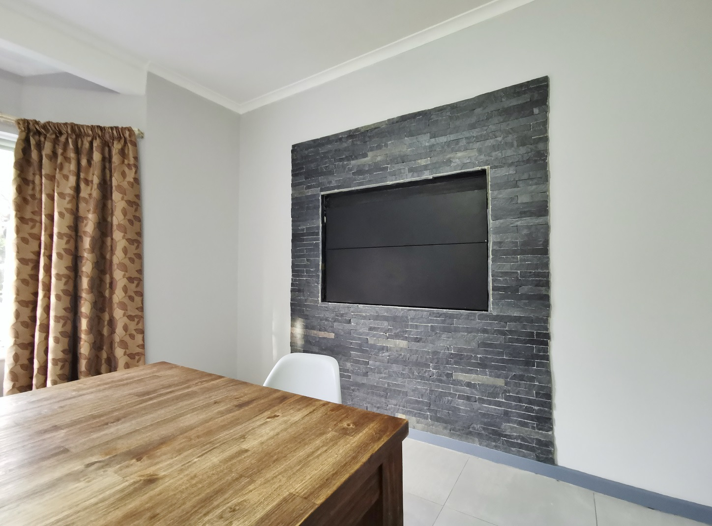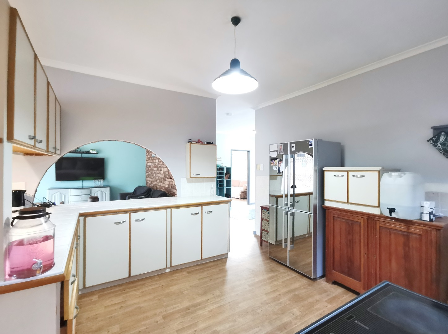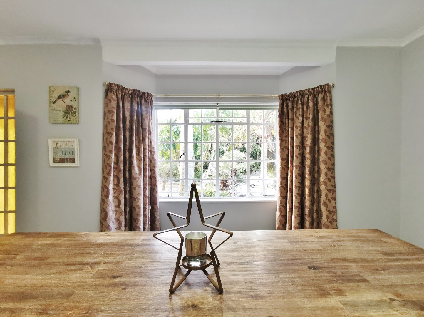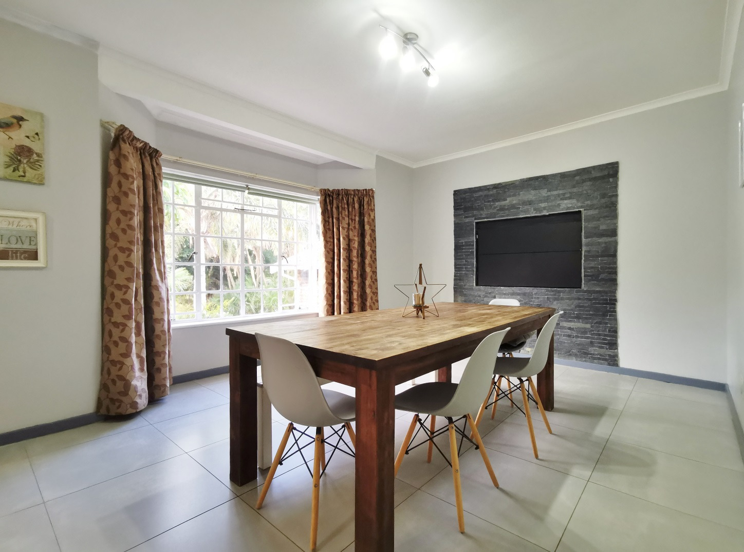 The dining area features charming bay windows and a built-in braai with a feature wall, creating a warm and inviting space ideal for year-round hosting and gatherings. Adjacent to the dining area is the formal lounge, also boasting sunny bay windows, offering a quiet retreat or an additional entertaining space with an abundance of natural light.
