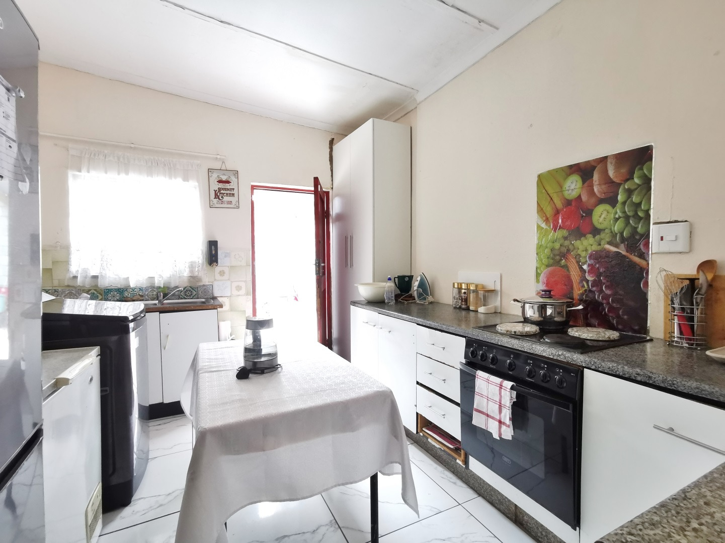 The enclosed backyard includes an outside toilet connection, making it suitable for future extensions or as a utility area with washing line. Security features include CCTV coverage at both the front and rear of the home for added peace of mind. Situated close to local schools and shops, this home presents an excellent opportunity for first-time buyers or anyone seeking a well-located property with solid potential.