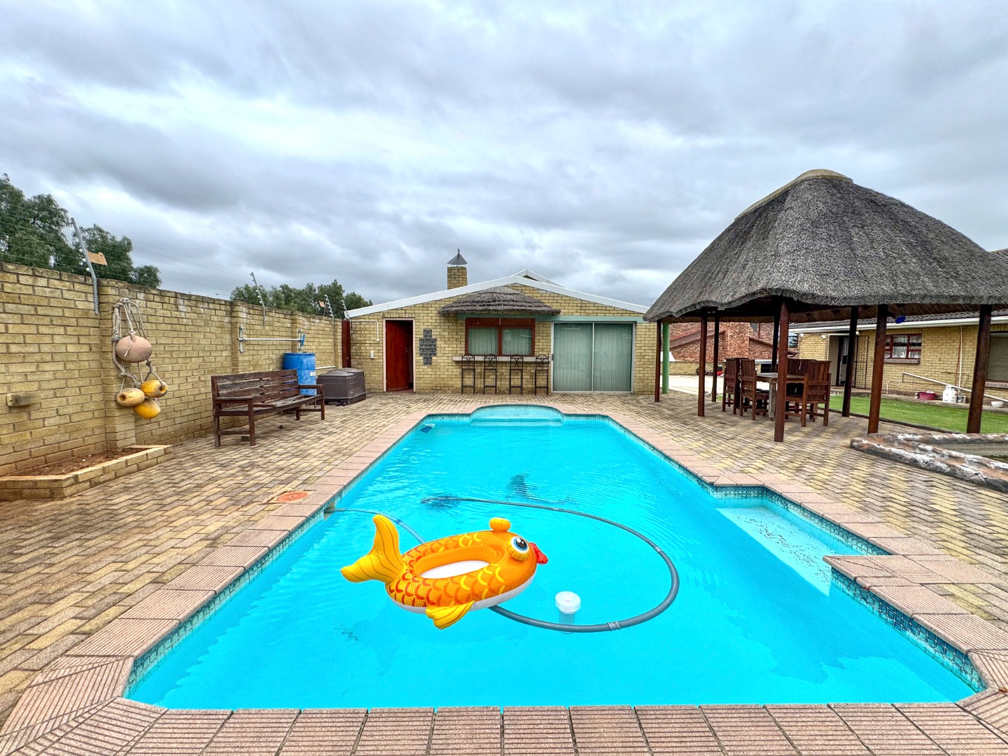 Outdoor living is well catered for with a large, manicured garden and a swimming pool, perfect for relaxation and entertaining. A lapa offers additional outdoor leisure space.