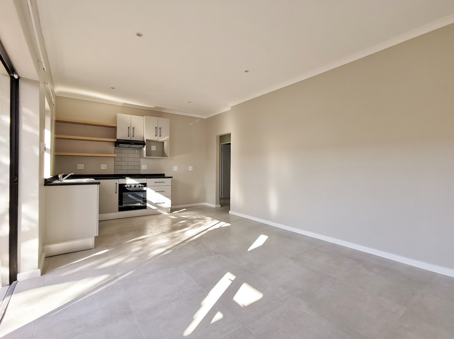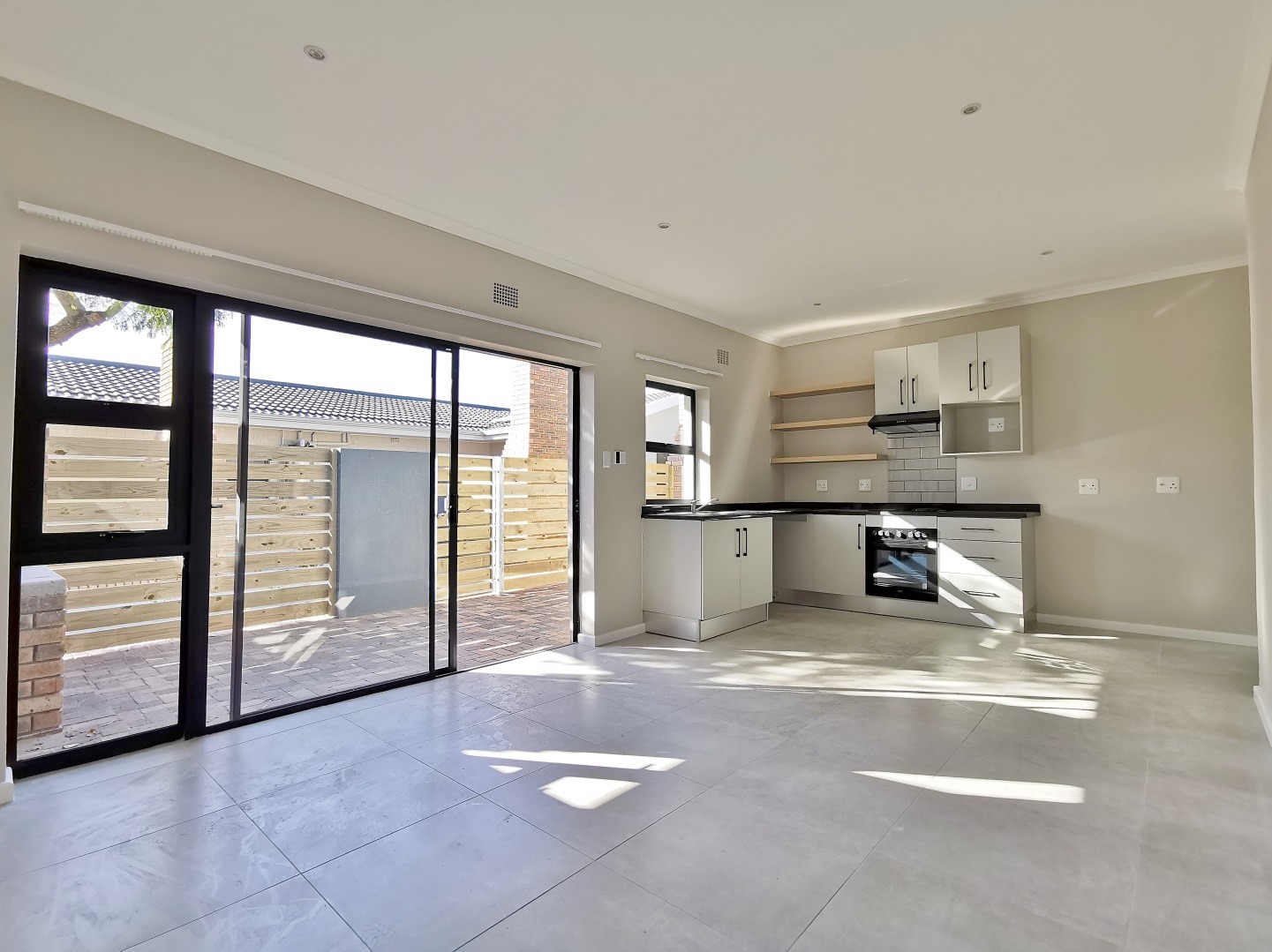 * Open plan living area flowing onto the fitted kitchen