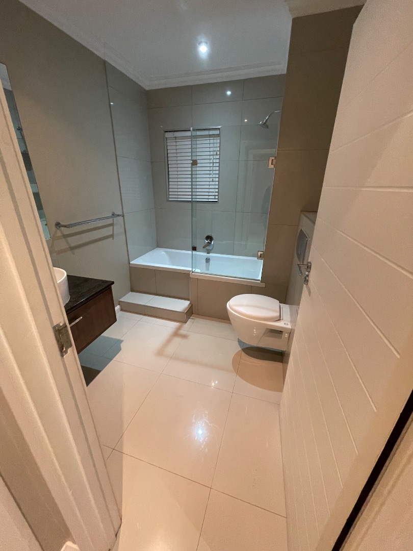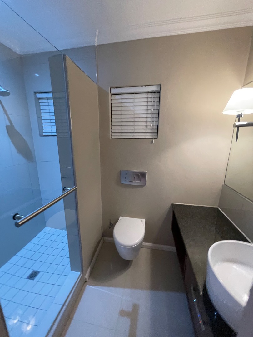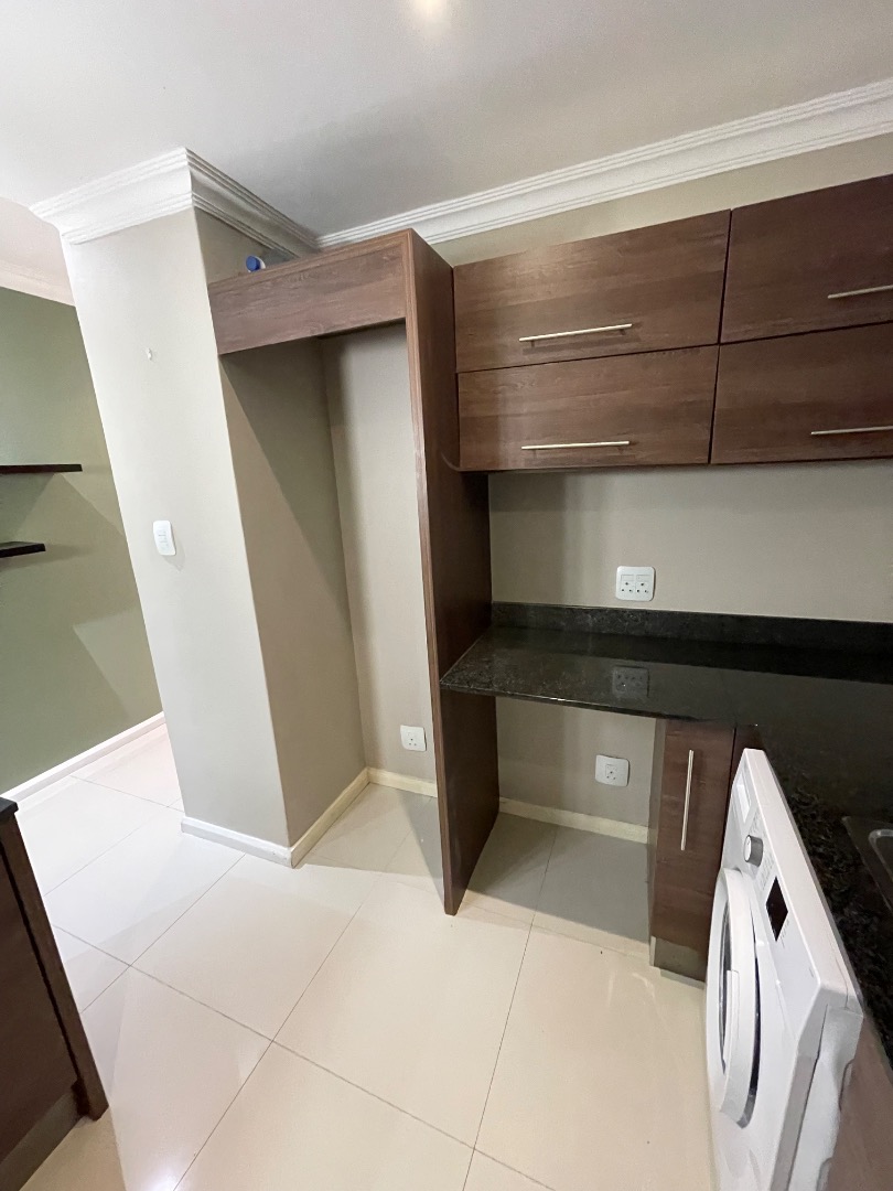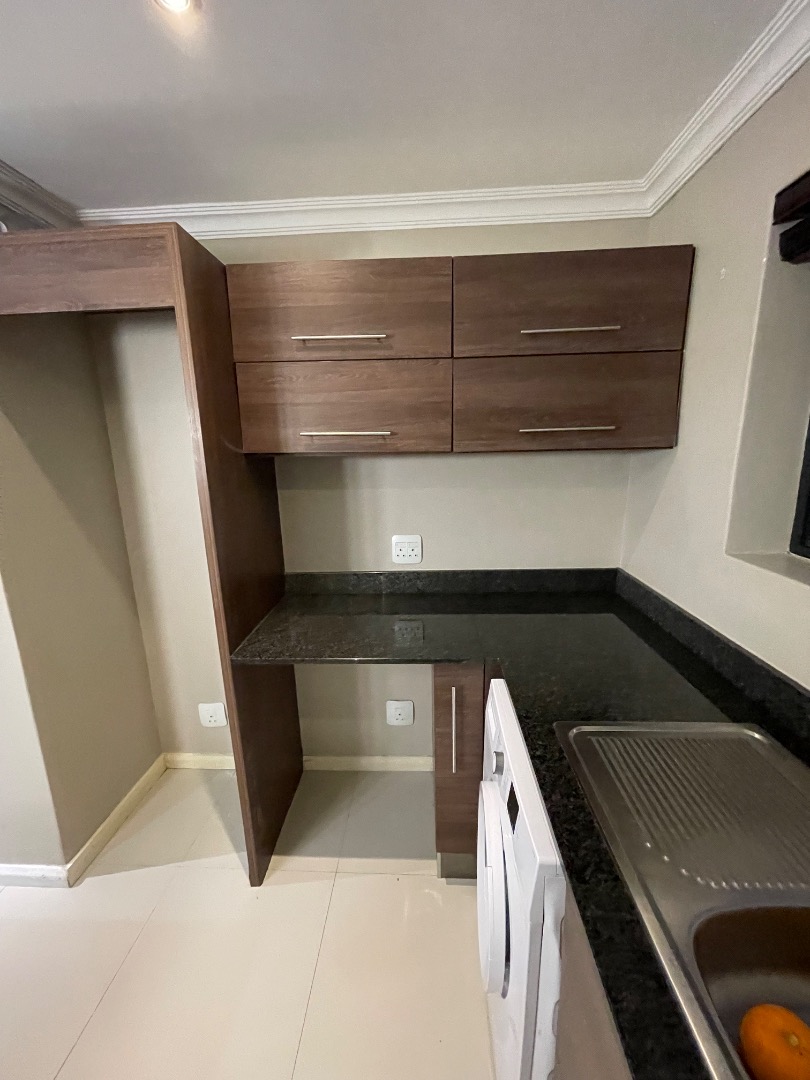 This upmarket 2 bedroom townhouse is ideal for a business executive, newly weds or a young couple. Located walking distance from Virgin Active Gym and the Garden Shopping Center with lots of convenient shops from eatery to chemist. This unit features: 1 undercover parking and another open parking with lots of visitor parkings in the complex, 24/7 Atlas alarm system fitted with armed response and lots of cupboards for storage space.