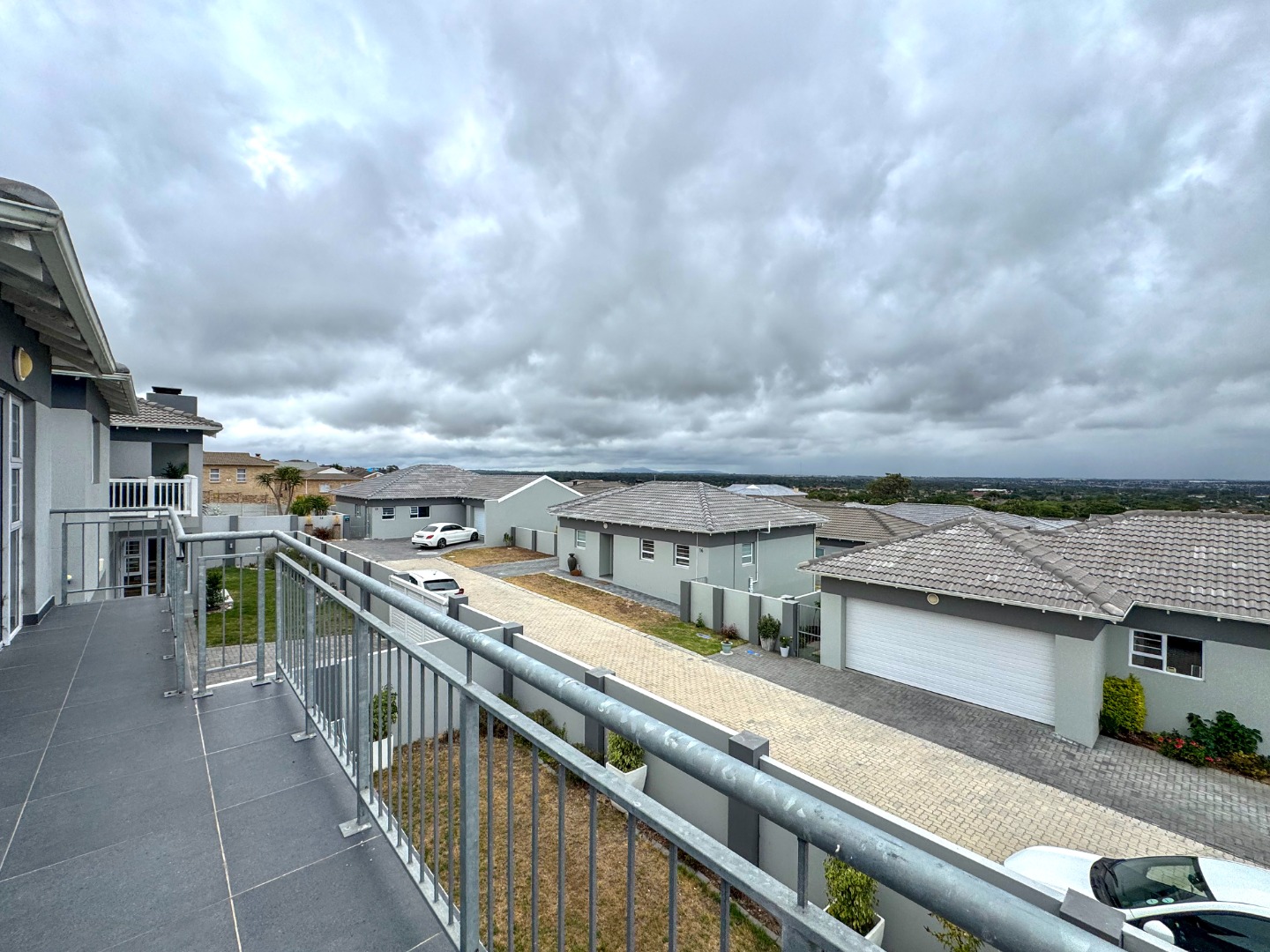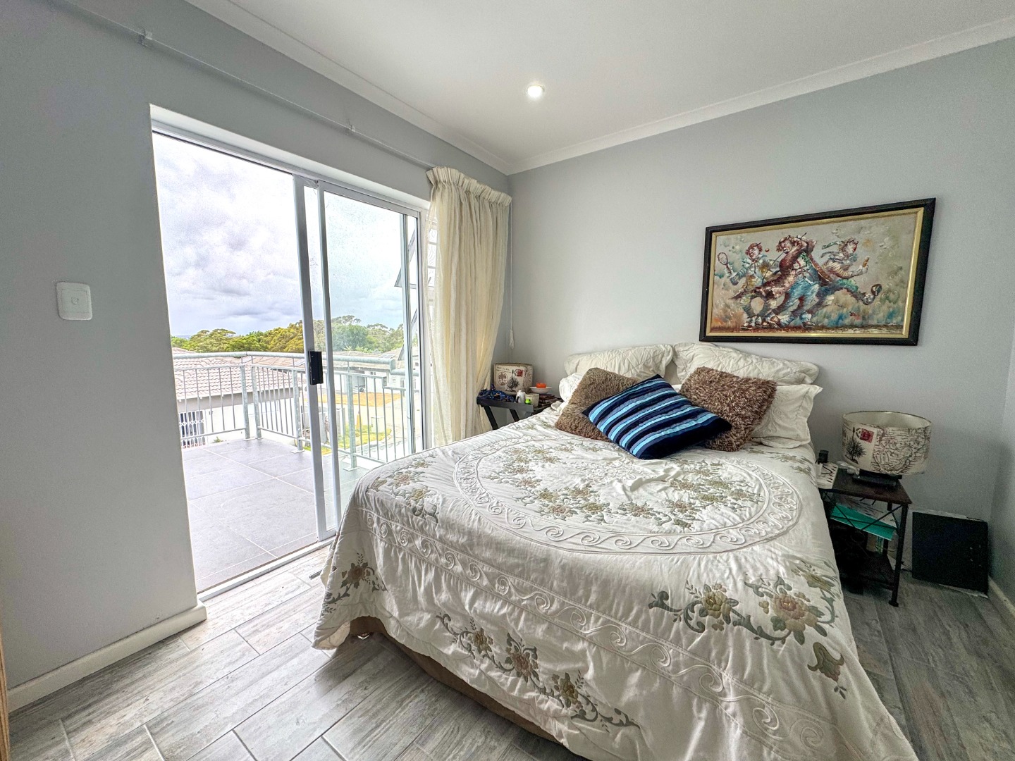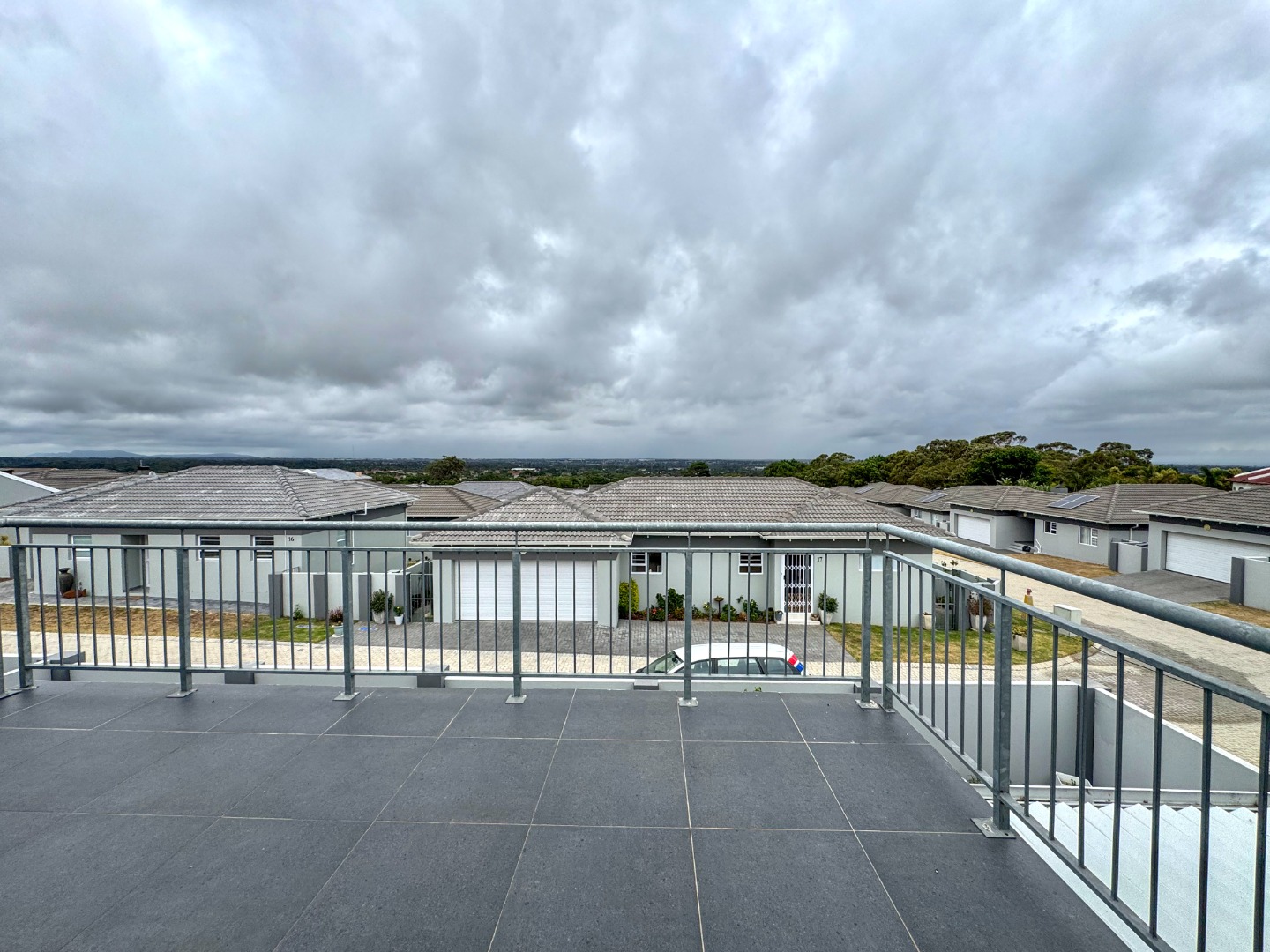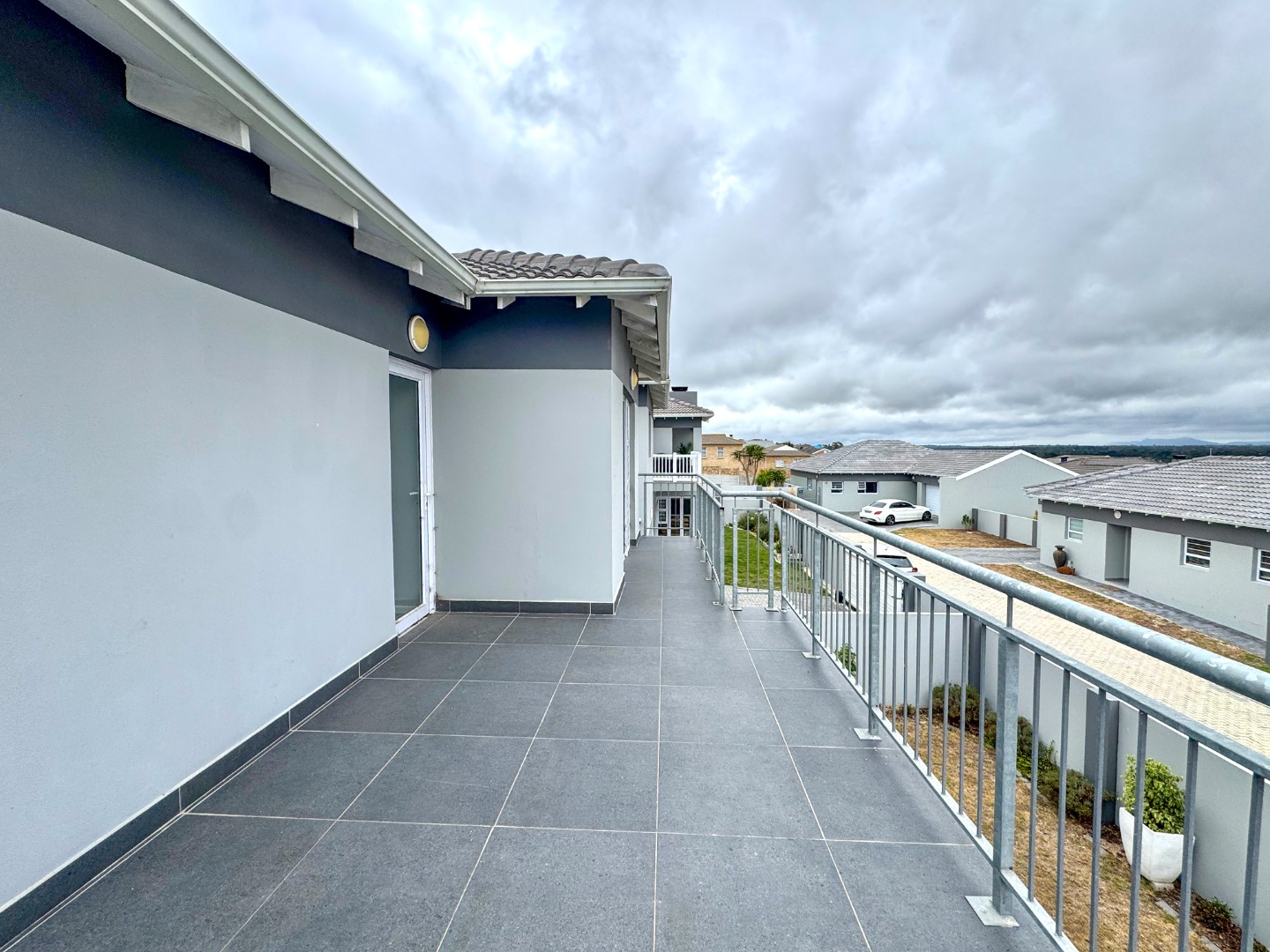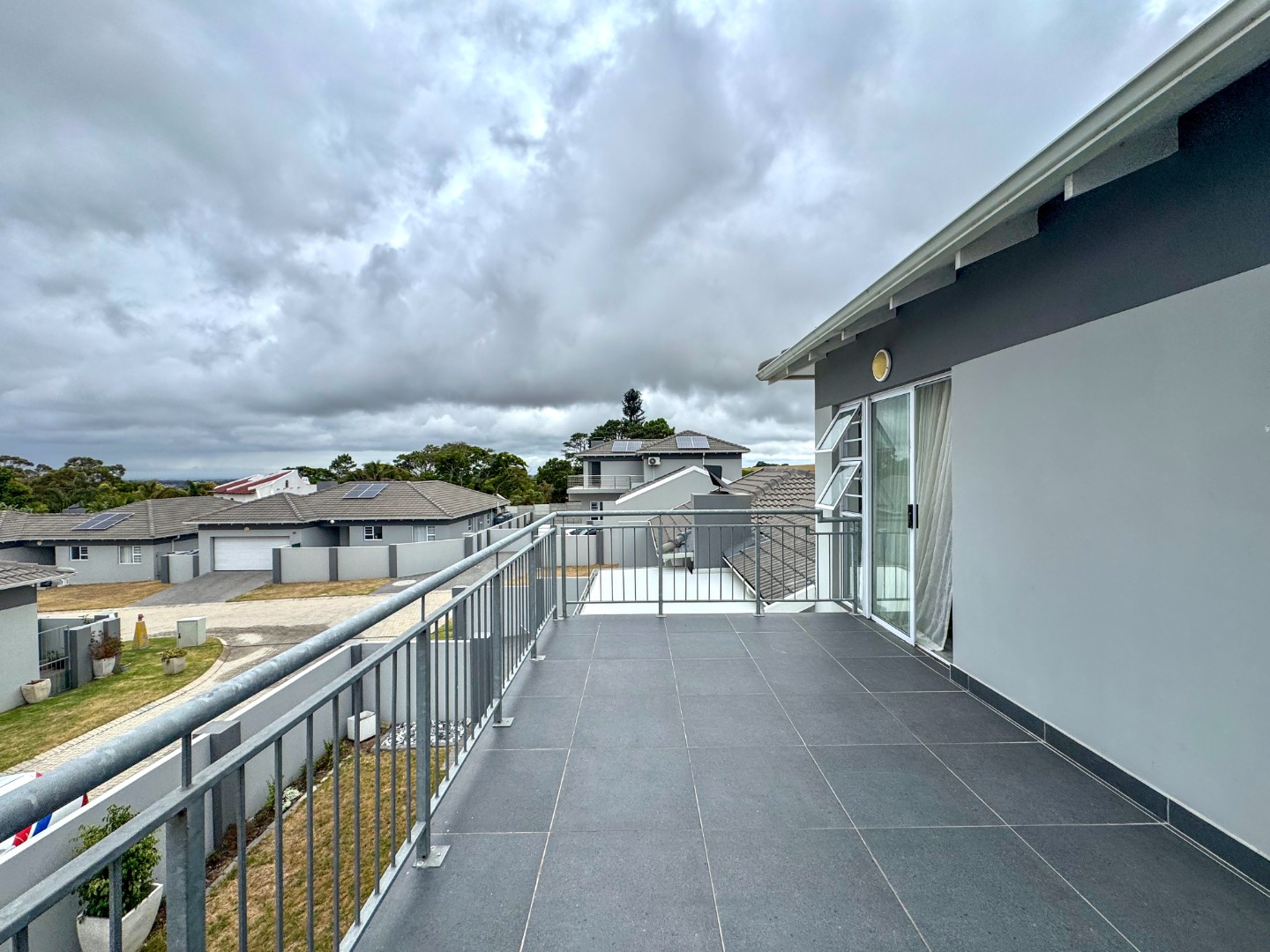 Designed for both comfort and convenience, the property includes one en-suite bathroom and an additional guest toilet, ensuring ample facilities for residents and visitors. Large bi-fold doors enhance the indoor-outdoor flow, leading to a private garden and a covered patio area, perfect for entertaining with its built-in braai. Multiple balconies offer additional outdoor retreats, providing scenic views. A double garage and paved driveway provide secure parking for up to two vehicles, and pets are allowed, making this a truly welcoming home.