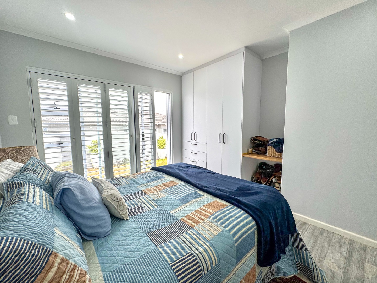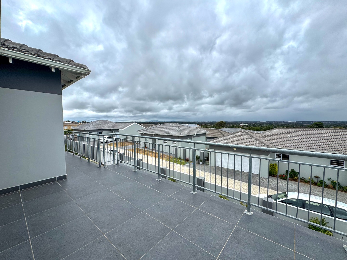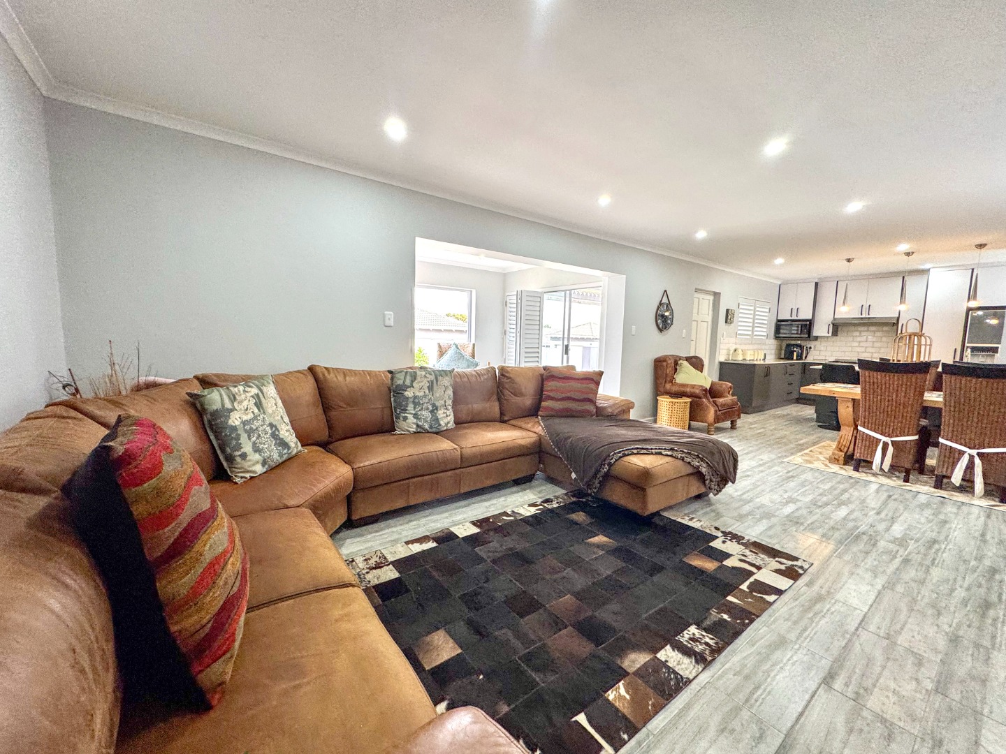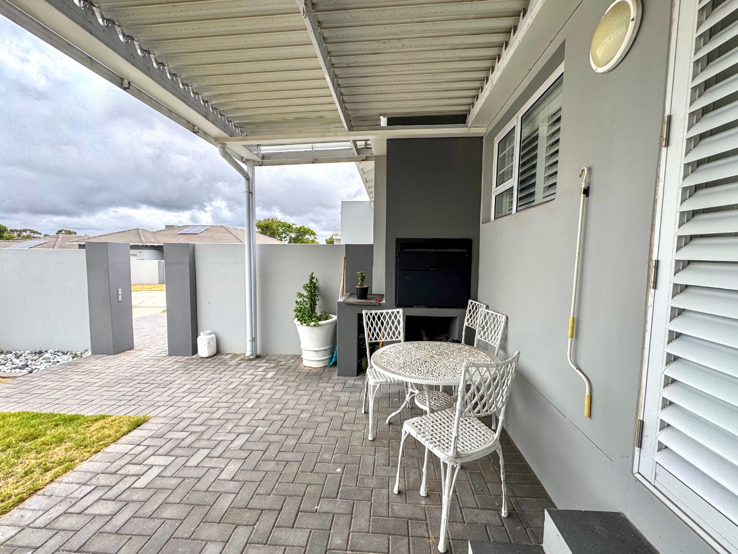 Designed for both comfort and convenience, the property includes one en-suite bathroom and an additional guest toilet, ensuring ample facilities for residents and visitors. Large bi-fold doors enhance the indoor-outdoor flow, leading to a private garden and a covered patio area, perfect for entertaining with its built-in braai. Multiple balconies offer additional outdoor retreats, providing scenic views. A double garage and paved driveway provide secure parking for up to two vehicles, and pets are allowed, making this a truly welcoming home.